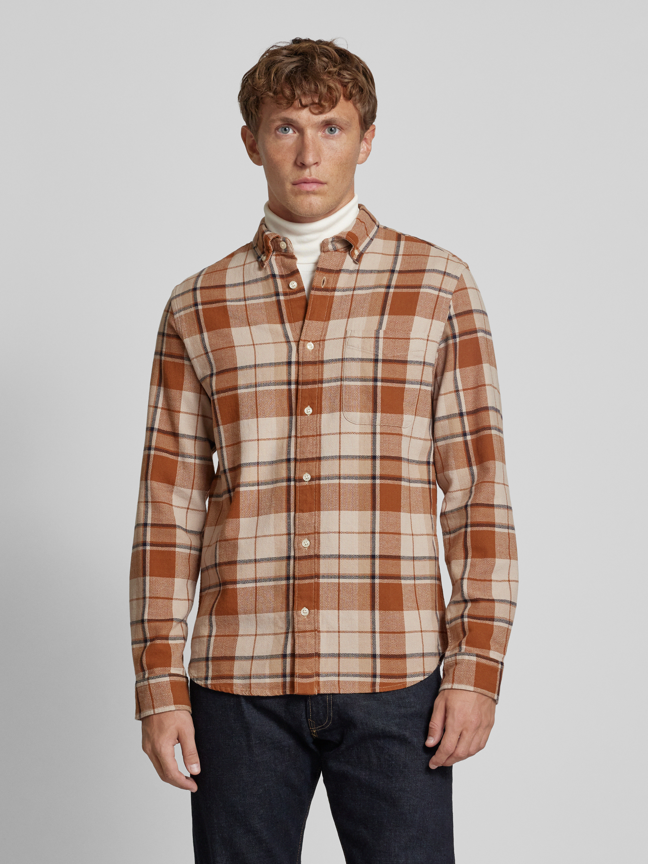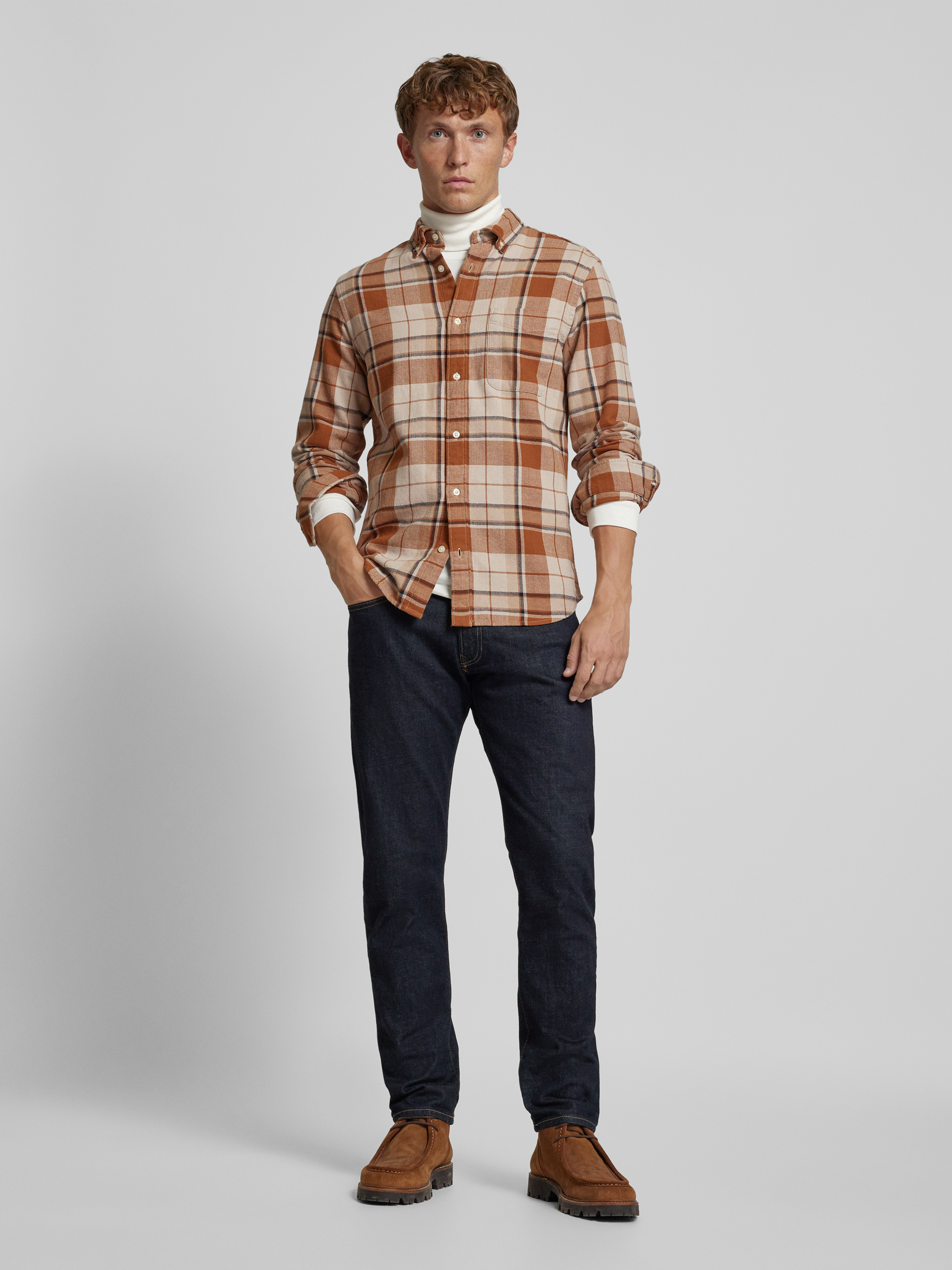 Jack & Jones PremiumRegular Fit Freizeithemd mit Button-Down-Kragen Modell 'BLUBROOK' in cognac