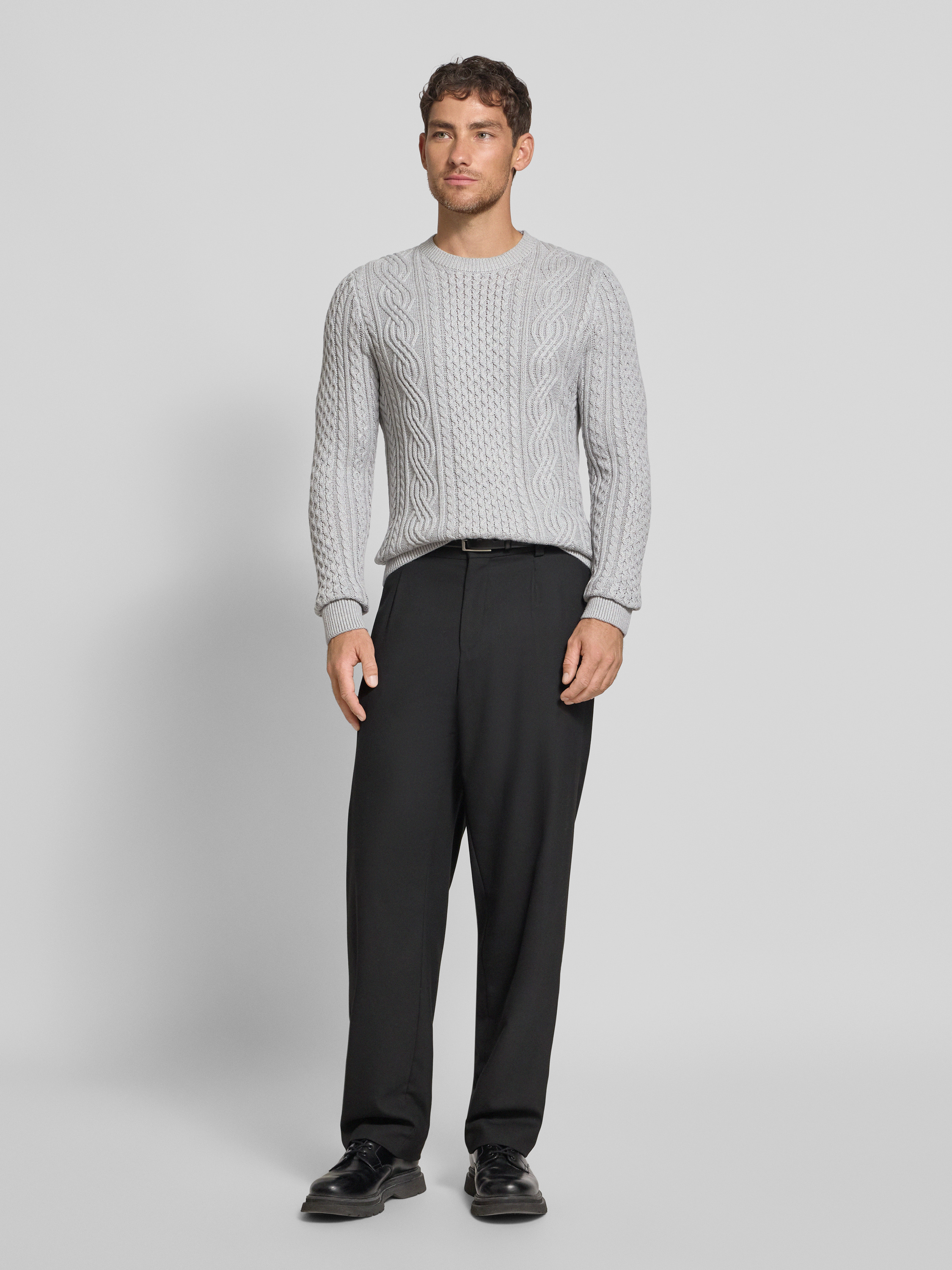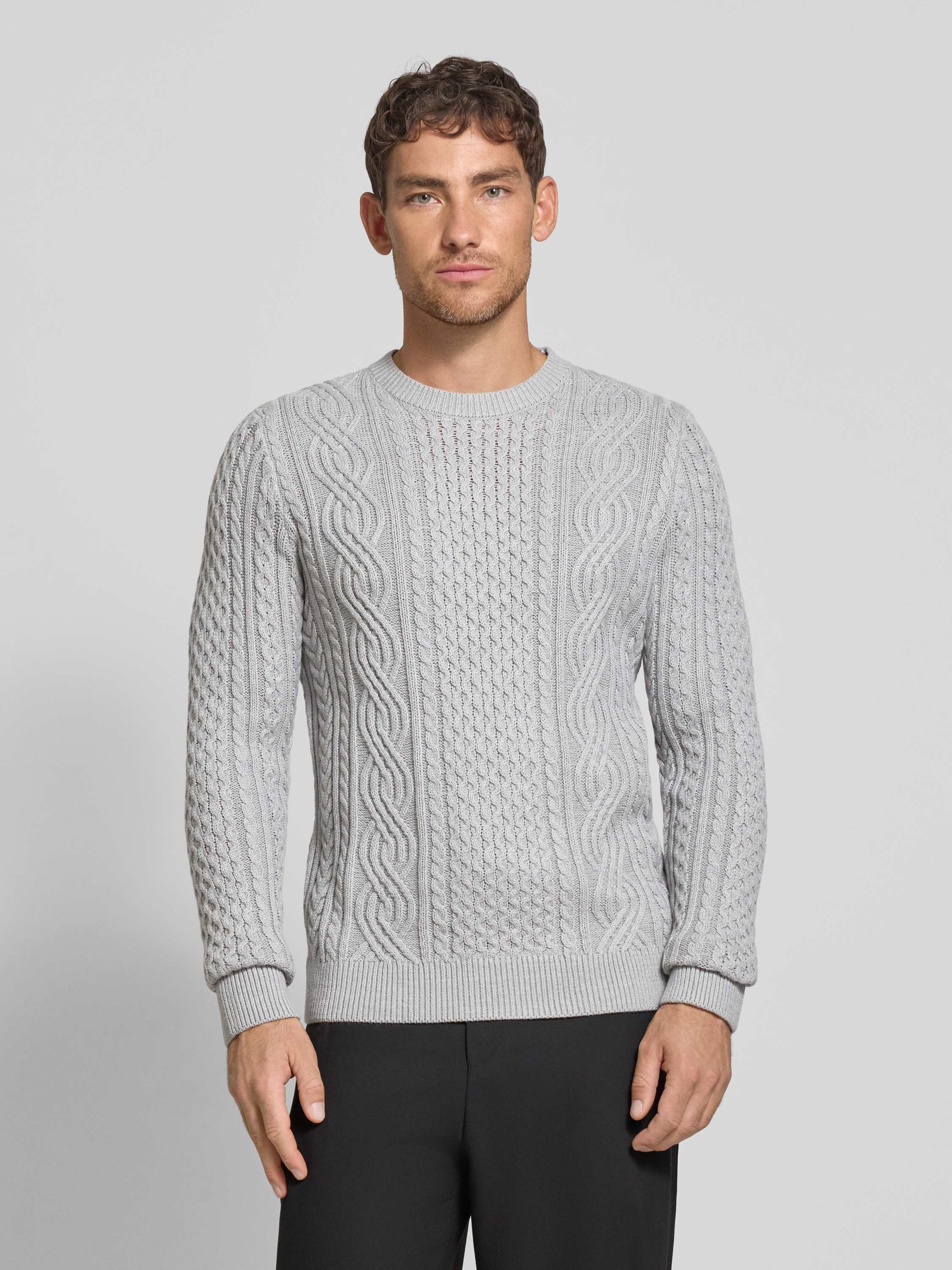Jack & Jones PremiumStrickpullover mit gerippten Abschlüssen Modell 'BLUSEAN' in hellgrau melange