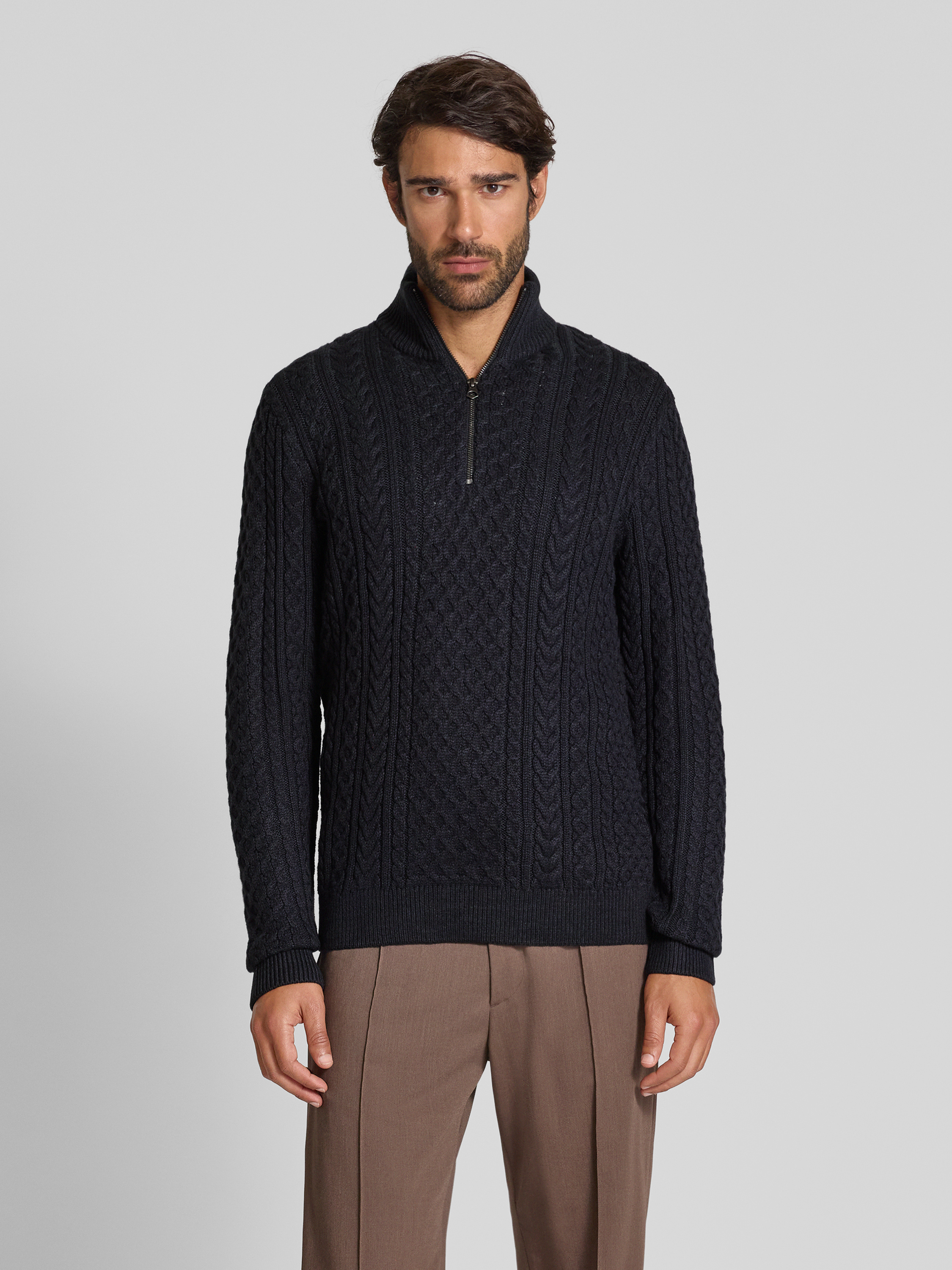 Der Herren-Strickpullover von Jack & Jones Premium, Modell 'BLUSEAN', zeigt sich in einem angenehmen Material-Mix mit Baumwoll-Anteil und bietet durch seinen Regular Fit angenehme Bewegungsfreiheit. Ein Stehkragen verleiht dem Look dezente Struktur, während gerippte Abschlüsse für ein stimmiges Gesamtbild sorgen. So eignet sich der Strickpullover mit gerippten Abschlüssen Modell 'BLUSEAN' für vielseitige Alltagskombinationen.