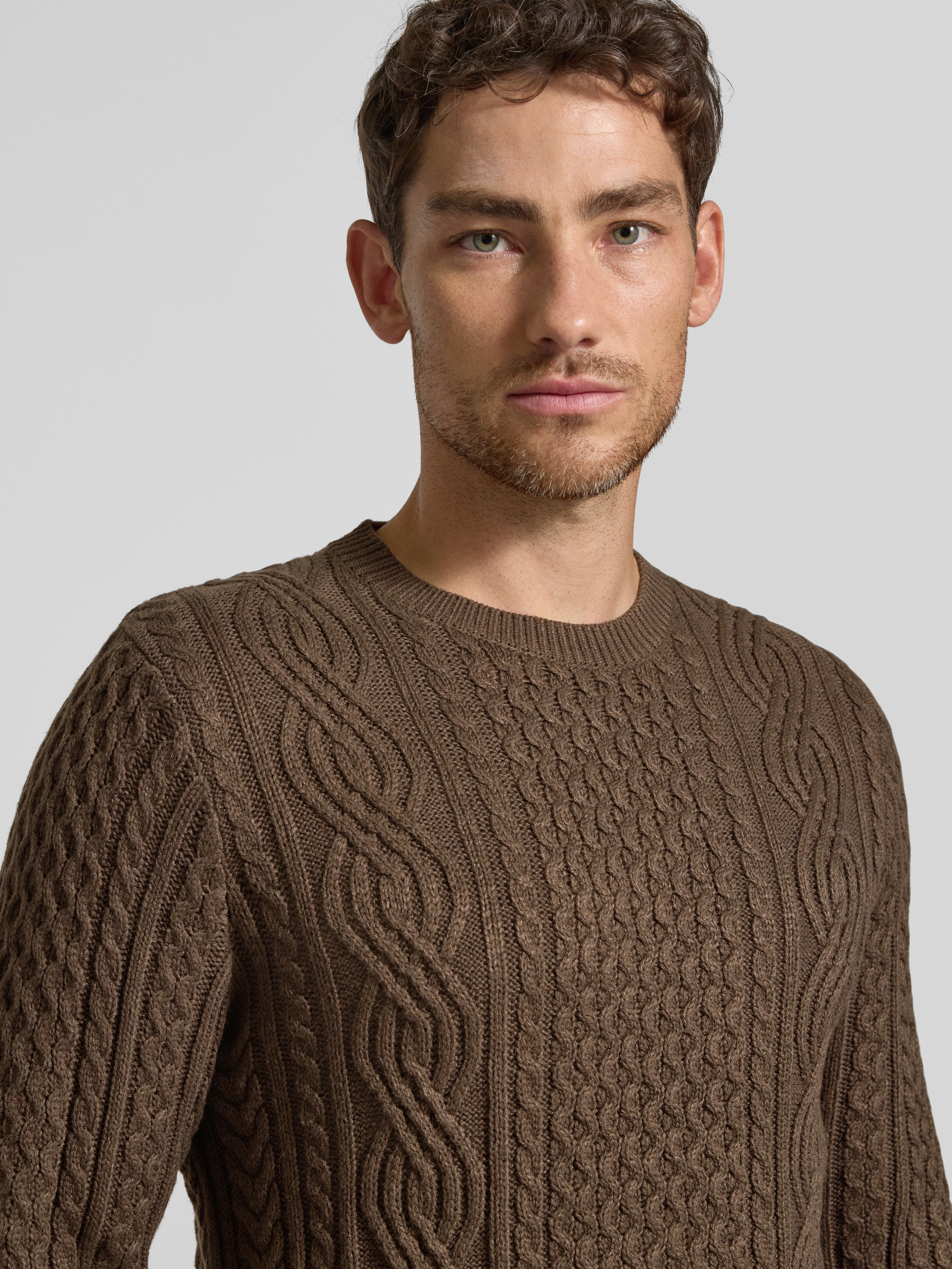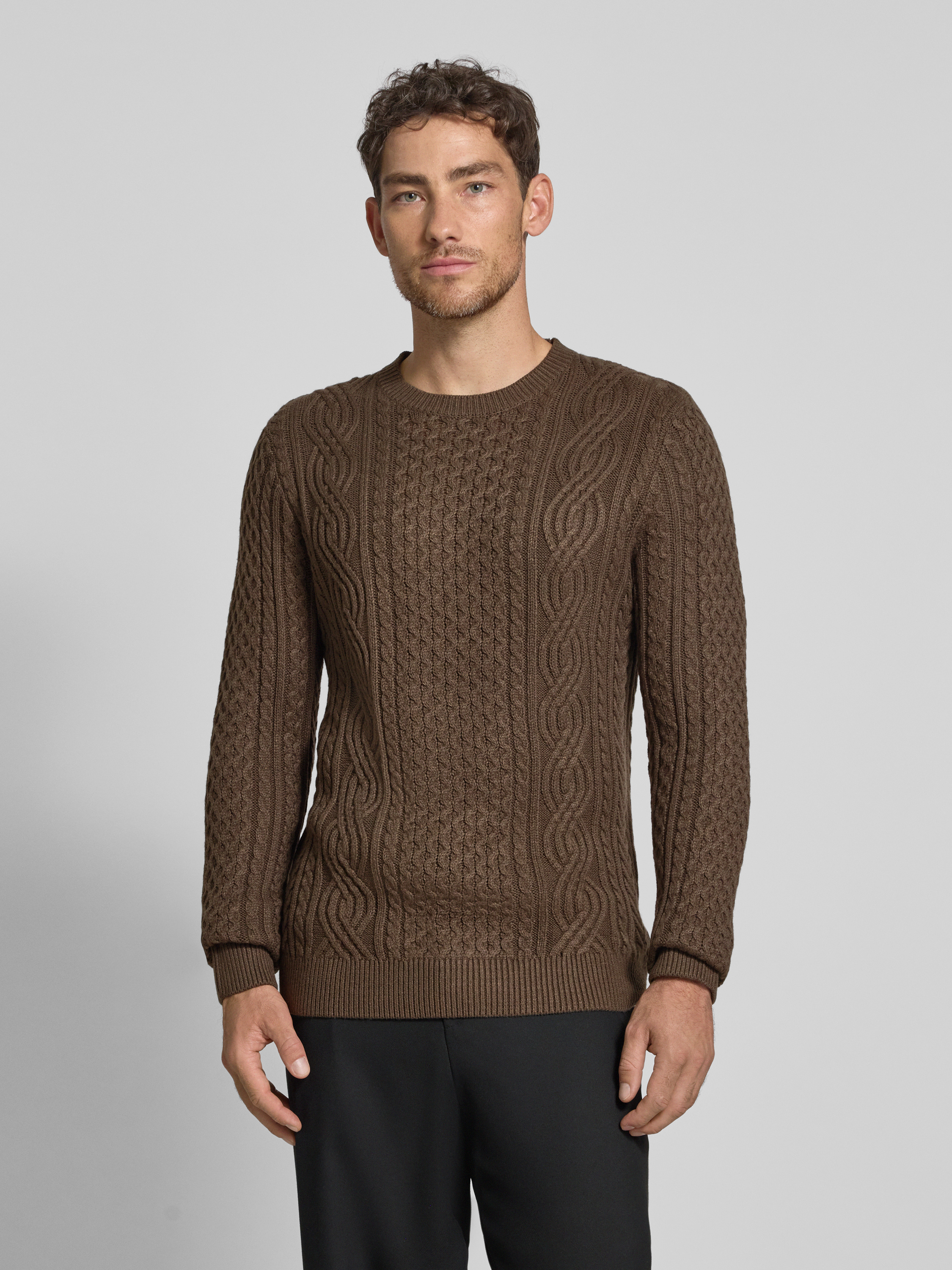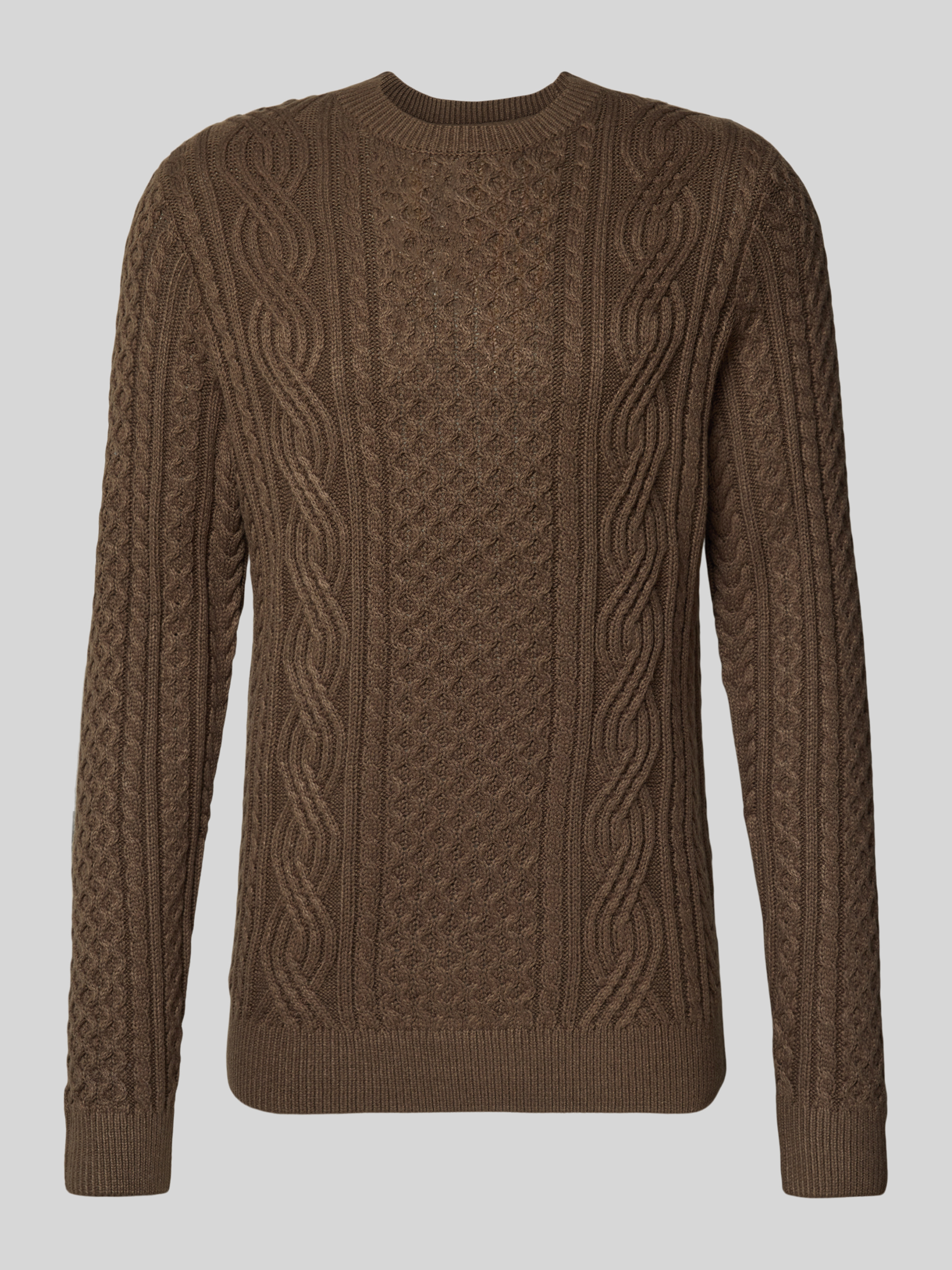 • Jack & Jones Premium Strickpullover mit gerippten Abschlüssen Modell 'BLUSEAN' Mittelbraun