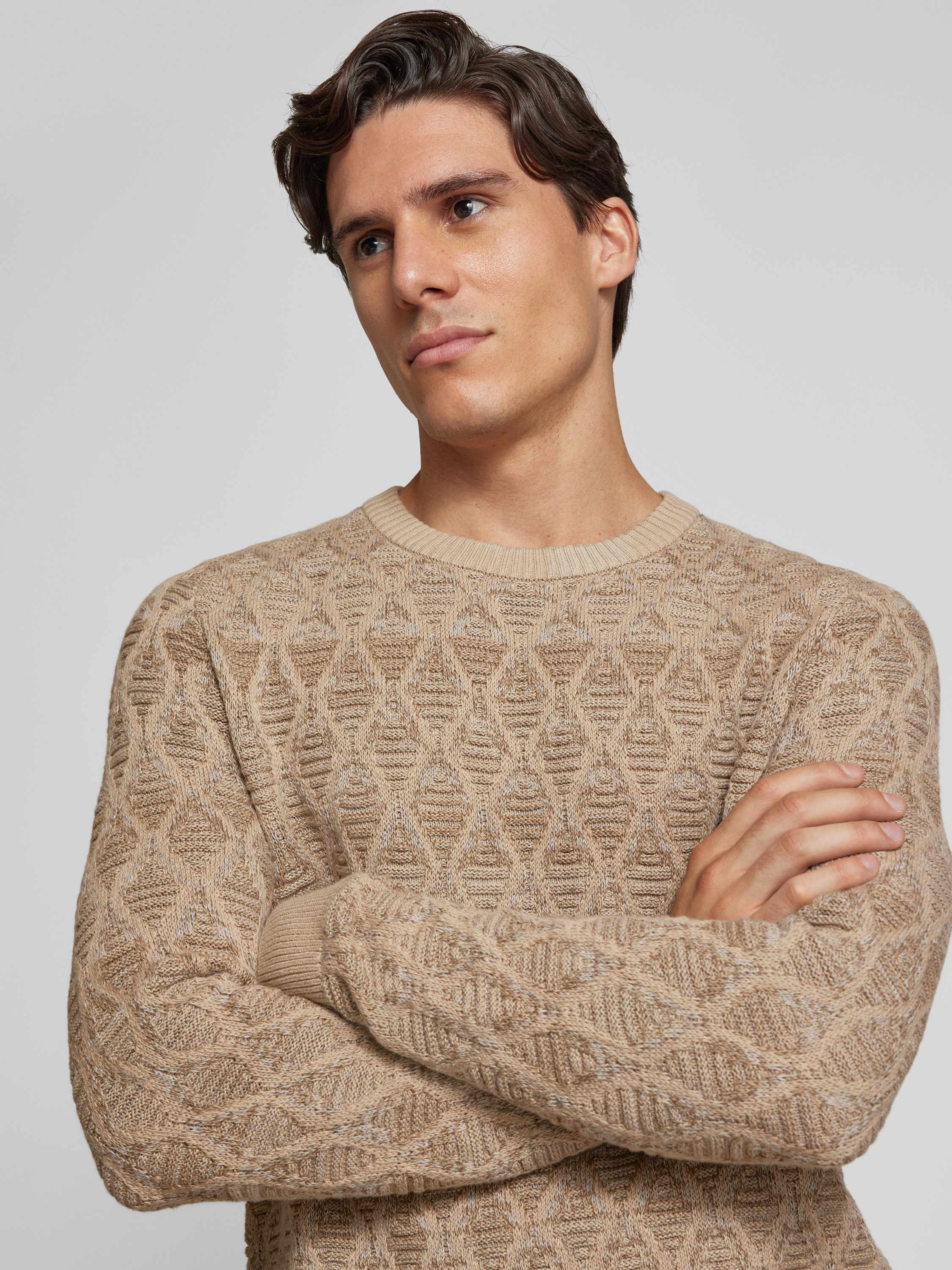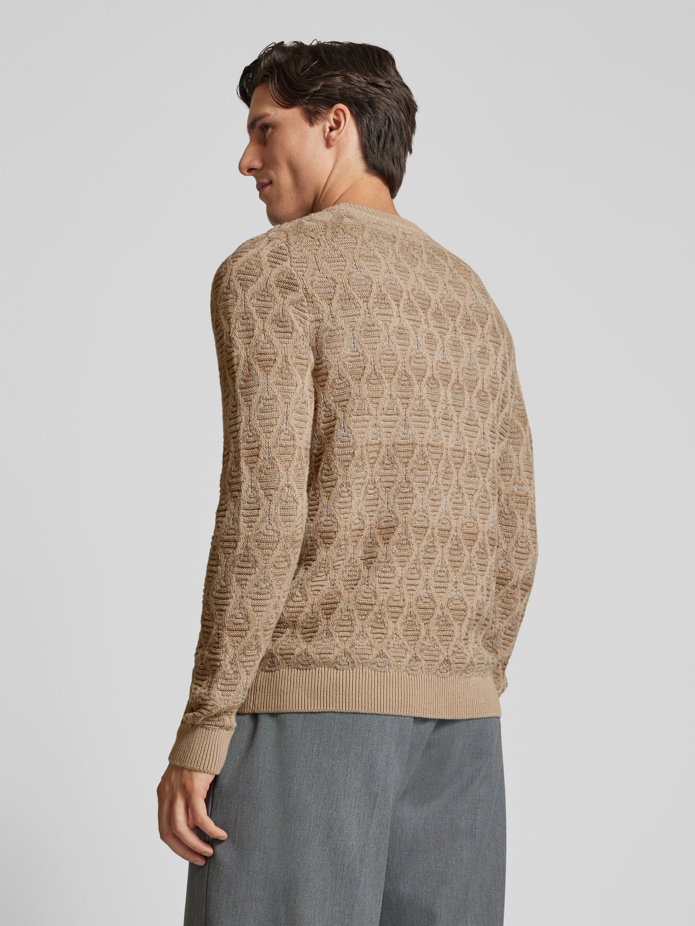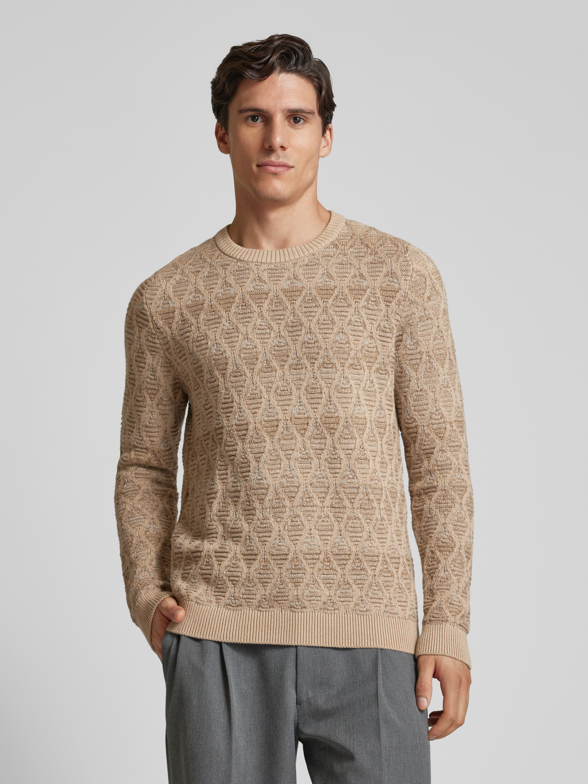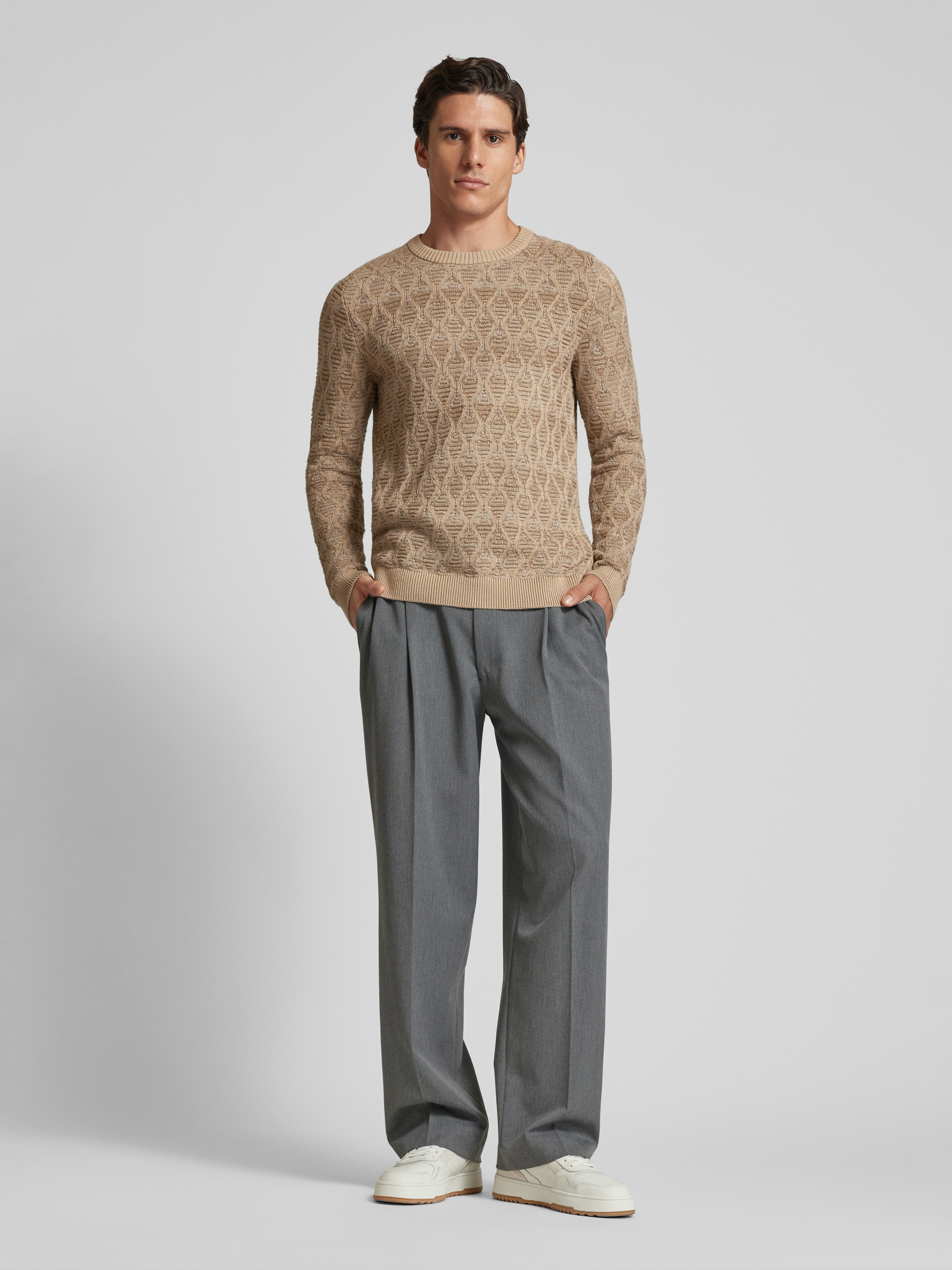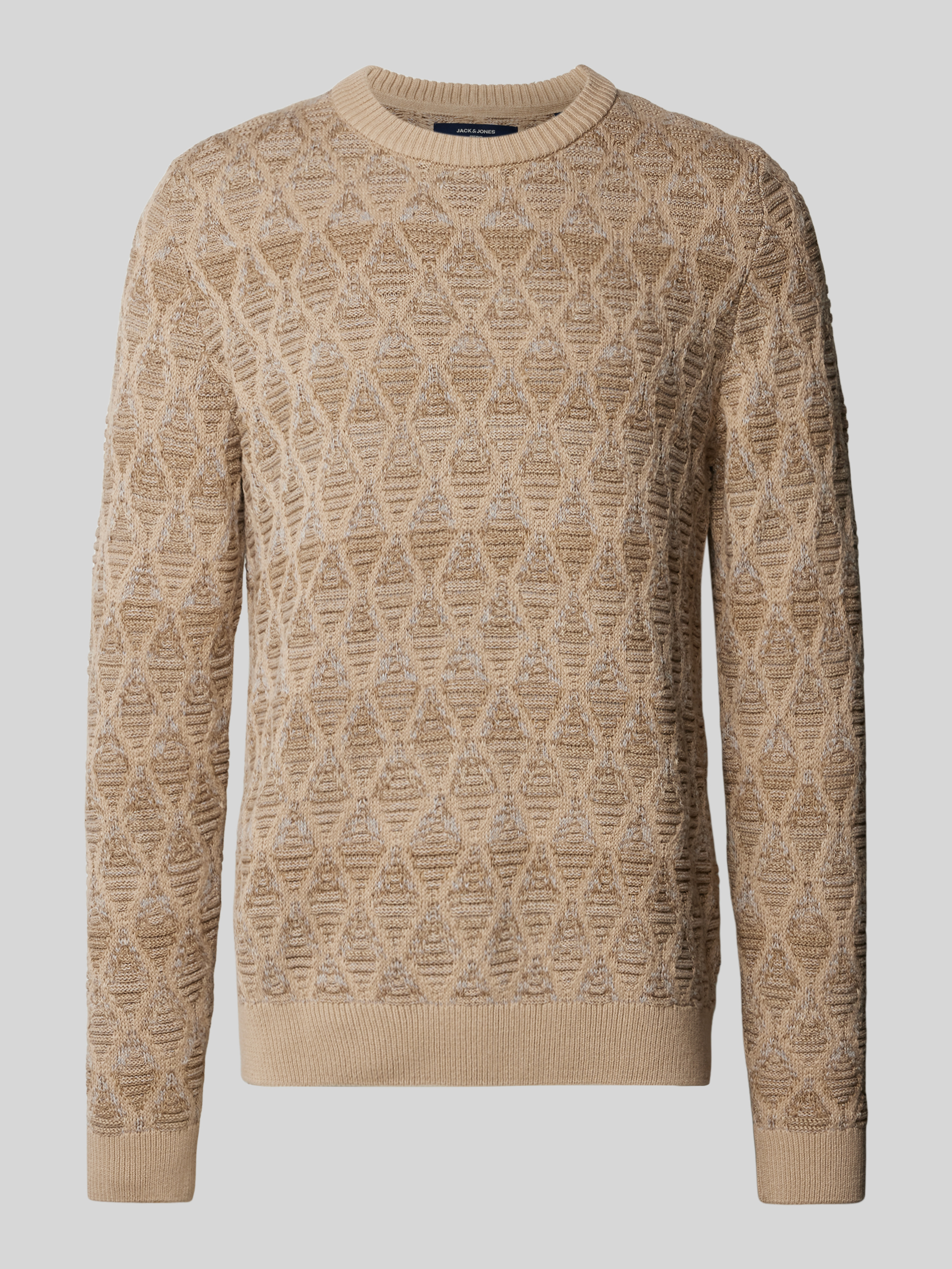 Der Strickpullover Modell 'EDDIE' von JACK & JONES Premium zeichnet sich durch seine Regular Fit Passform aus, die Komfort und Bewegungsfreiheit bietet. Aus reiner Baumwolle gefertigt, ist er sanft zur Haut. Der Rundhalsausschnitt und die gerippten Abschlüsse sorgen für einen klassischen Look.