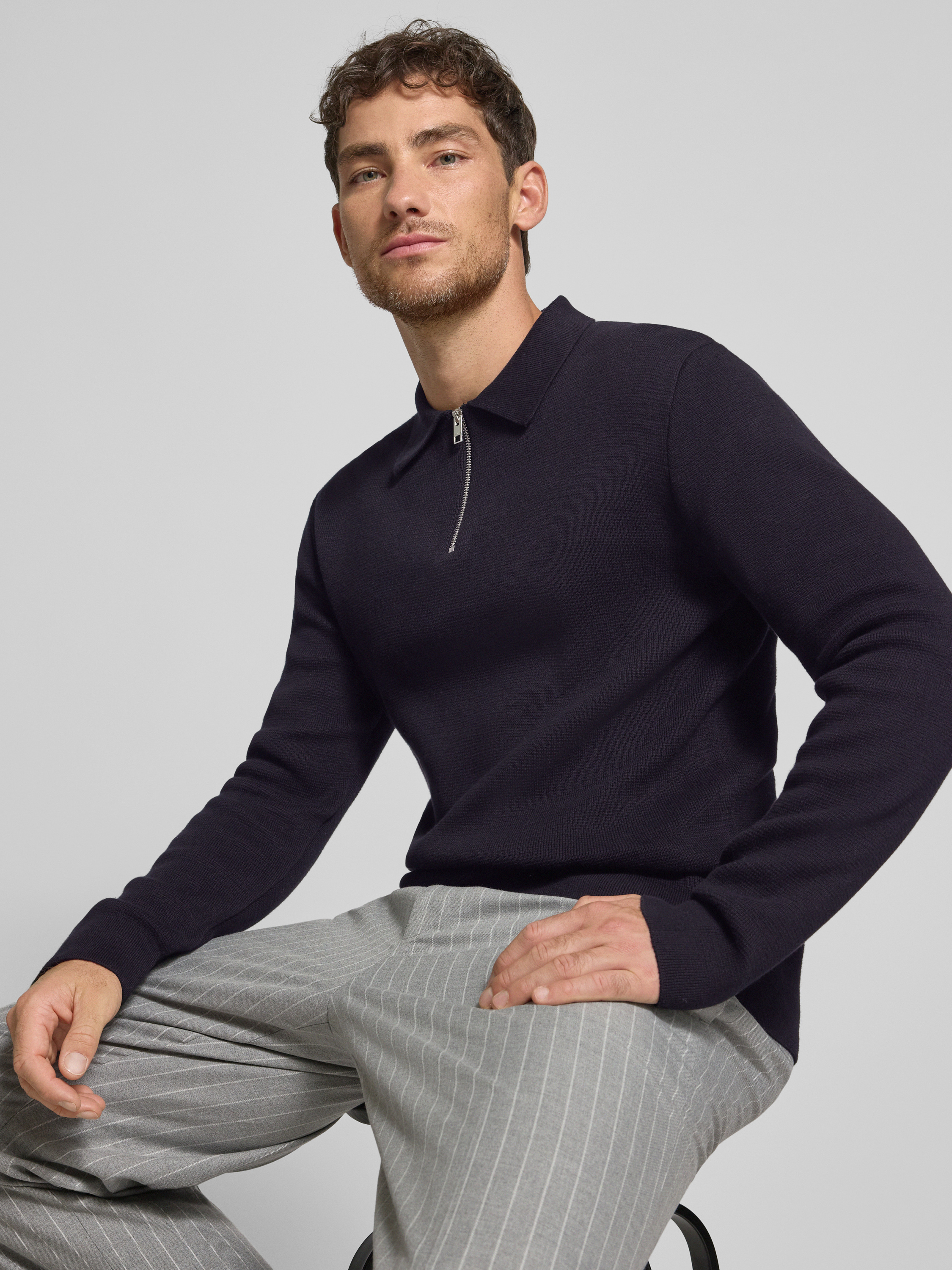 Jack & Jones PremiumStrickpullover mit gerippten Abschlüssen Modell 'MILANO' in dunkelblau