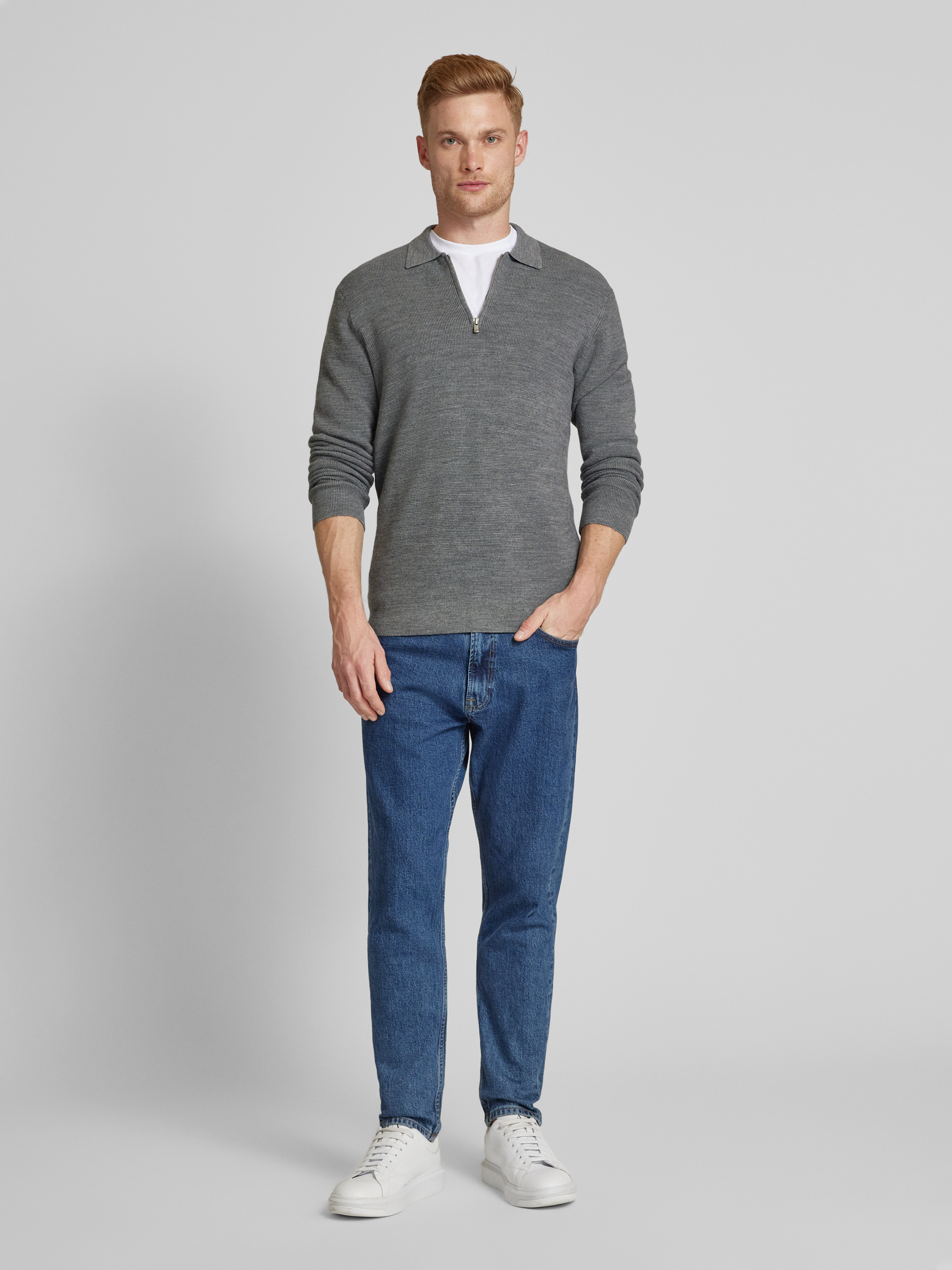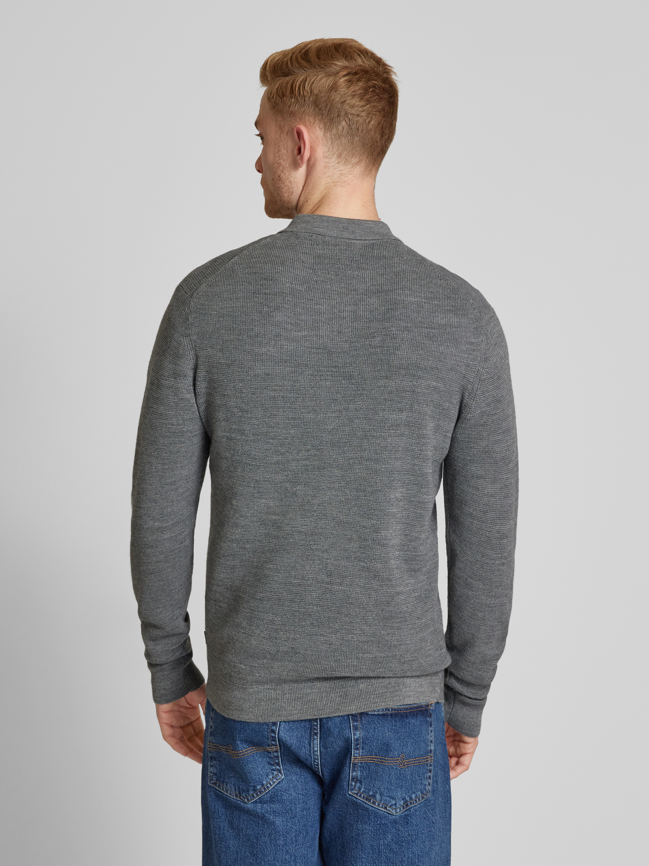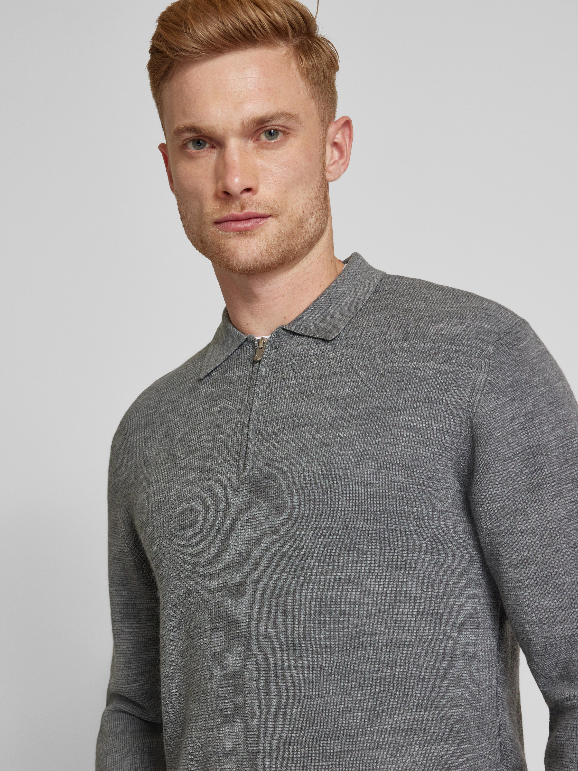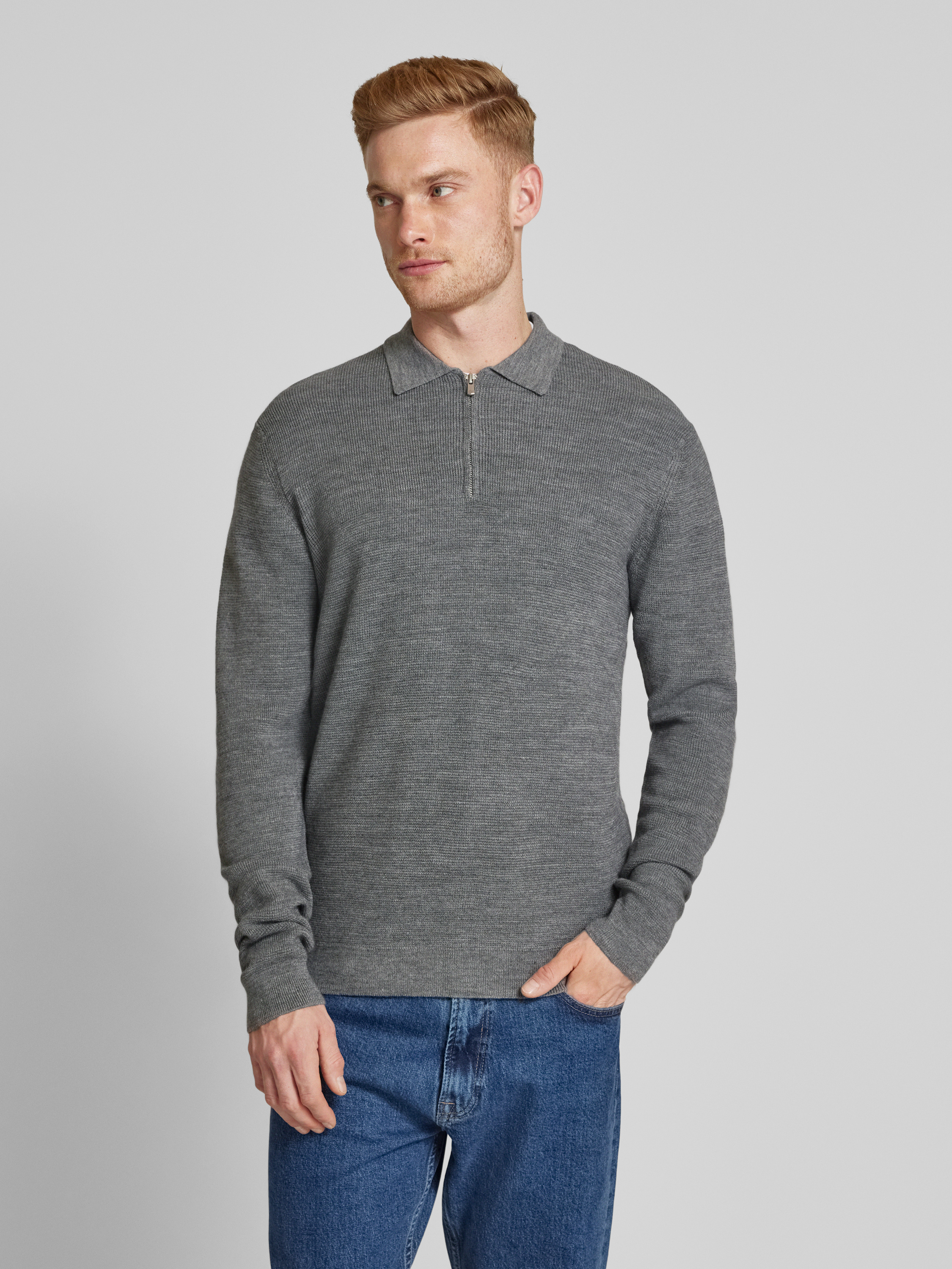 Jack & Jones PremiumStrickpullover mit Polokragen in mittelgrau