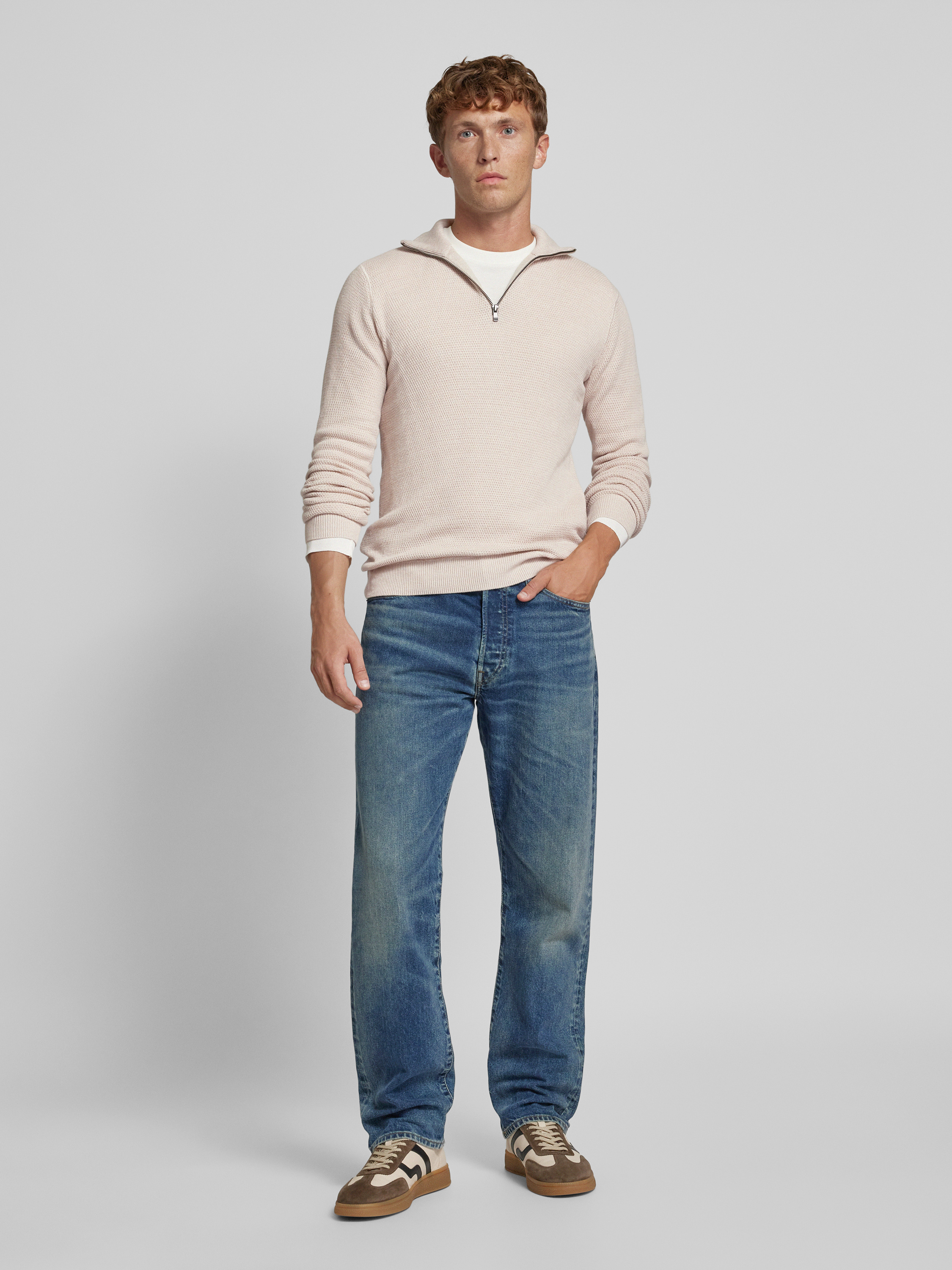 Der Strickpullover von JACK & JONES Premium, Modell 'BLUCHRISTER', bietet durch seinen geraden Schnitt und den Stehkragen eine komfortable Passform, die sich ideal für den Alltag eignet. Die Verwendung von reiner Baumwolle sorgt für ein angenehmes Tragegefühl. Gerippte Abschlüsse verleihen dem Pullover eine dezente Struktur.