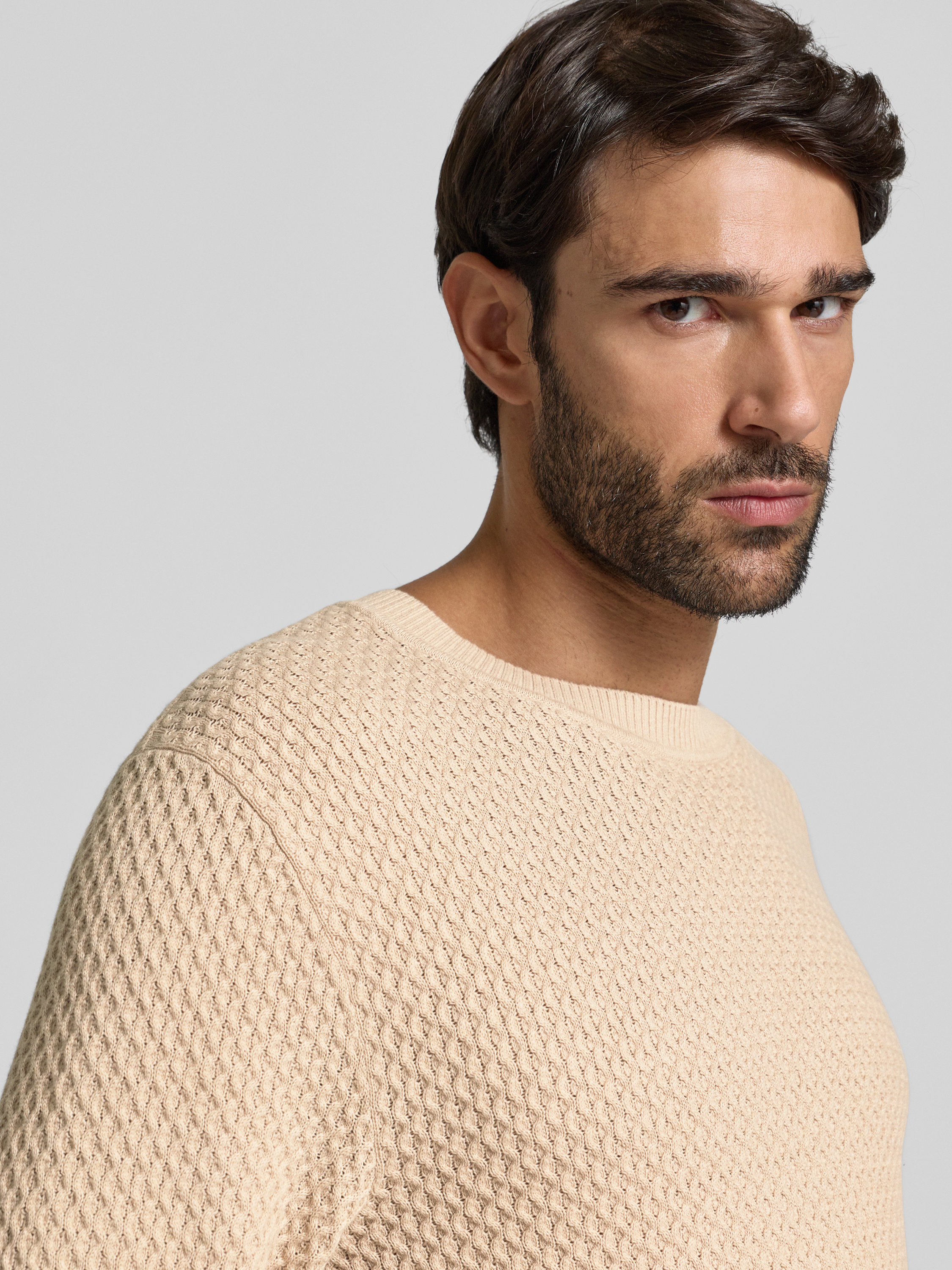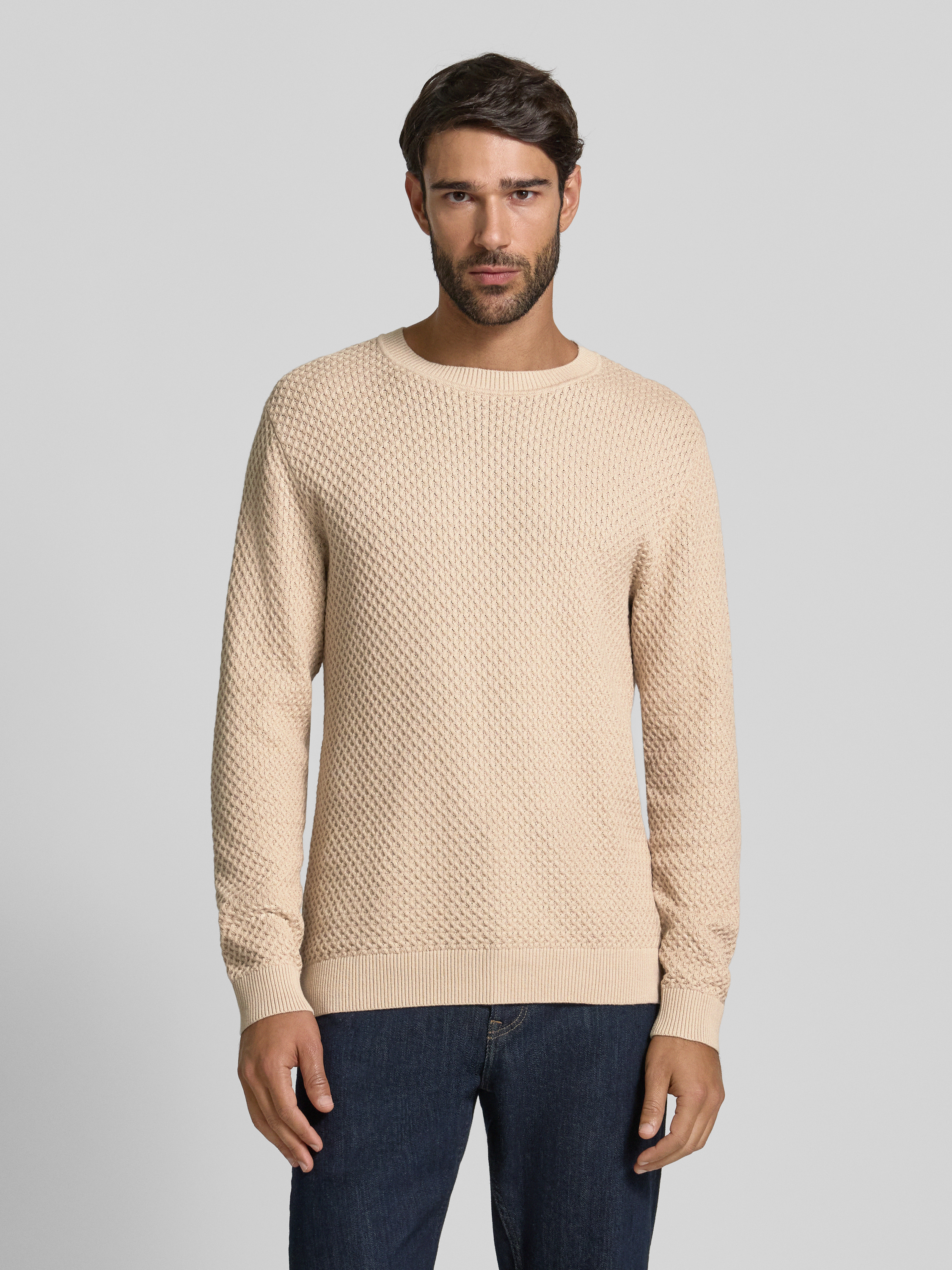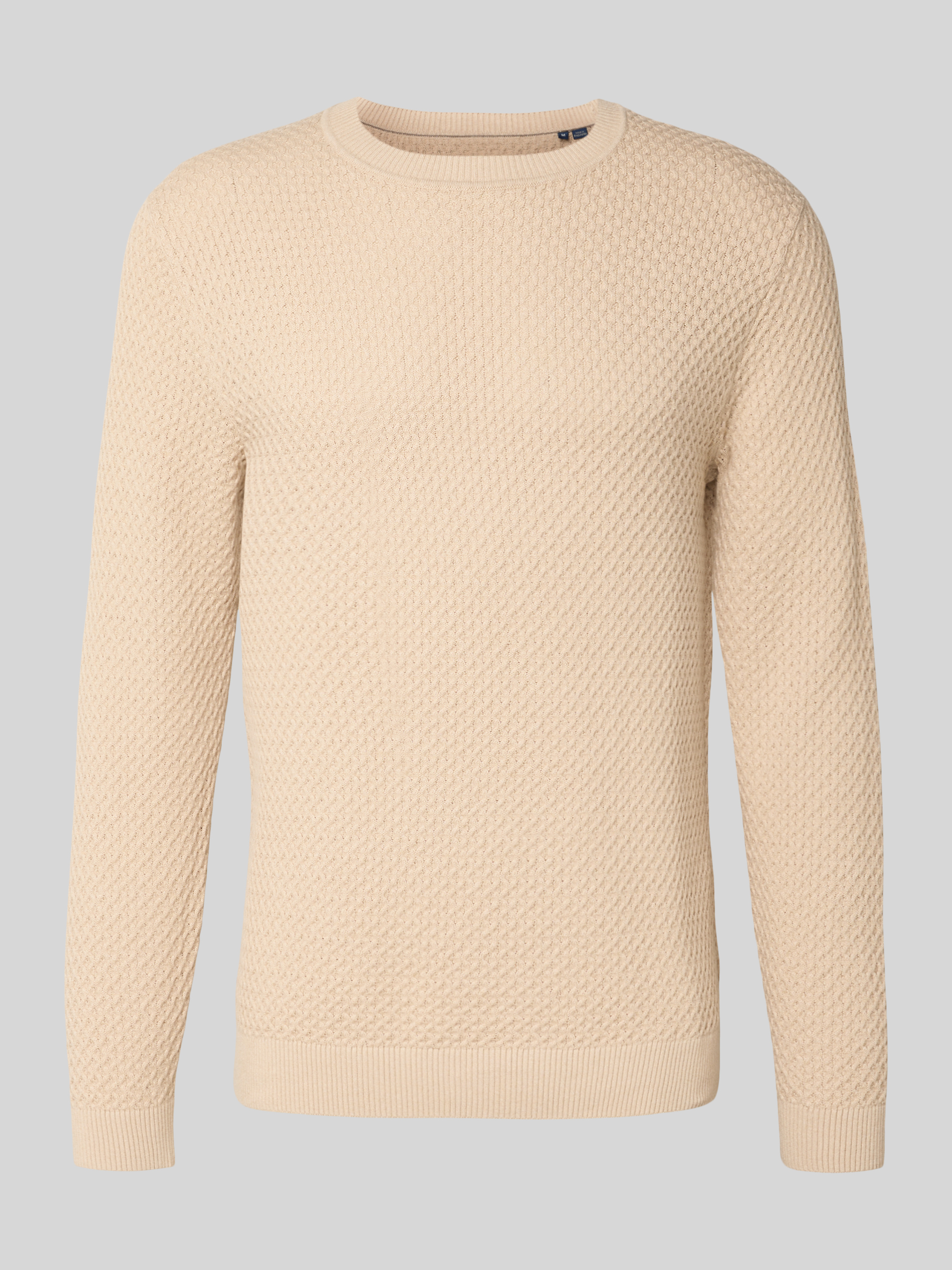 Der Herren Strickpullover von Jack & Jones Premium Modell 'BARKLEY' fällt durch sein markantes Strukturmuster auf und schmiegt sich dank reiner Baumwolle angenehm an die Haut. Durch den schmalen Schnitt entsteht eine moderne Silhouette, die vielseitig kombinierbar bleibt. Ein klassischer Rundhalsausschnitt rundet das Gesamtbild ab.