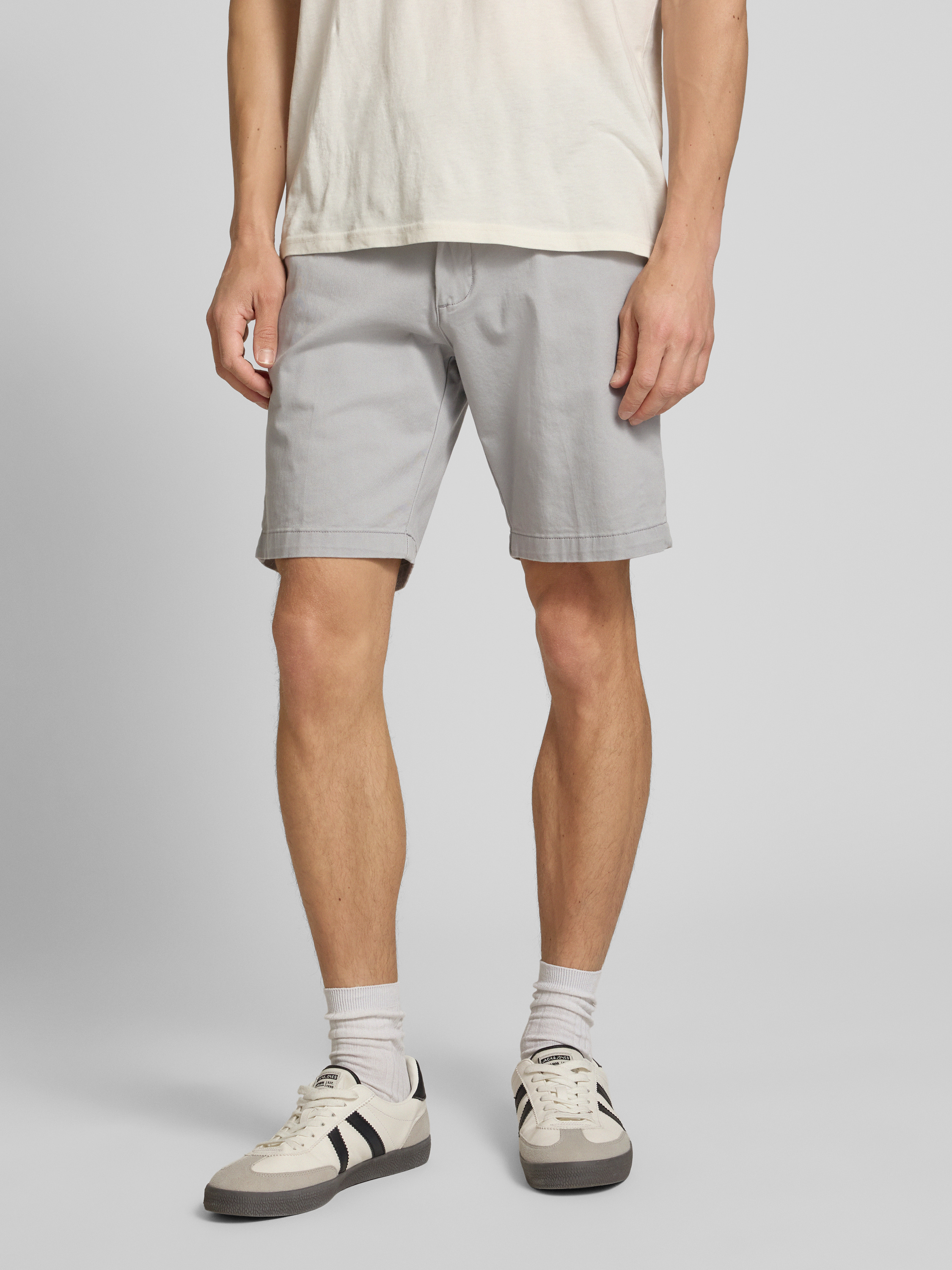 Jack & JonesRegular Fit Chino-Shorts mit Gürtel Modell 'MARCO FRANCO' in mittelgrau