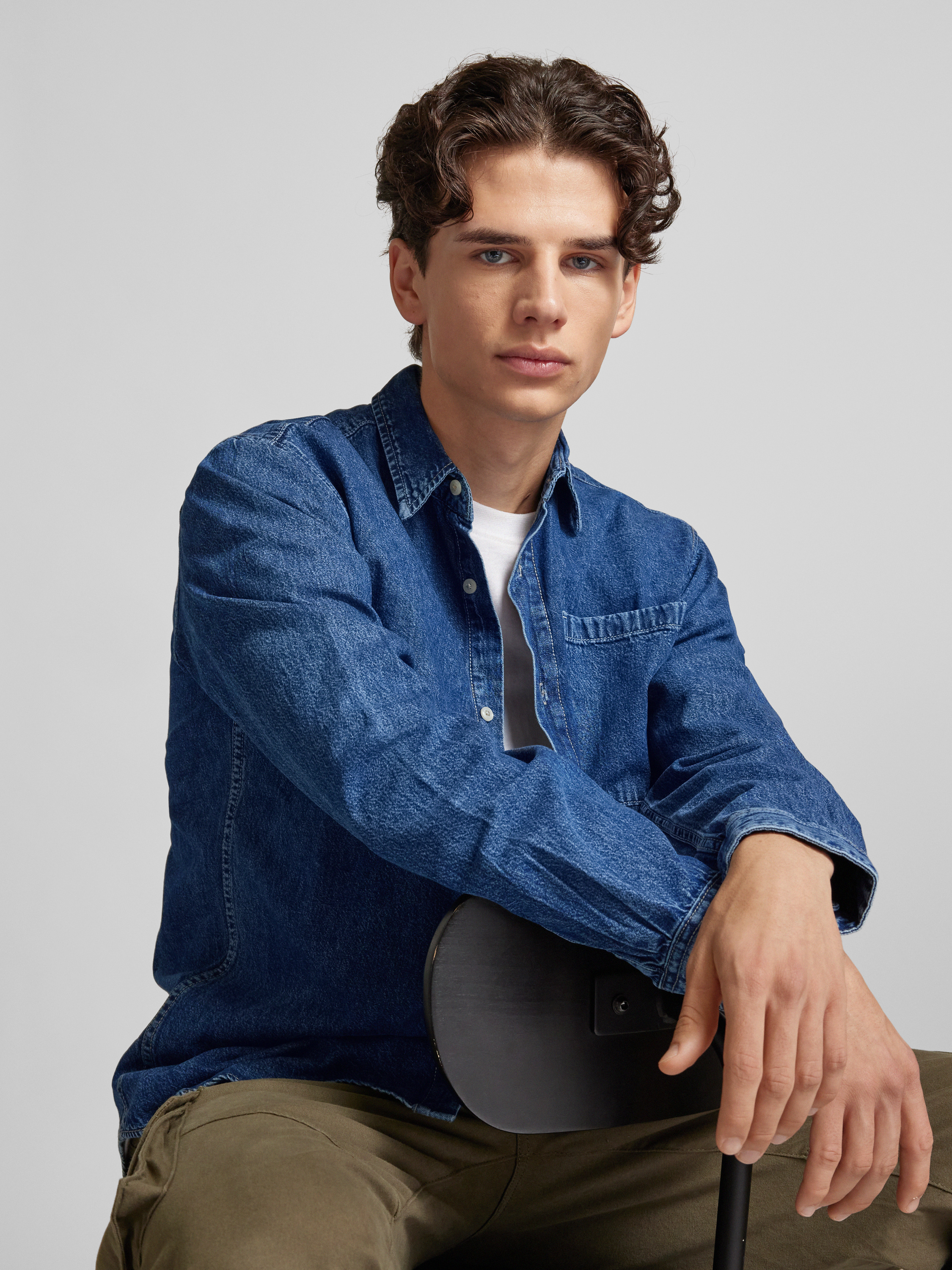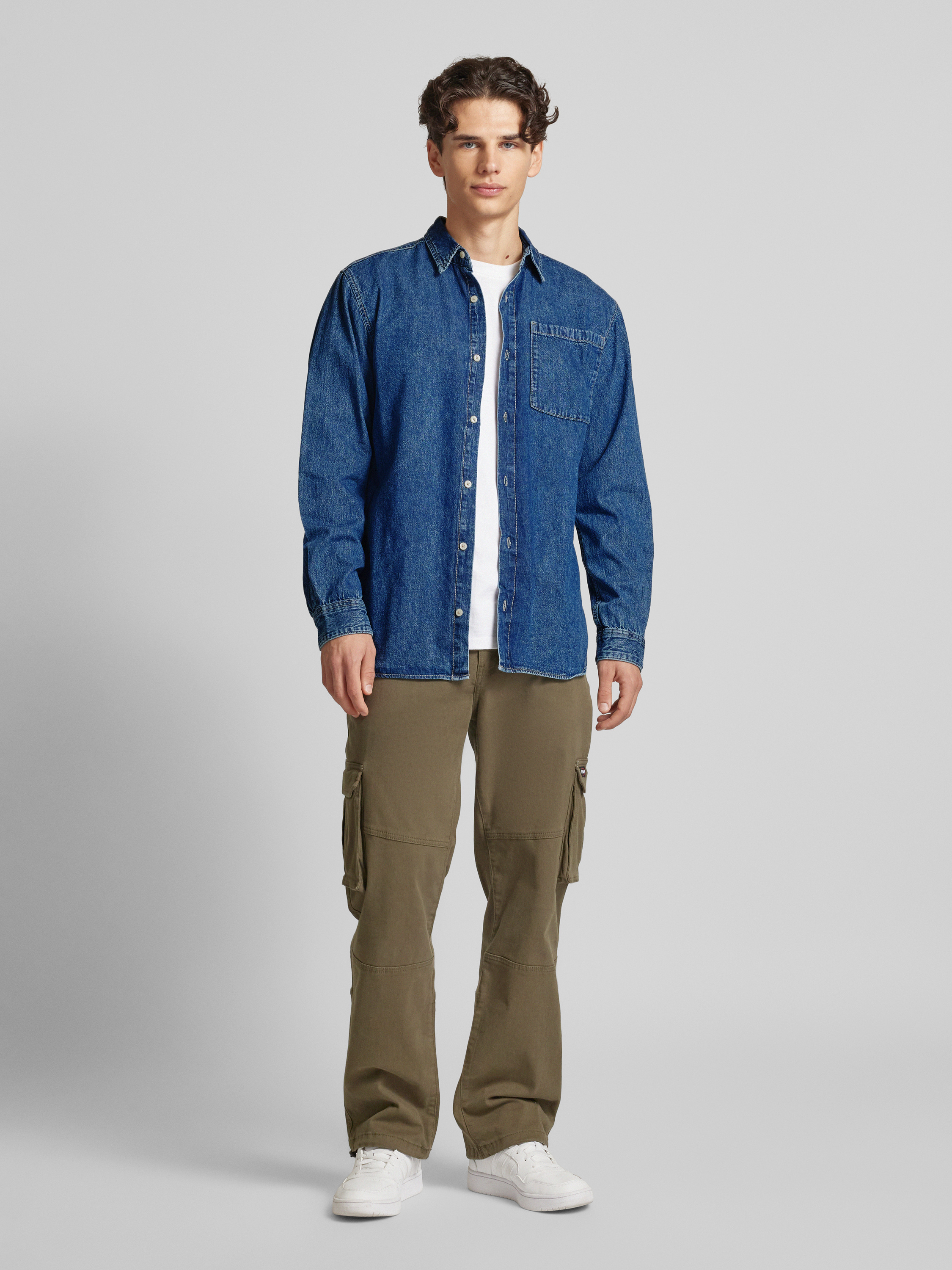 Das Herren Freizeithemd von JACK & JONES, Modell 'CREEK', eignet sich durch seine Denim-Optik und die reine Baumwolle für einen lässigen Auftritt. Der Regular Fit und der klassische Kentkragen bieten einen angenehmen Tragekomfort. Eine praktische Brusttasche rundet das Design ab.