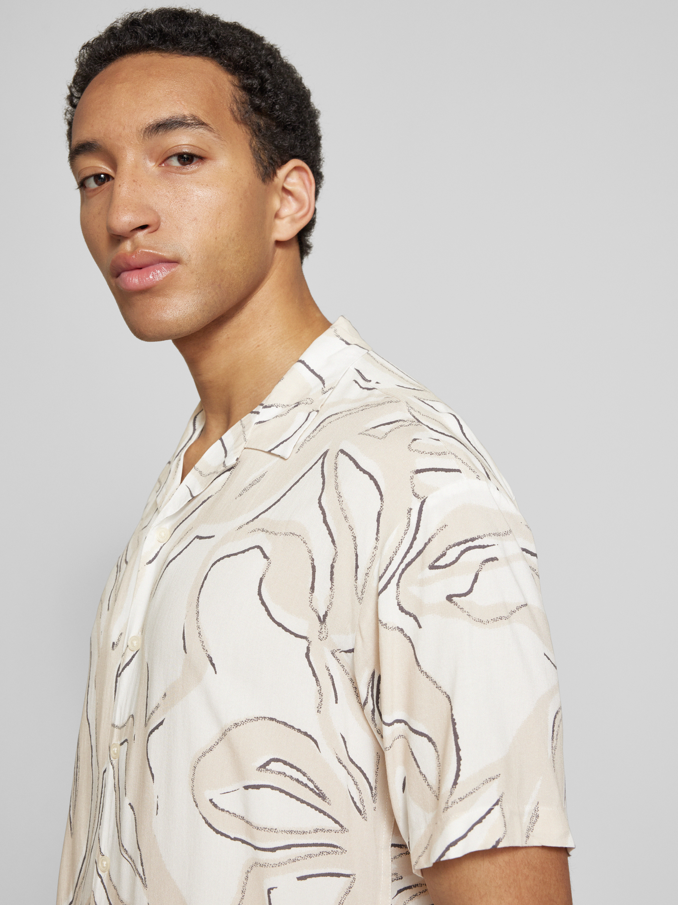 Das Herren Freizeithemd von JACK & JONES, Modell 'LUKE', besteht aus reiner Viskose und bietet eine angenehme Passform im Regular Fit. Der Resortkragen verleiht dem Hemd eine lässige Note, während der kurze Ärmel für Komfort an warmen Tagen sorgt. Ideal für entspannte Freizeitaktivitäten.