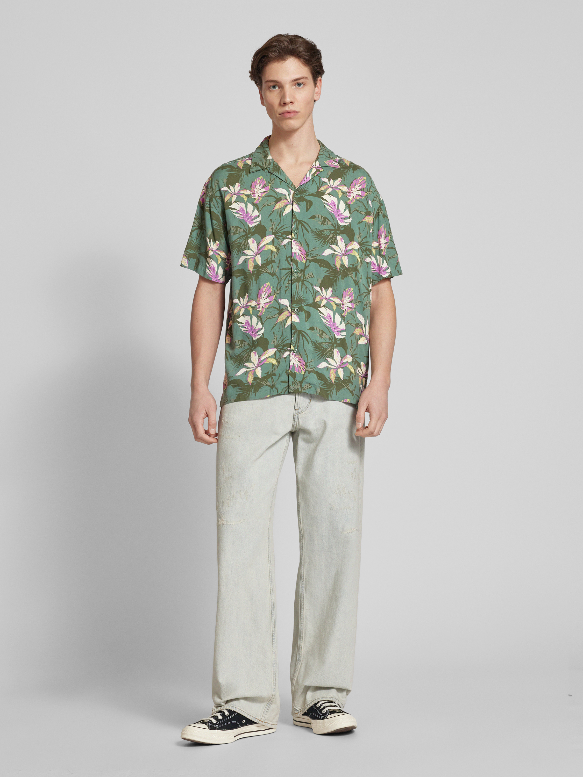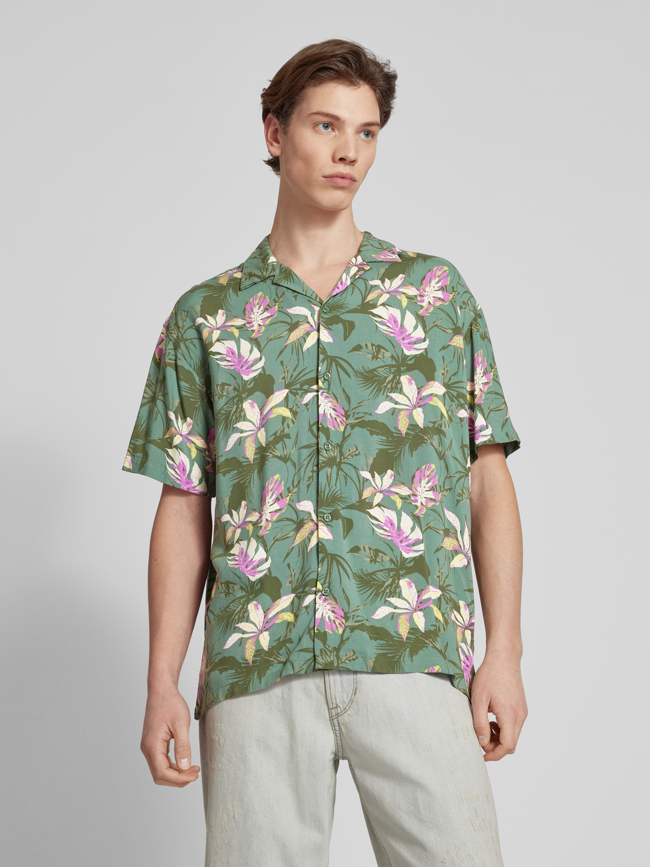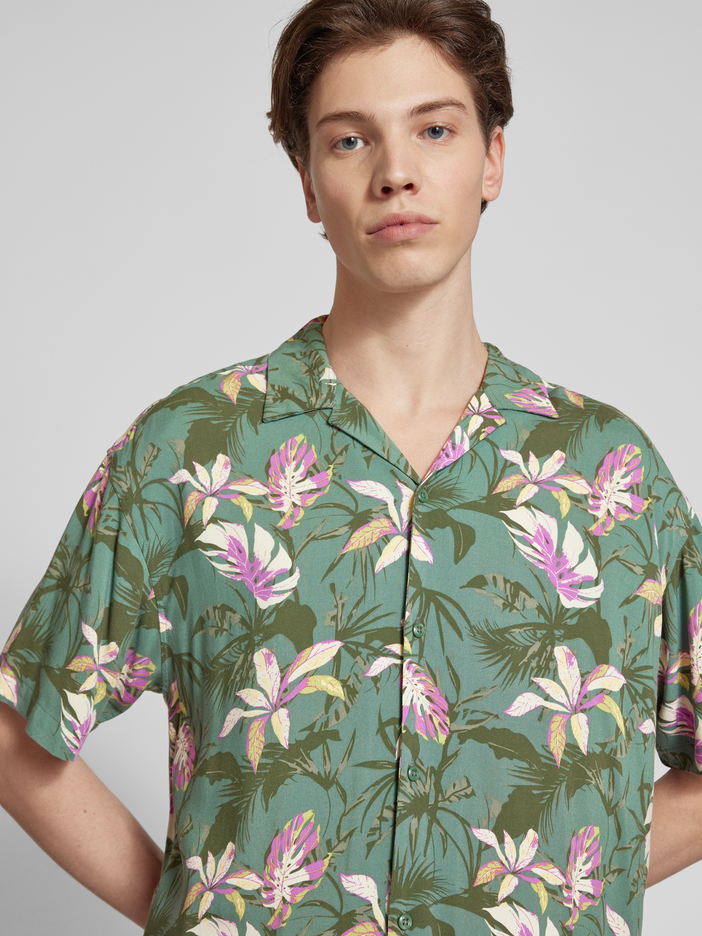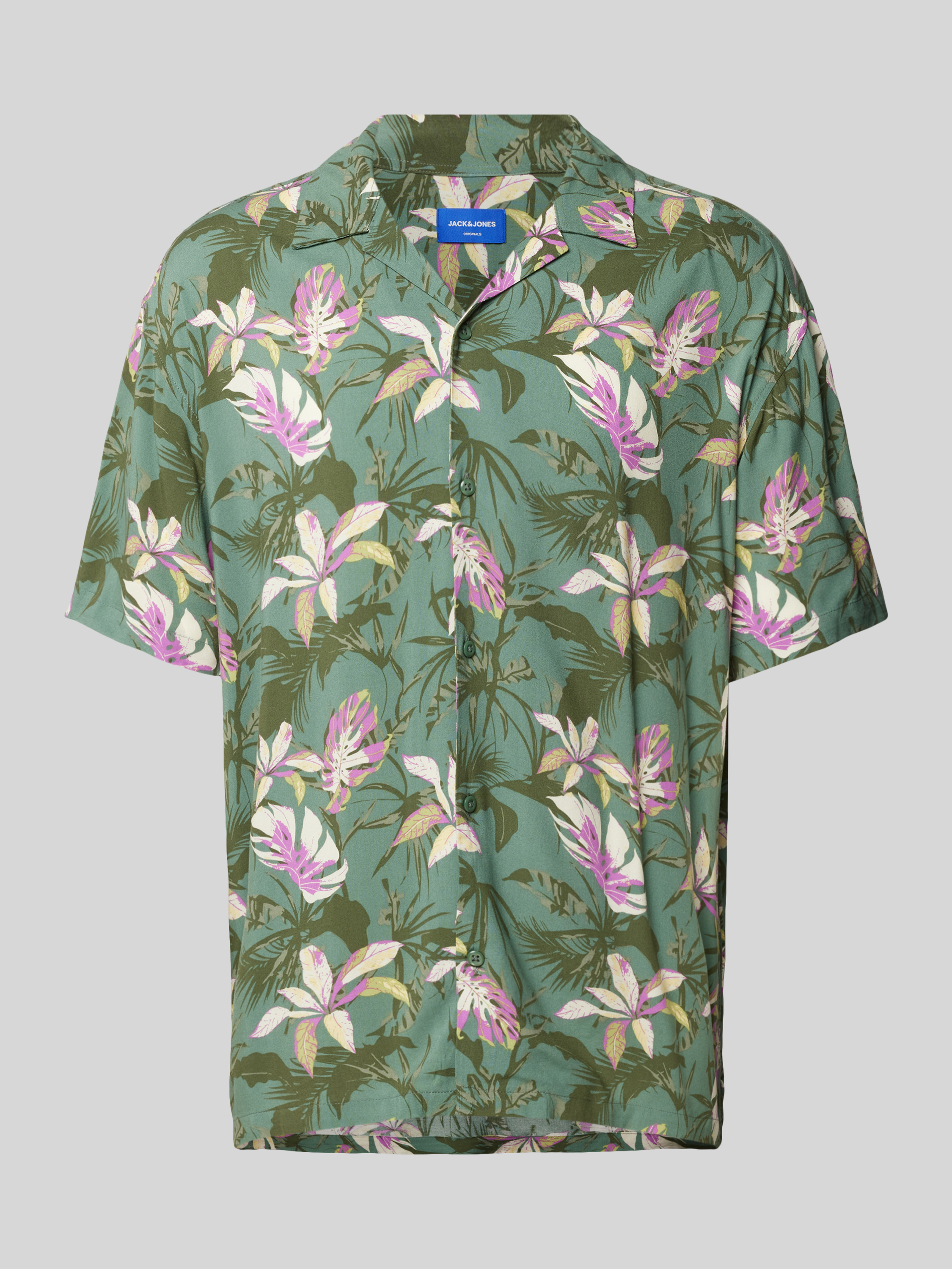 Das Freizeithemd 'JORLUKE TAMPA' von JACK & JONES, aus reiner Viskose gefertigt, präsentiert sich in einem angenehmen Regular Fit. Der Reverskragen und das lebendige Allover-Muster verleihen dem Hemd eine lässige Eleganz, die sich ideal für entspannte Anlässe eignet.