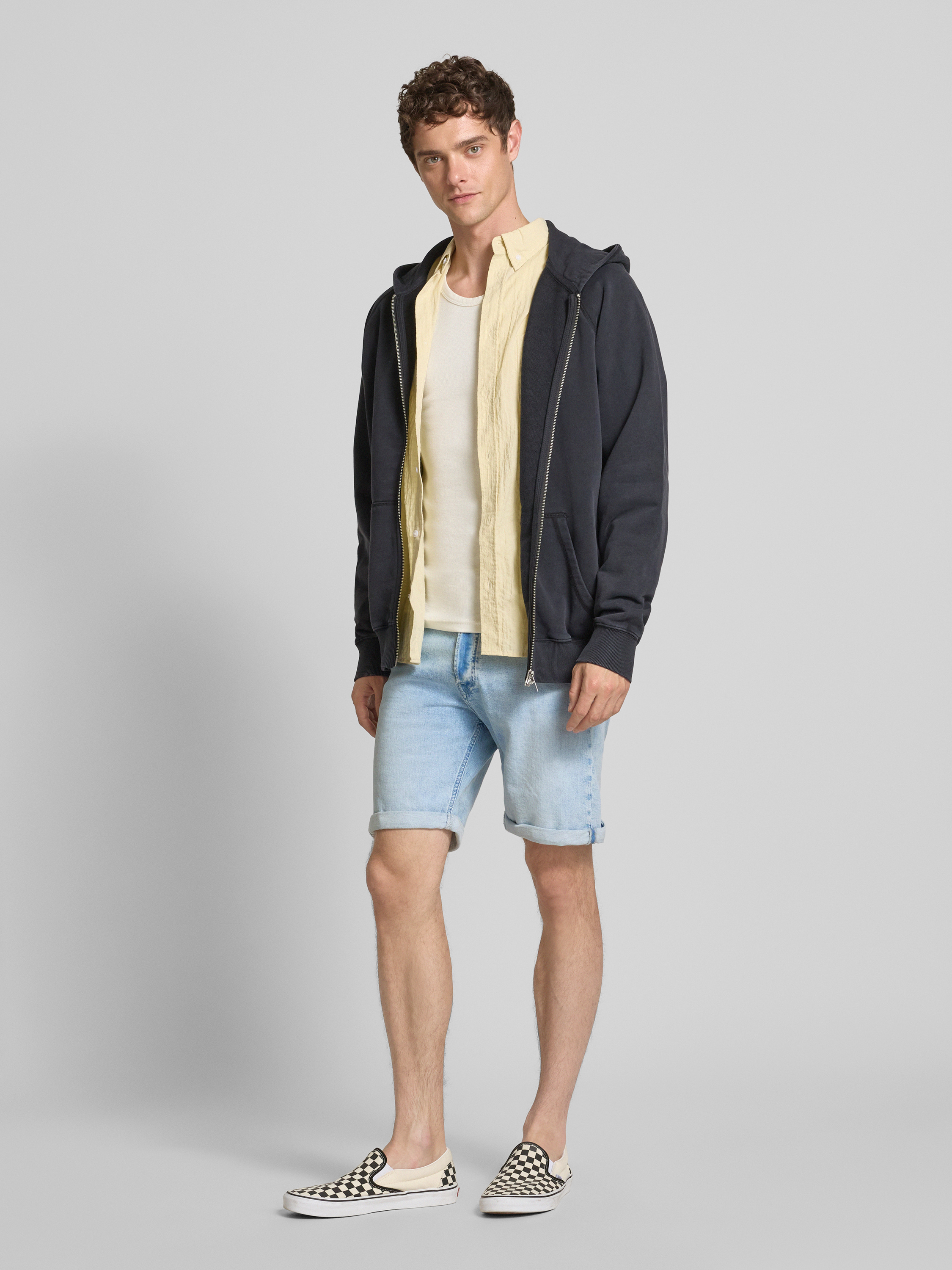 Die Regular Fit Jeansshorts im 5-Pocket-Design Modell 'RICK' von JACK & JONES zeichnen sich durch ihren bequemen Baumwoll-Elasthan-Mix aus, der für Bewegungsfreiheit sorgt. Mit ihrem klassischen Schnitt und den Gürtelschlaufen eignet sich diese Shorts ideal für legere Sommeraktivitäten. Der Aufschlag an den Beinabschlüssen verleiht einen lässigen Look.