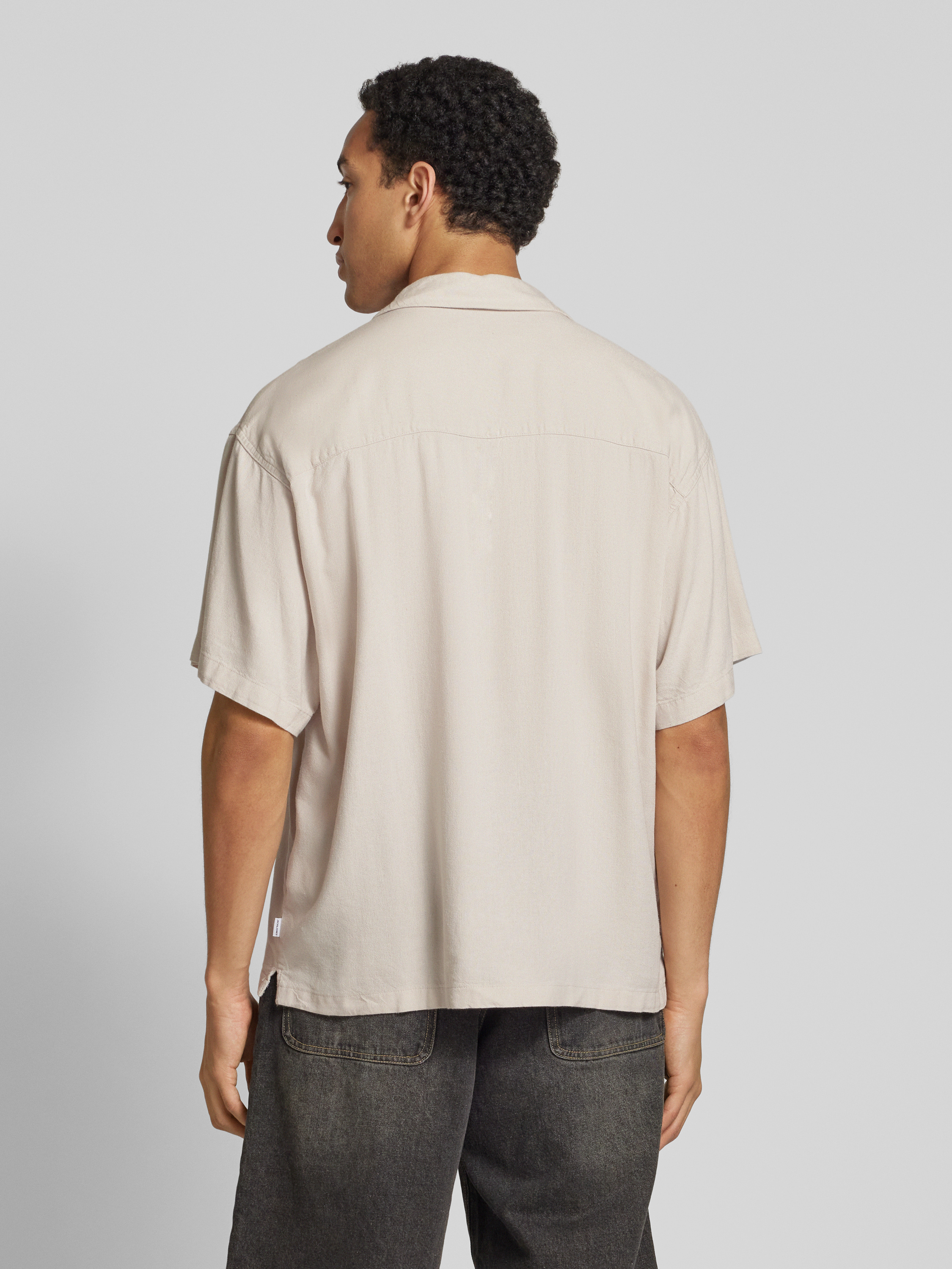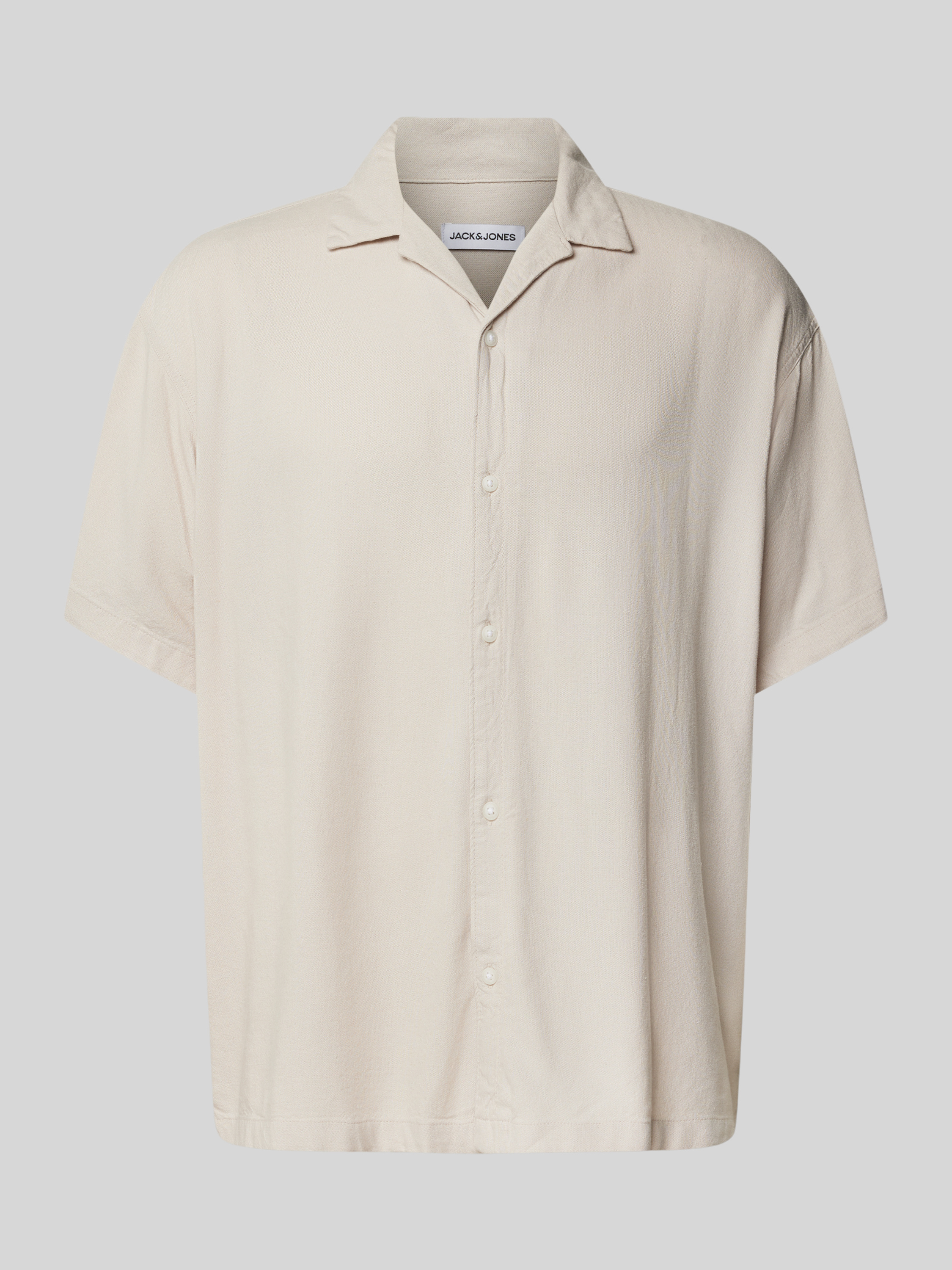 Das Relaxed Fit Freizeithemd von JACK & JONES, Modell 'WAYNE', kombiniert einen Viskose-Leinen-Mix mit einem lockeren Schnitt für optimalen Tragekomfort. Der Resortkragen und die halblangen Ärmel verleihen dem Hemd eine lässige Note, während der luftige Stoff ideal für warme Tage geeignet ist.