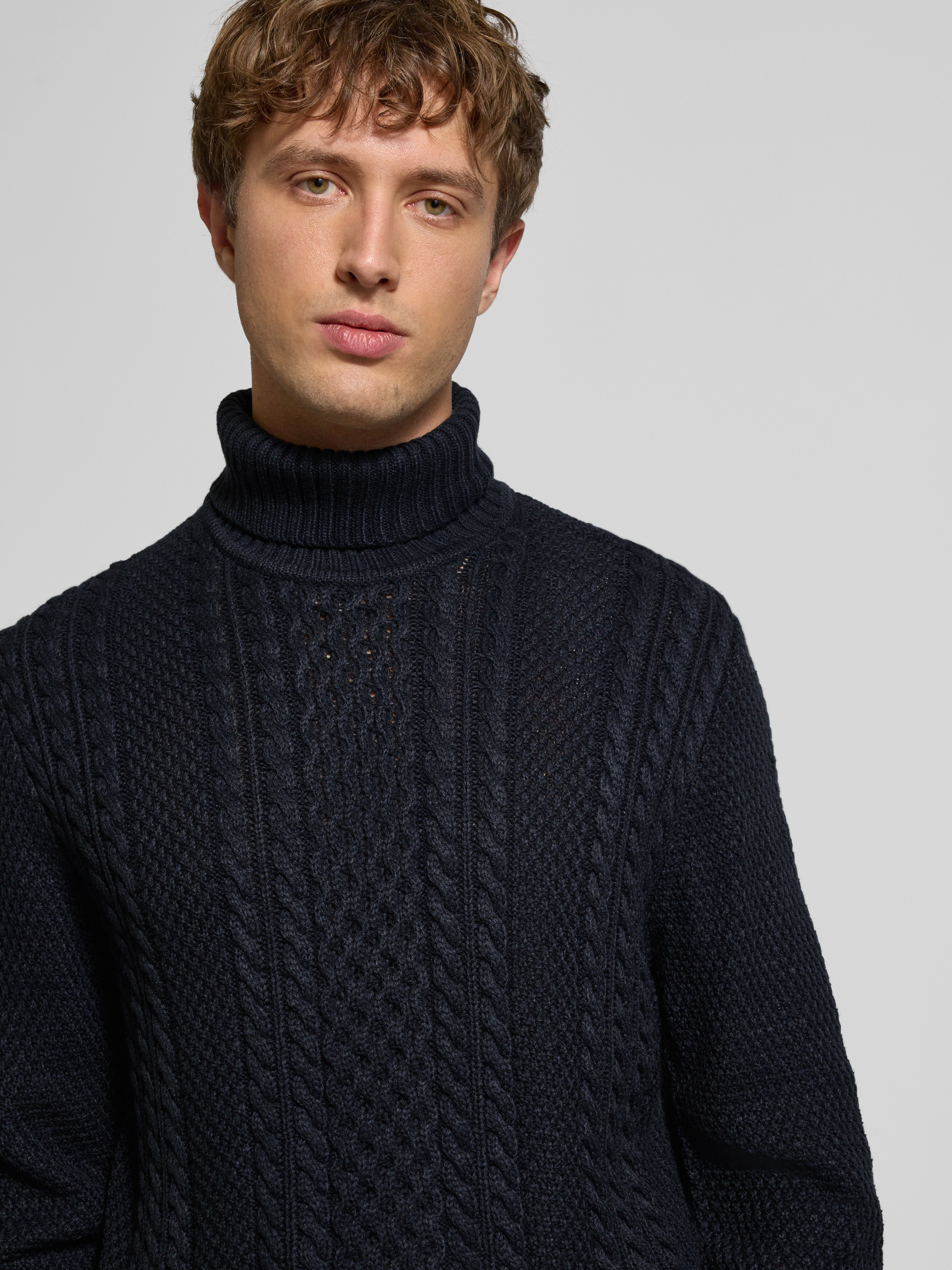 Jack & JonesRollkragenpullover mit Zopfmuster Modell 'PAUL' in marine