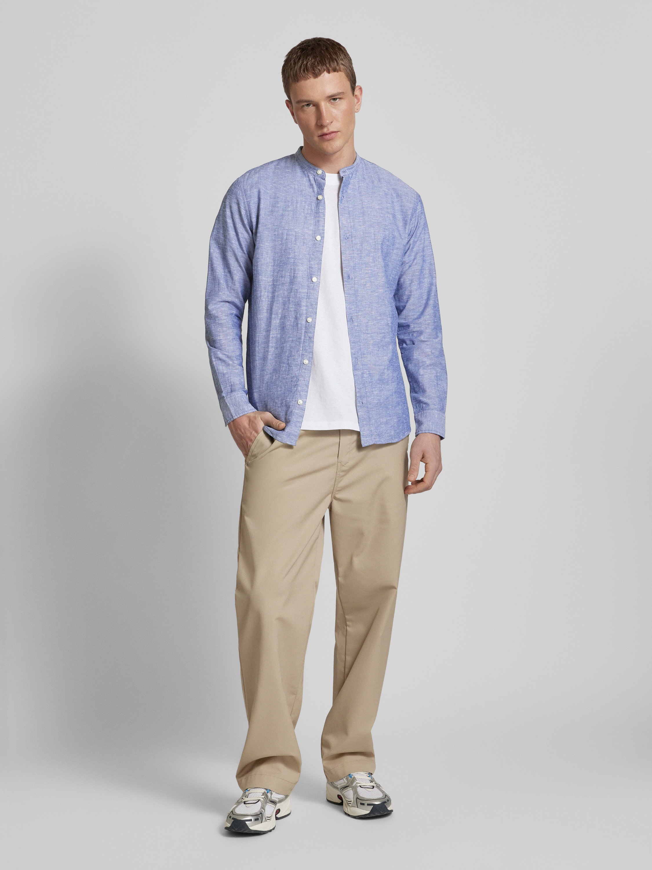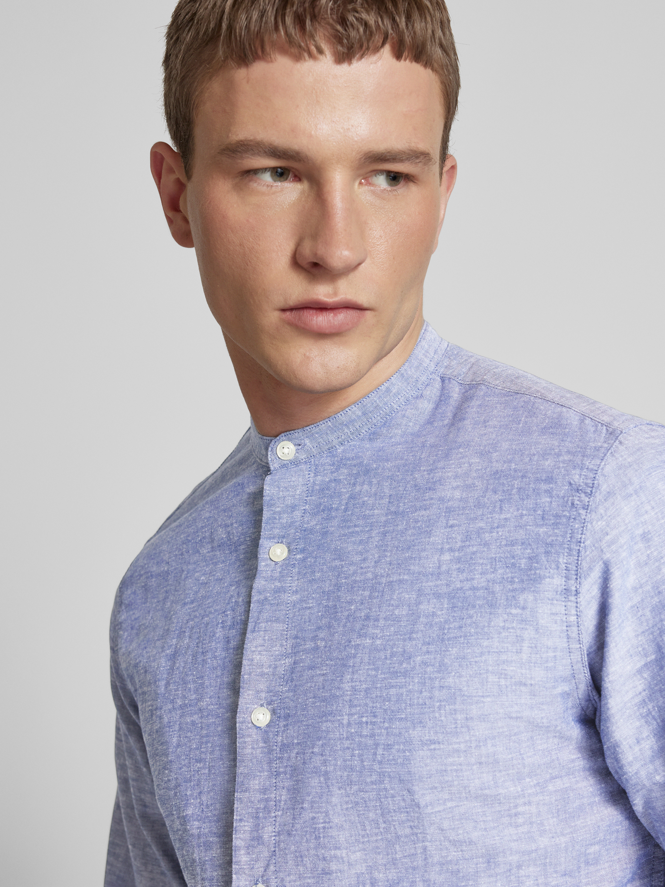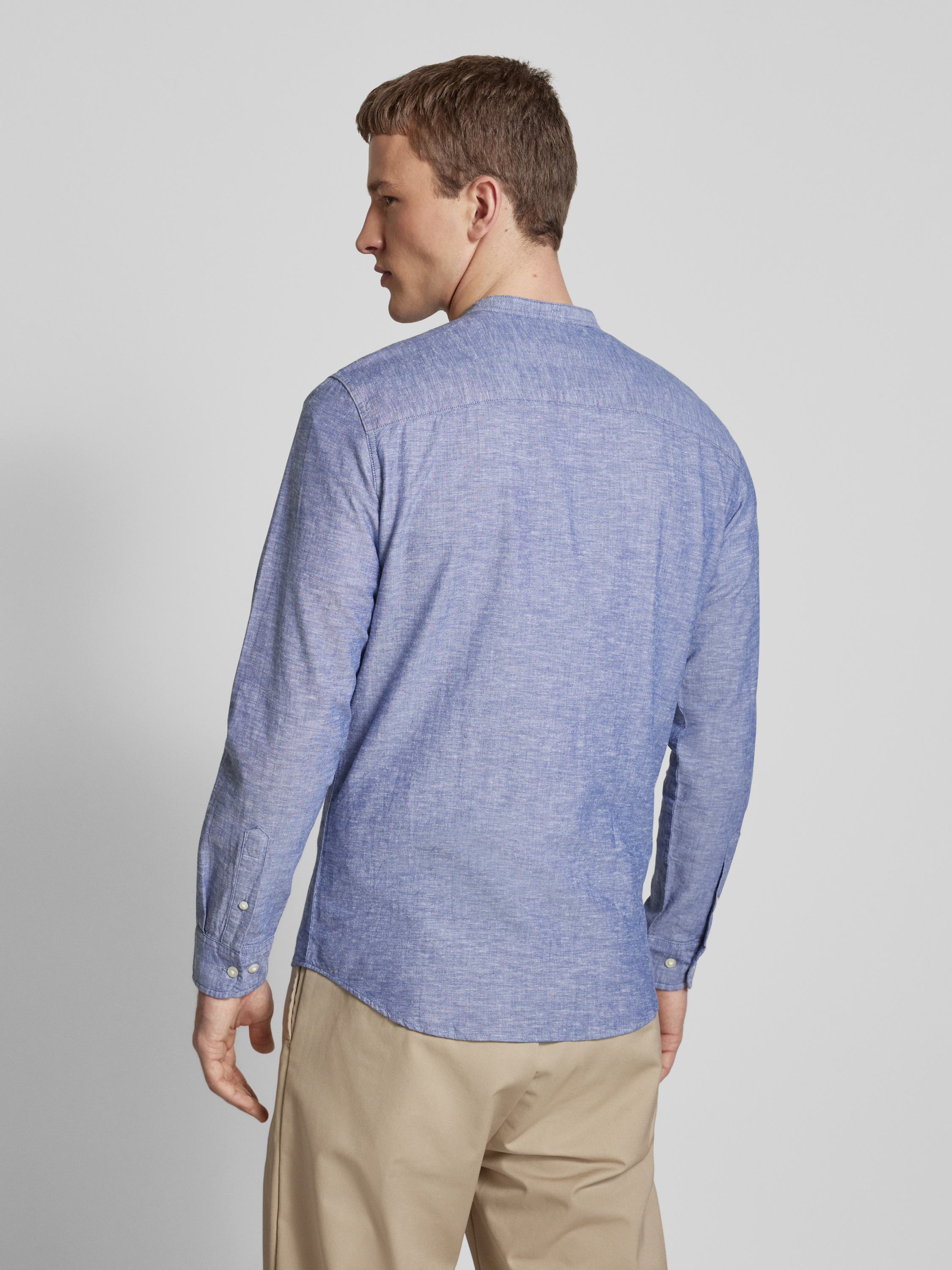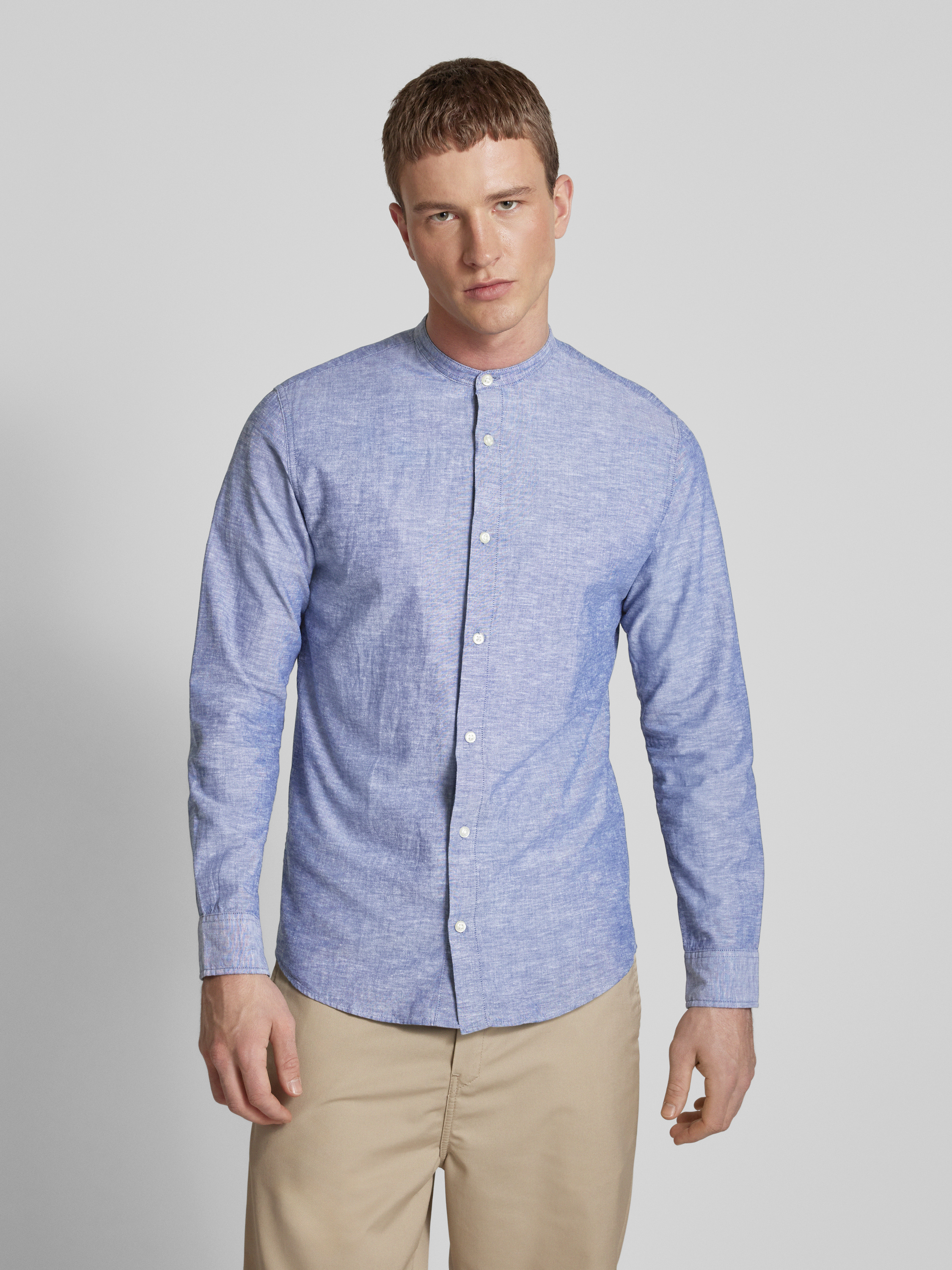 Das Slim Fit Freizeithemd 'JJEBREEZE' von JACK & JONES kombiniert einen Baumwoll-Leinen-Mix, der für ein angenehm leichtes Tragegefühl sorgt. Der Mao-Kragen verleiht dem Hemd eine moderne Note, während der körpernahe Schnitt eine schmeichelhafte Silhouette unterstützt. Ideal für entspannte Anlässe geeignet.