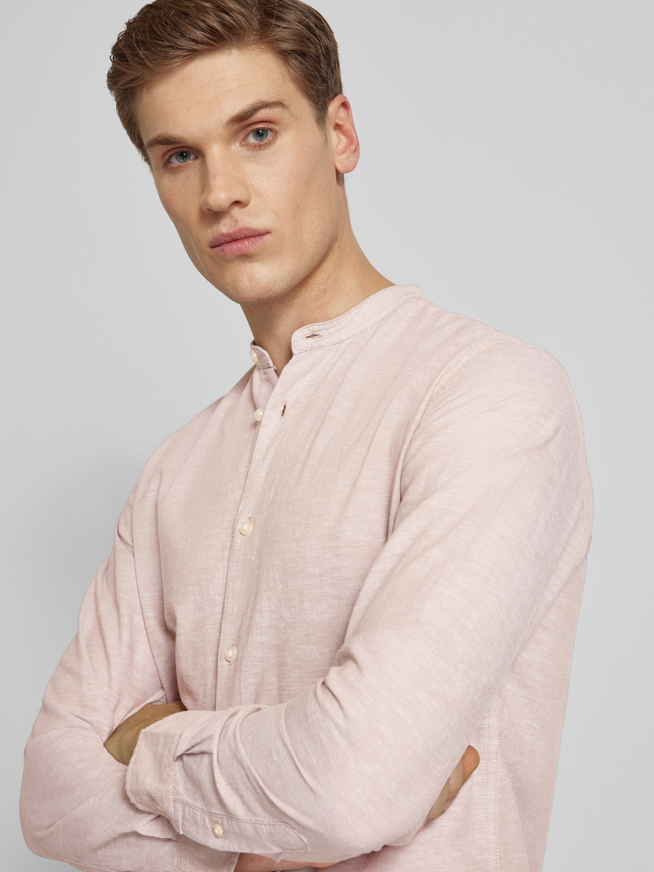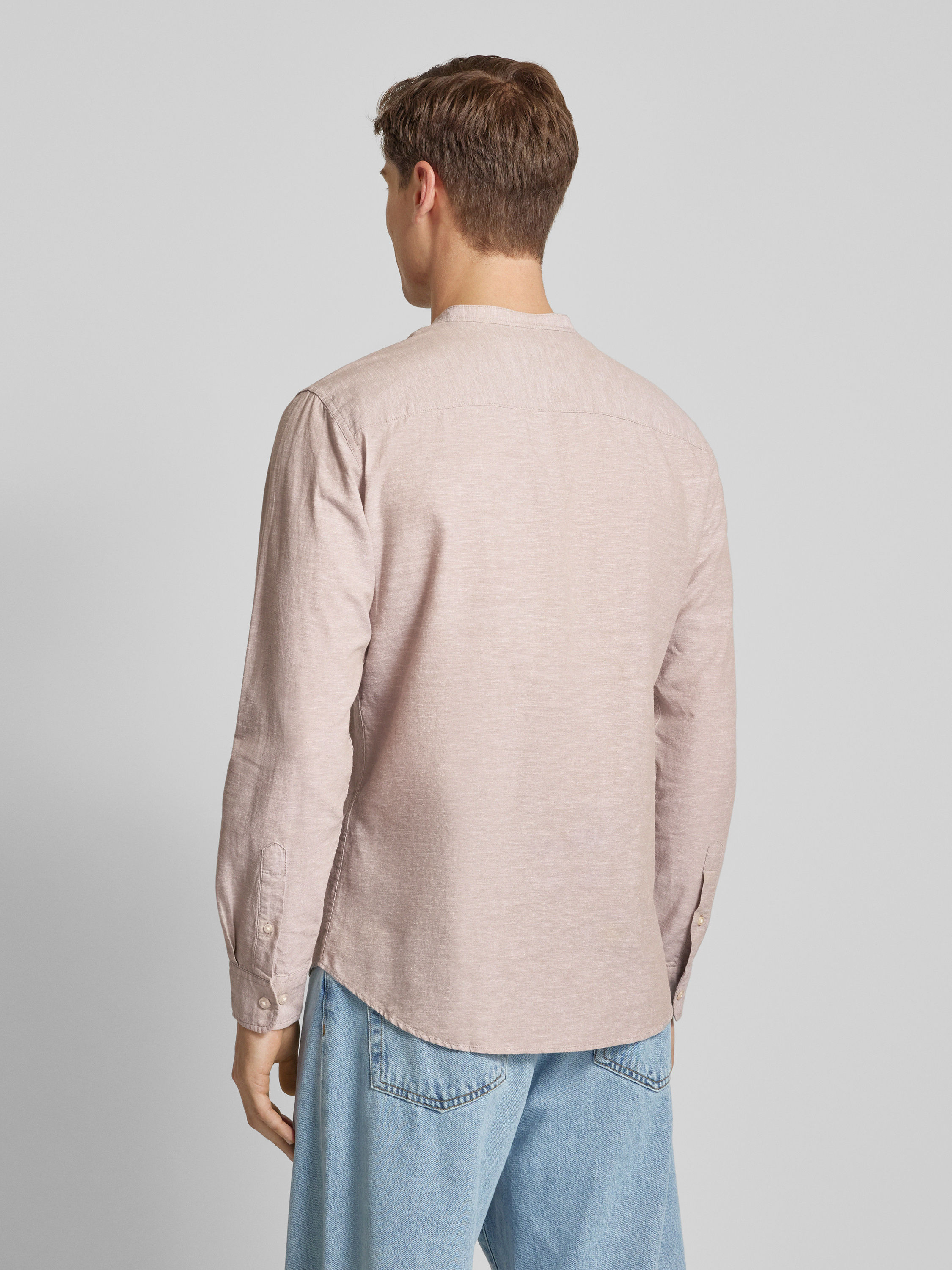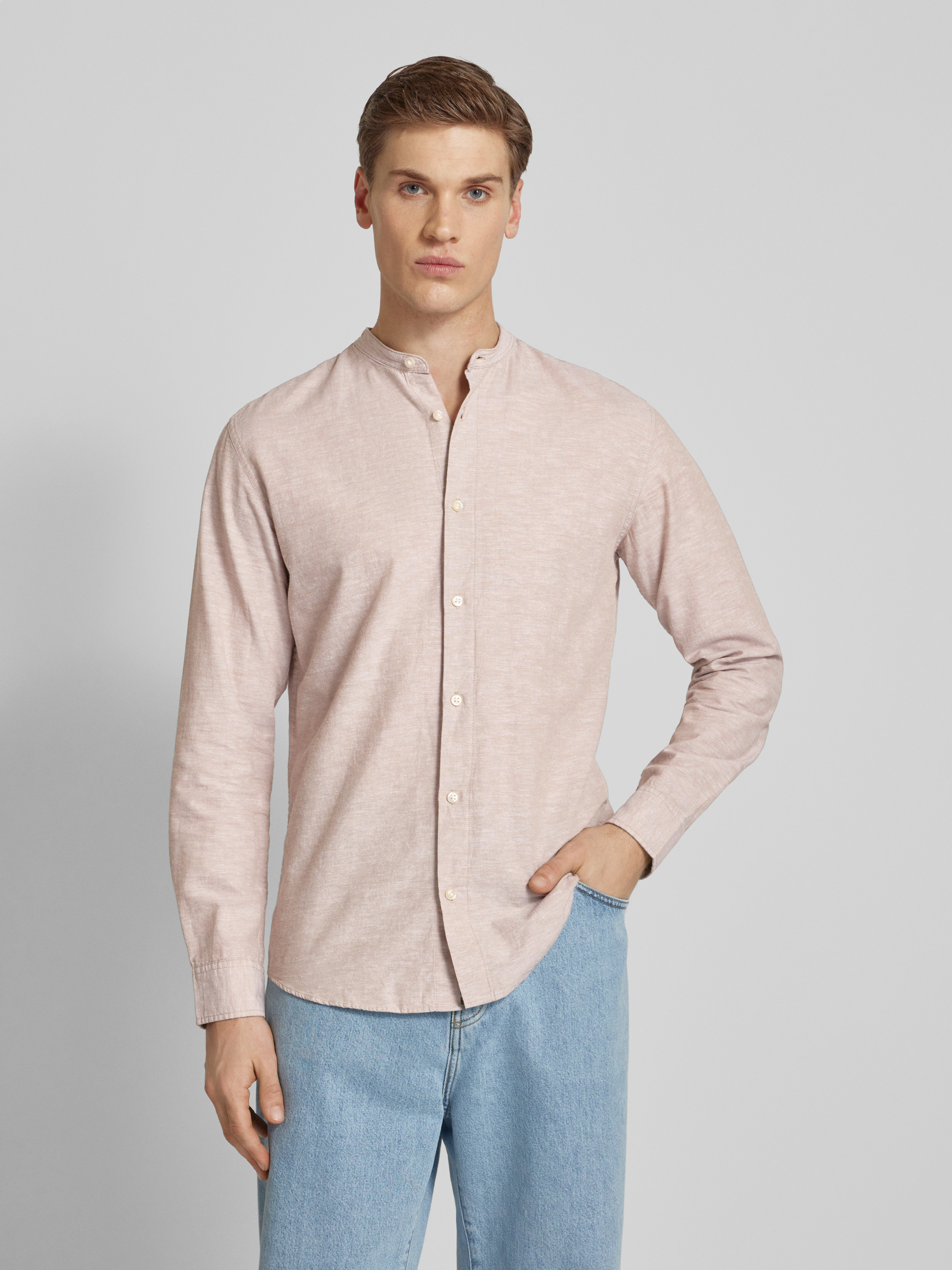 Das Slim Fit Freizeithemd 'JJEBREEZE' von JACK & JONES kombiniert einen Baumwoll-Leinen-Mix, der für ein angenehm leichtes Tragegefühl sorgt. Der Mao-Kragen verleiht dem Hemd eine moderne Note, während der körpernahe Schnitt eine schmeichelhafte Silhouette unterstützt. Ideal für entspannte Anlässe geeignet.