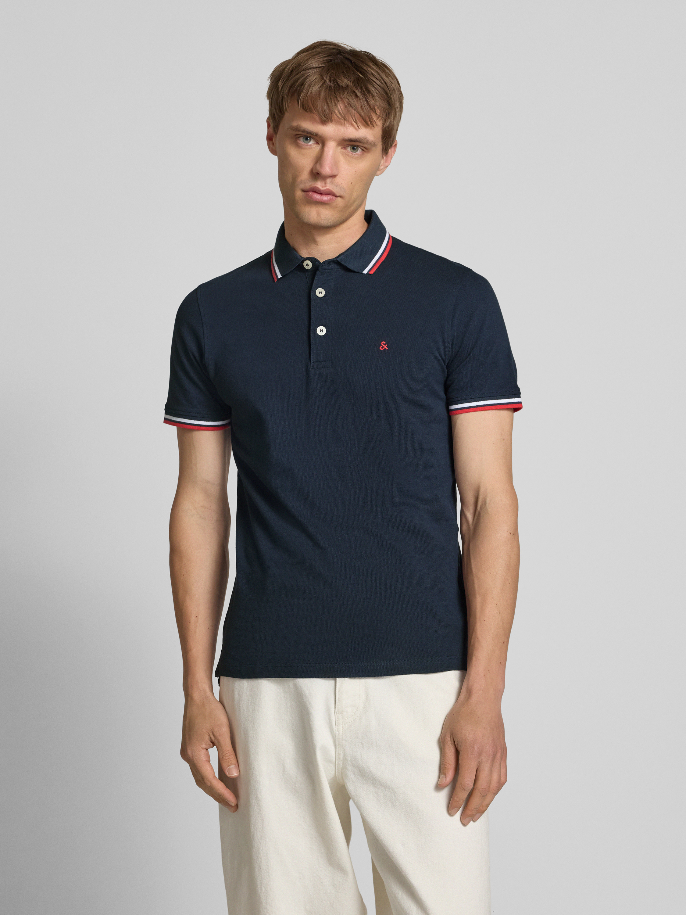 Jack & JonesSlim Fit Poloshirt mit Logo-Stitching Modell 'PAULOS' in marine