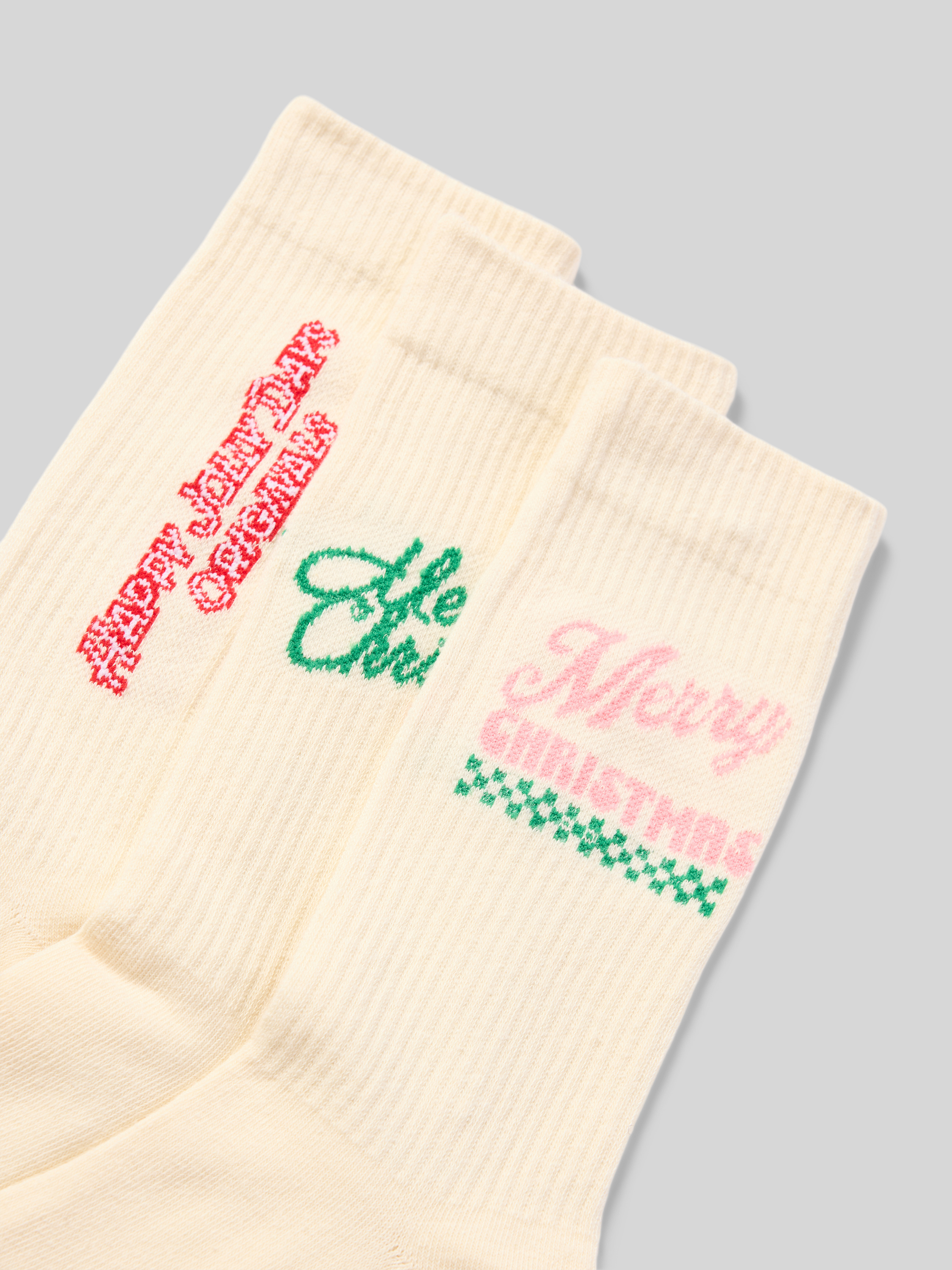 Jack & JonesSocken mit geripptem Abschluss Modell 'XMAS' im 3er-Pack in offwhite
