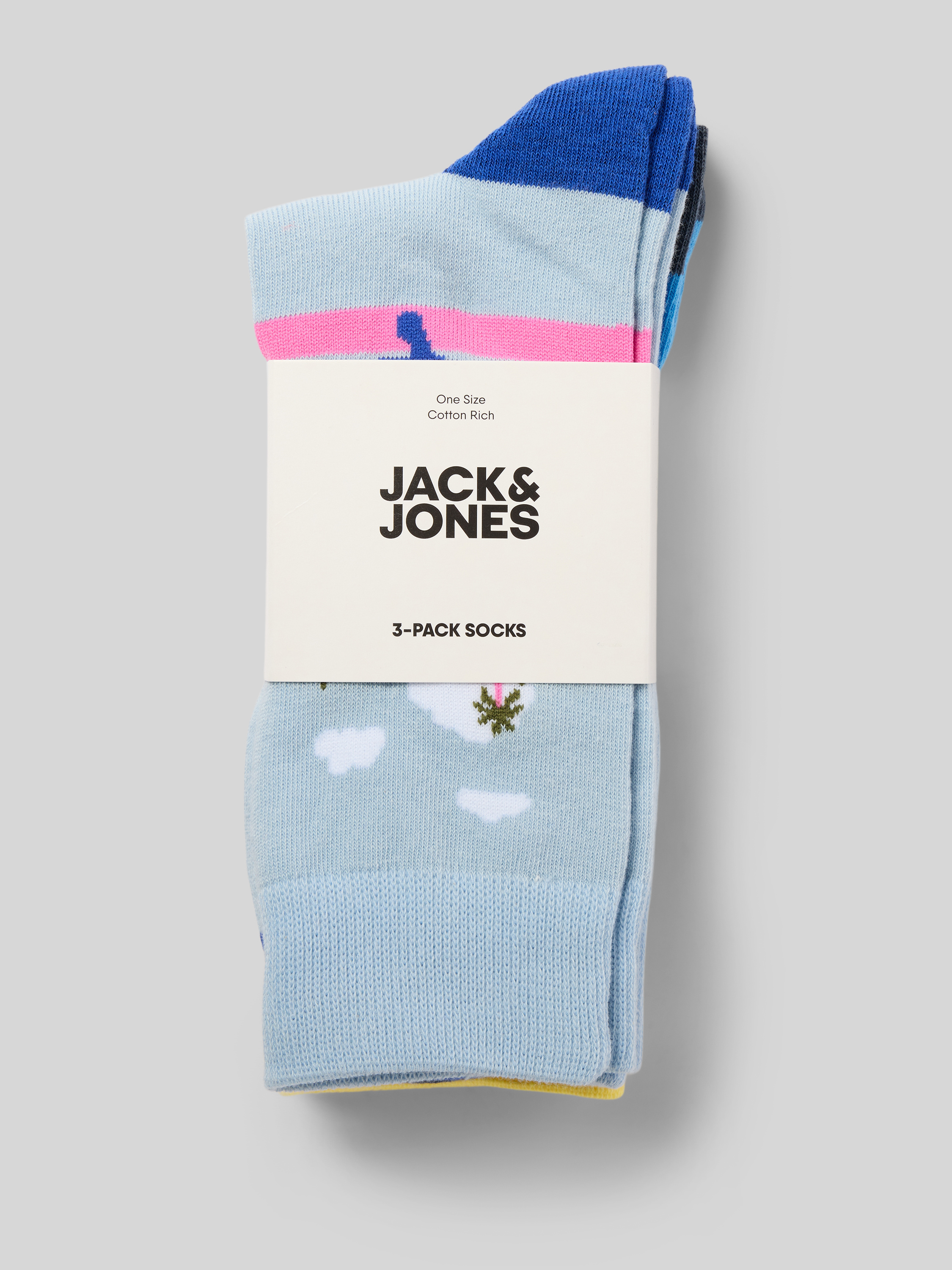 Jack & JonesSocken mit Label-Detail Modell 'BEACH LANDSCAPE' im 3er-Pack in hellblau