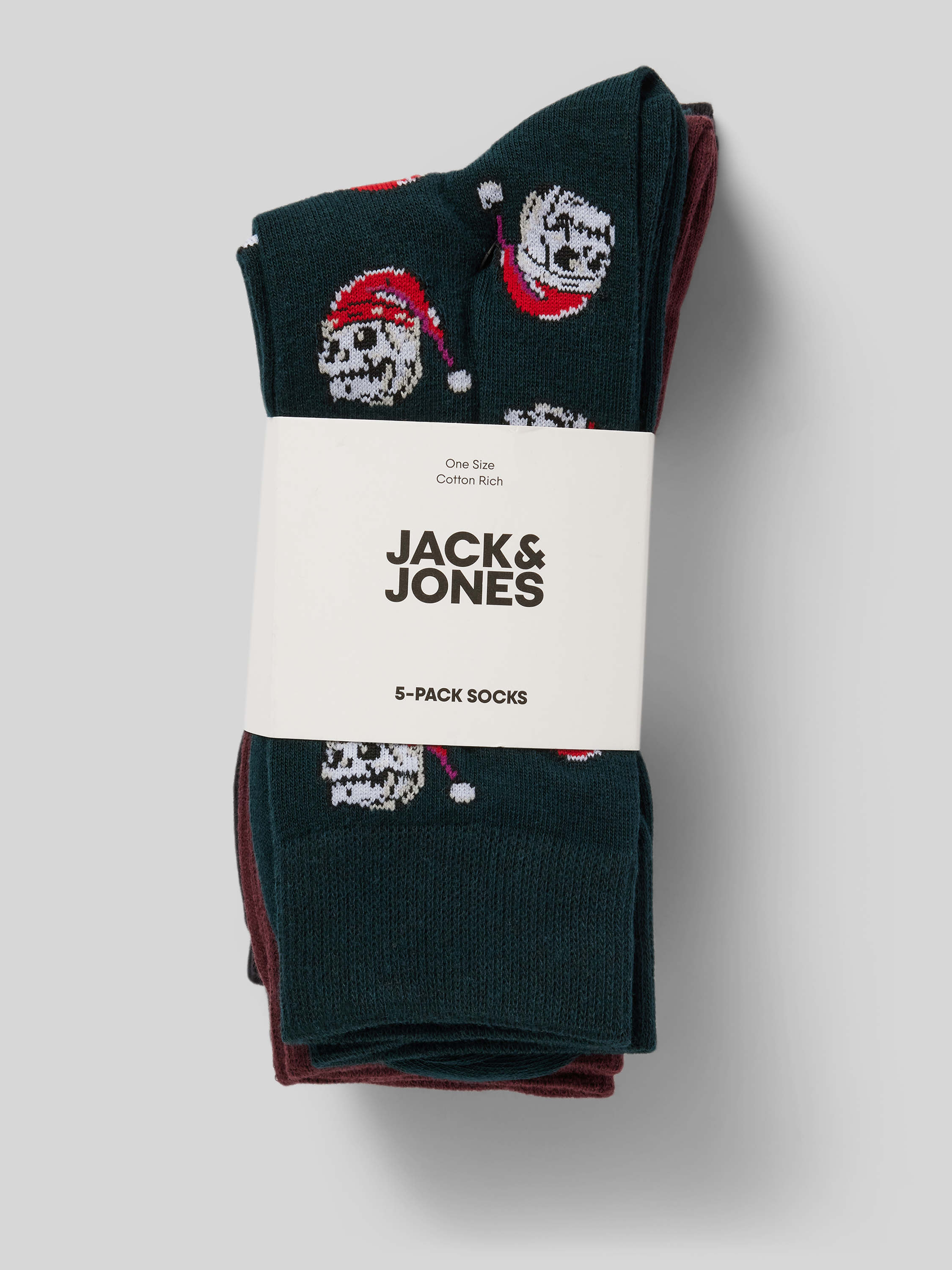 Jack & JonesSocken mit Label-Detail Modell 'XMAS SKULL' im 5er-Pack in dunkelgruen
