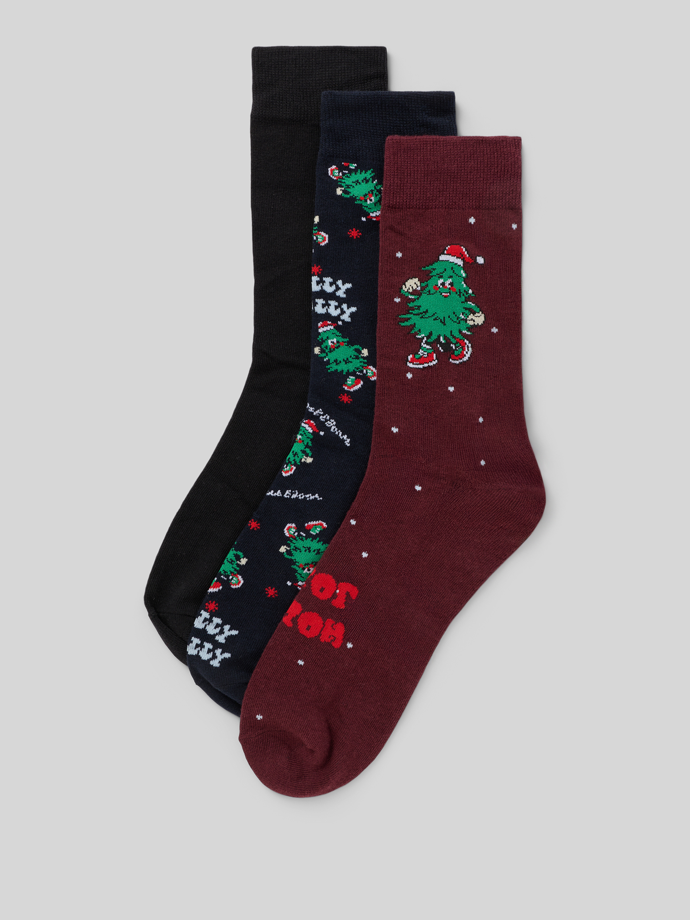 Jack & JonesSocken mit Motiv-Stitching Modell 'Jolly' im 3er-Pack in bordeaux