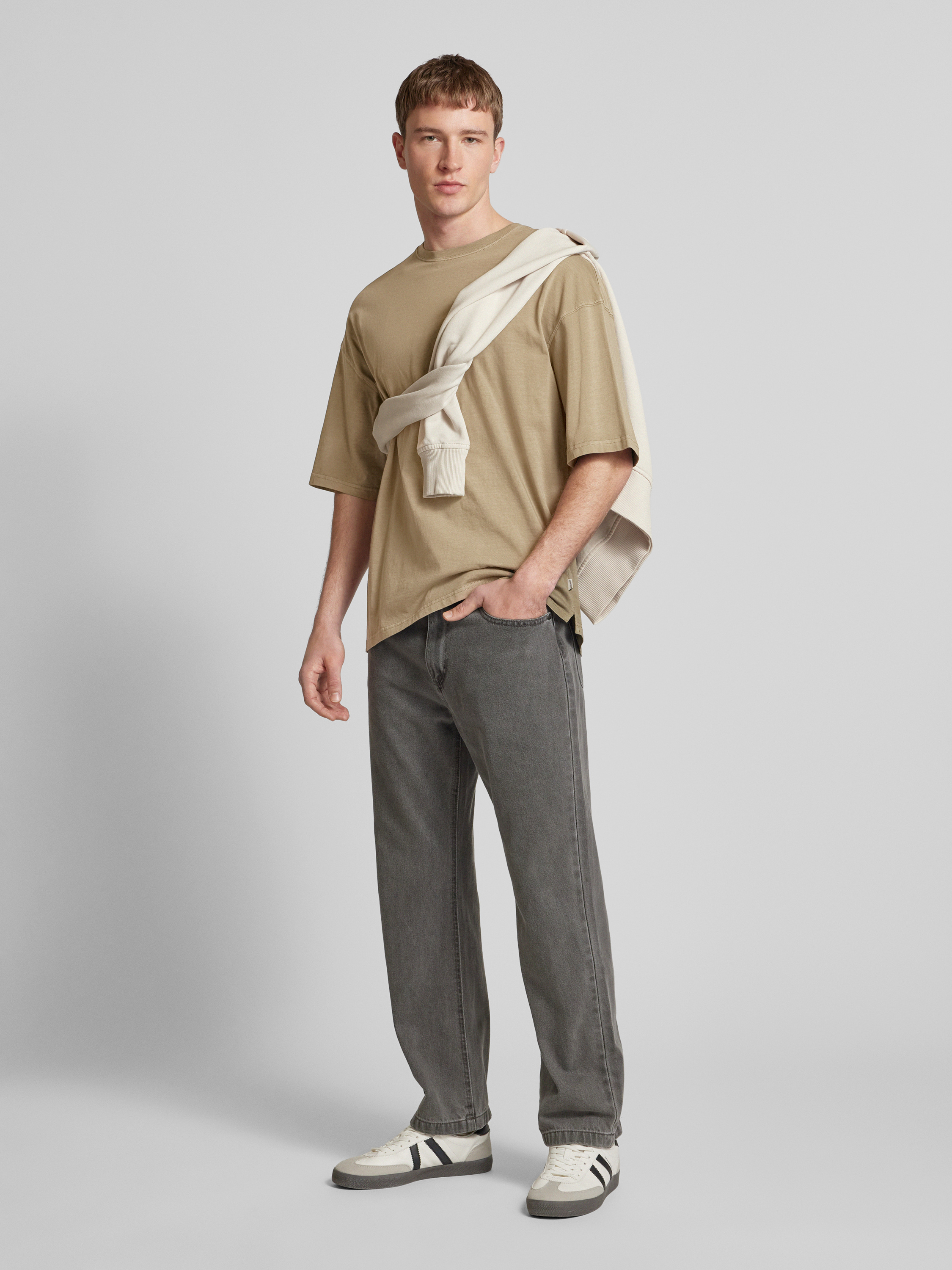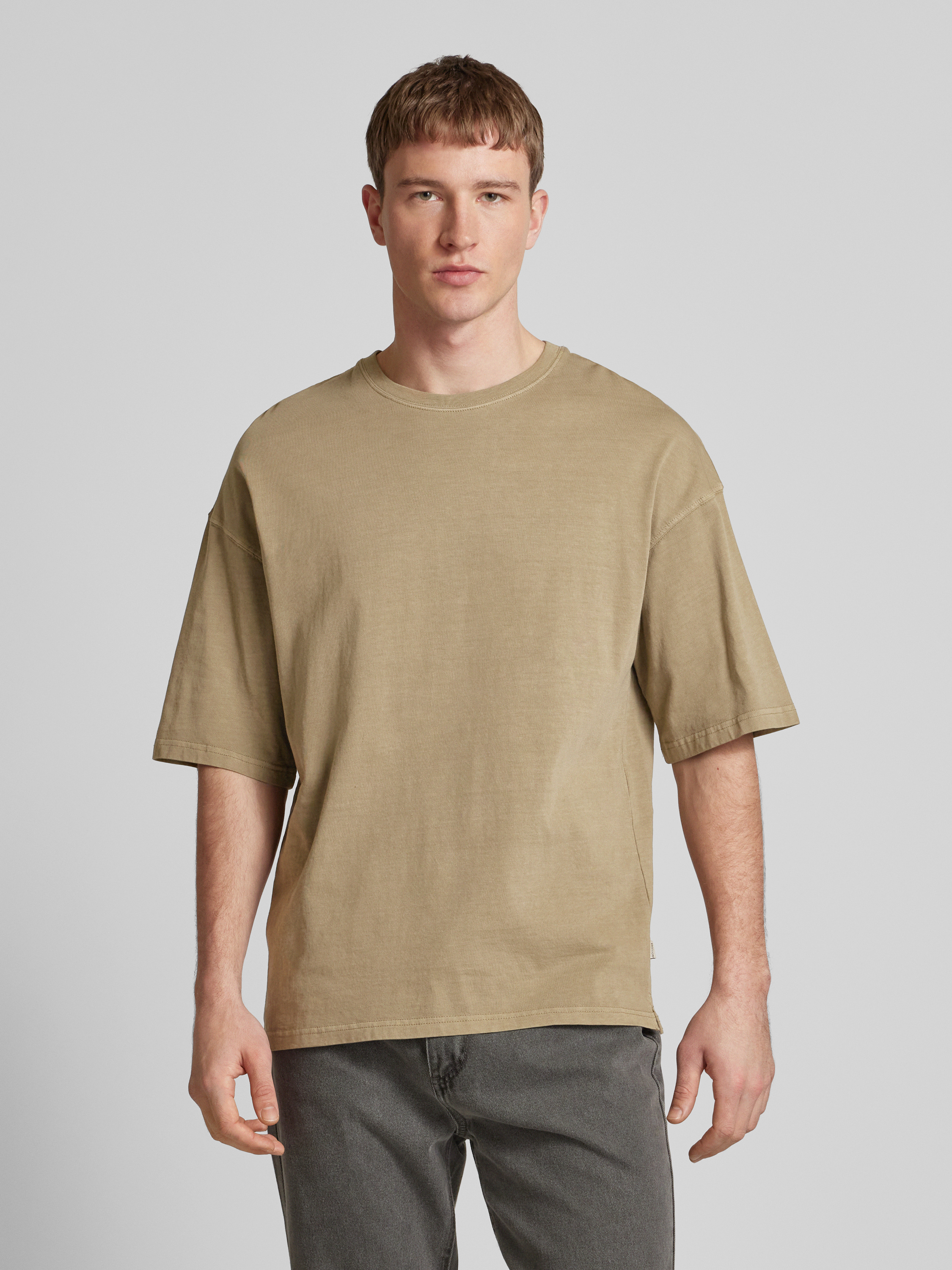Jack & JonesT-Shirt mit geripptem Rundhalsausschnitt Modell 'CHARGE' in beige