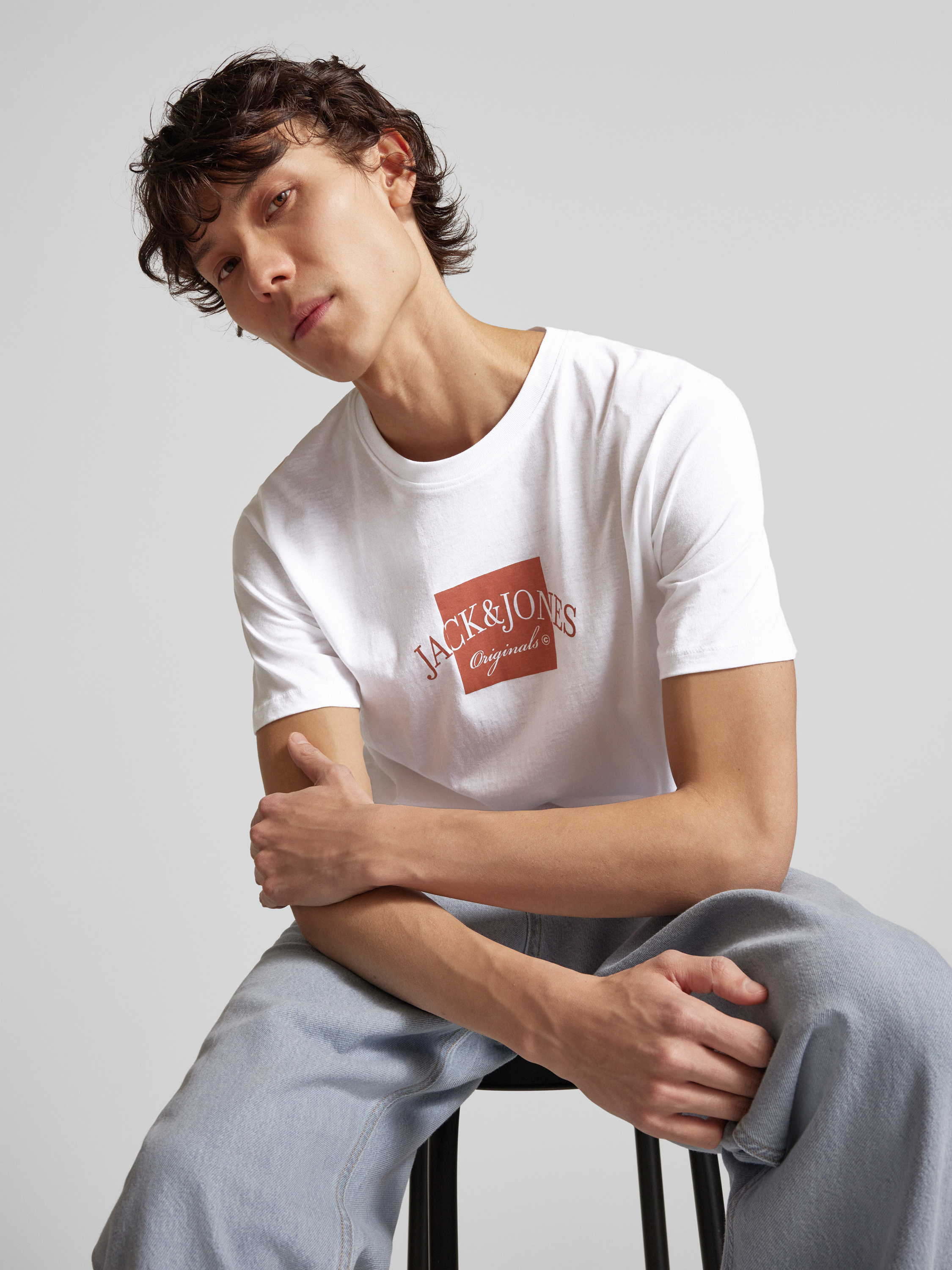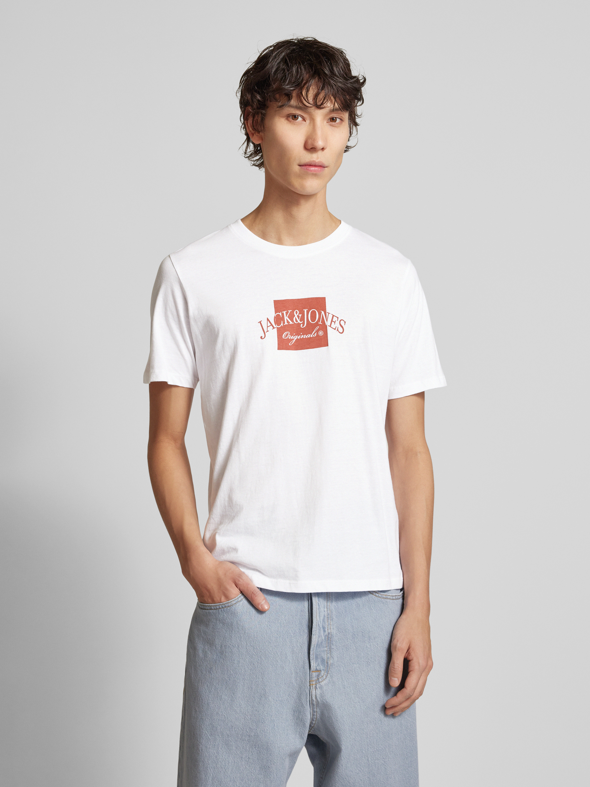 Jack & JonesT-Shirt mit Label-Print Modell 'BOSTON' in weiss