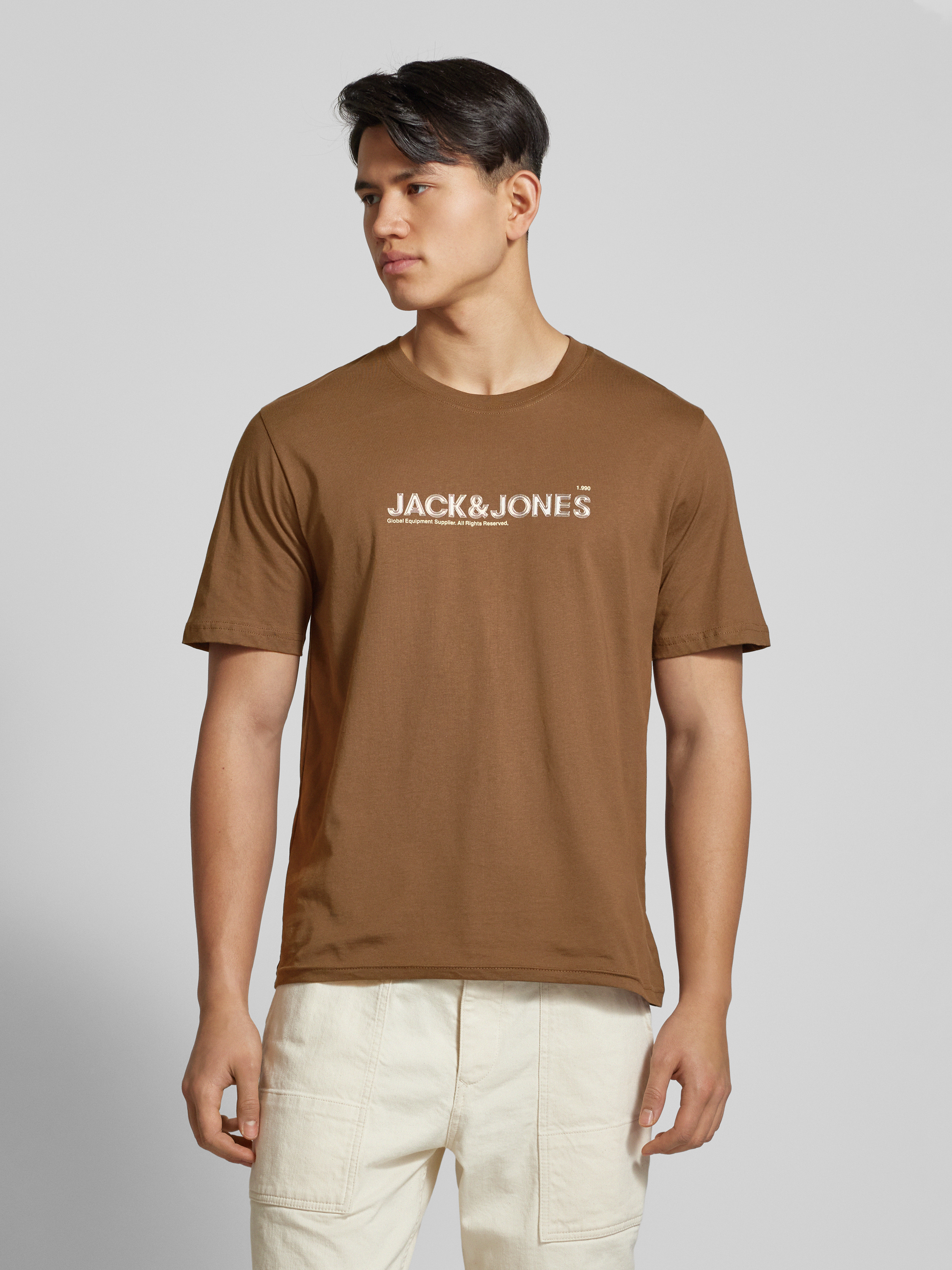 Jack & JonesT-Shirt mit Label-Print Modell 'CODYNAMIC' in mittelbraun