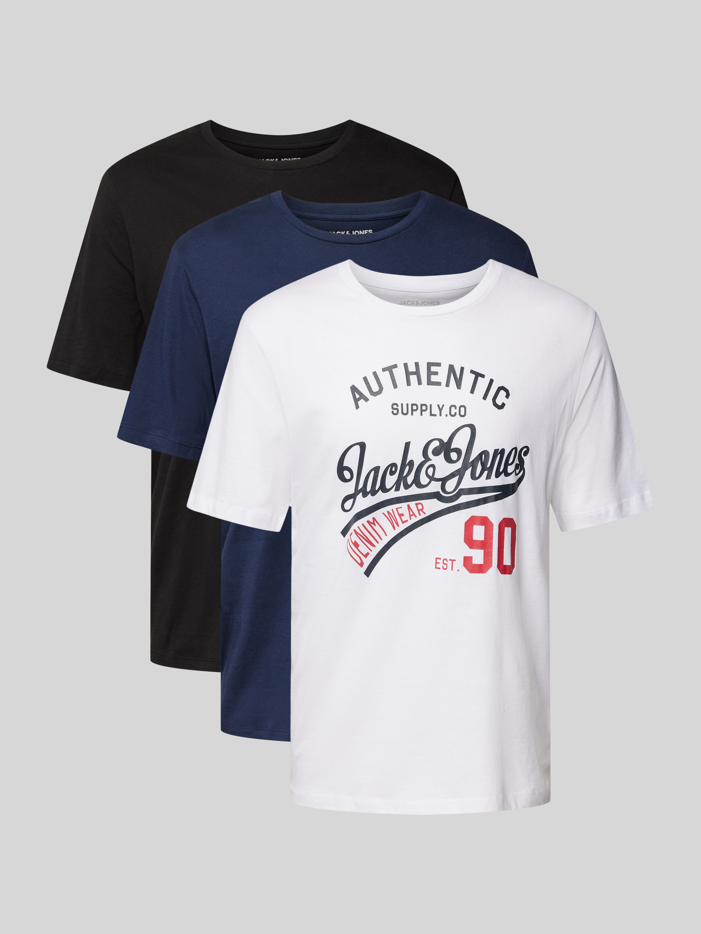 Jack & JonesT-Shirt mit Label-Print Modell 'ETHAN' im 3er-Pack in black