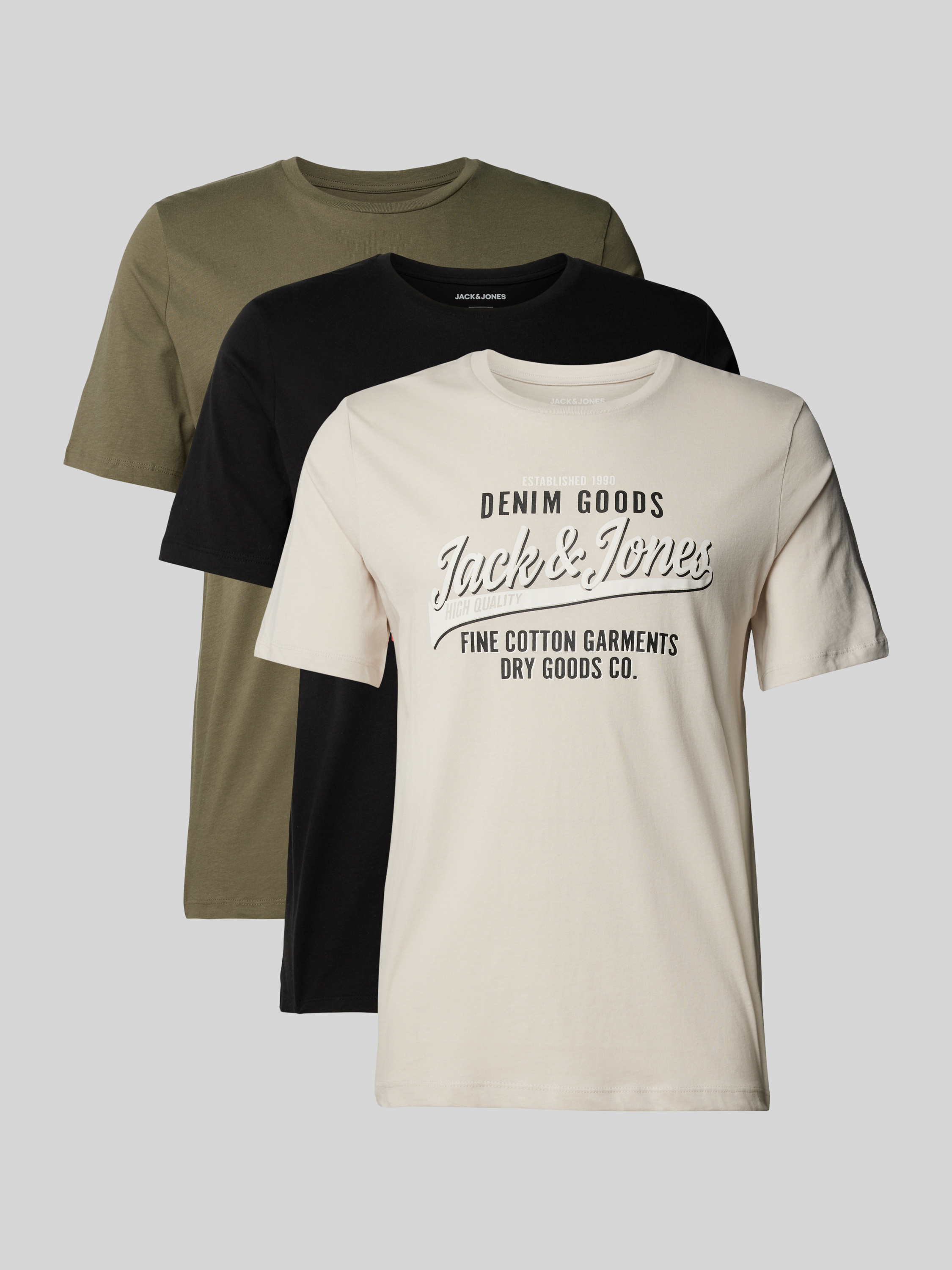 Jack & JonesT-Shirt mit Label-Print Modell 'ETHAN' im 3er-Pack in oliv