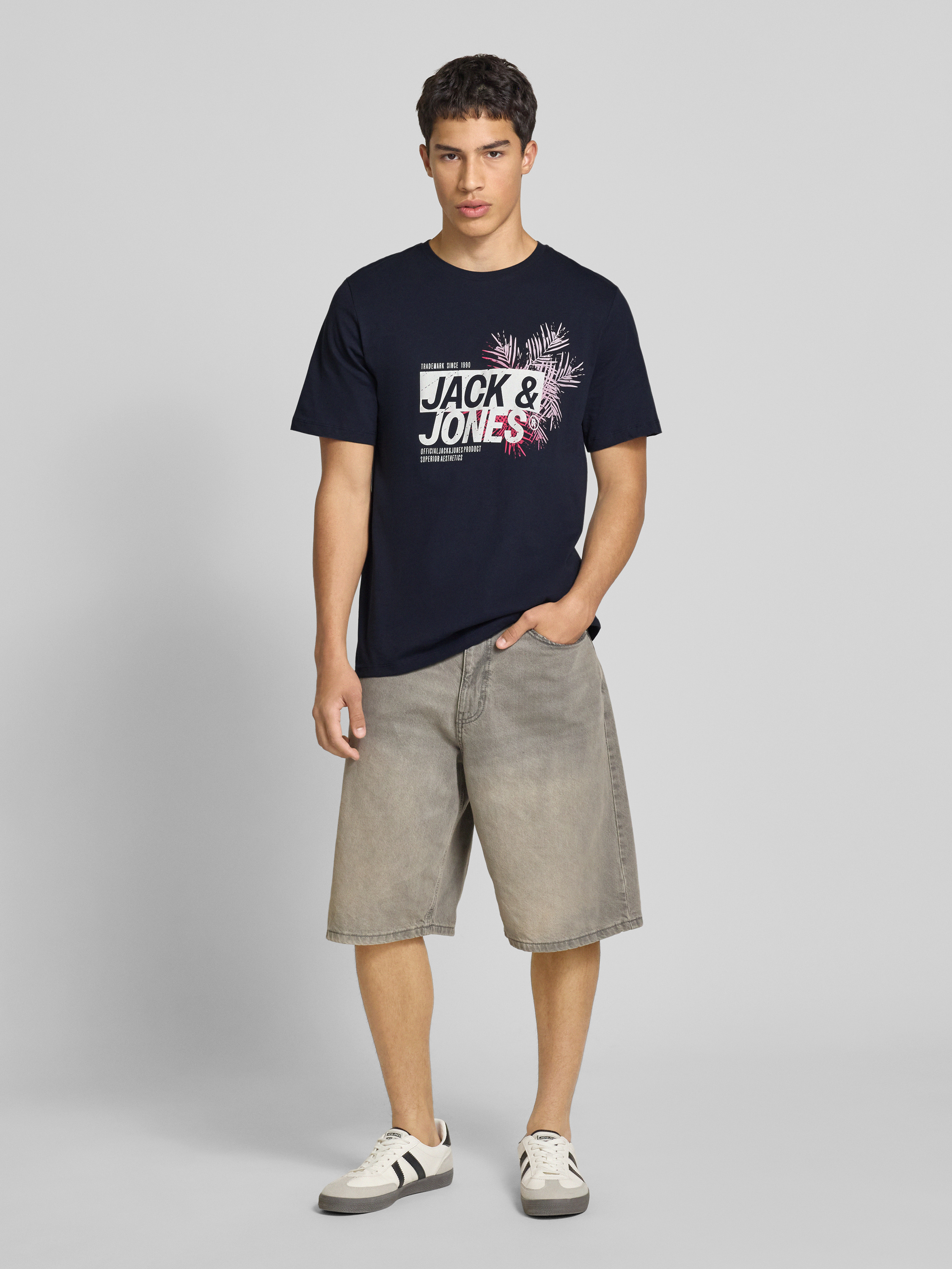 Jack & JonesT-Shirt mit Label-Print Modell 'JAXON' in marine