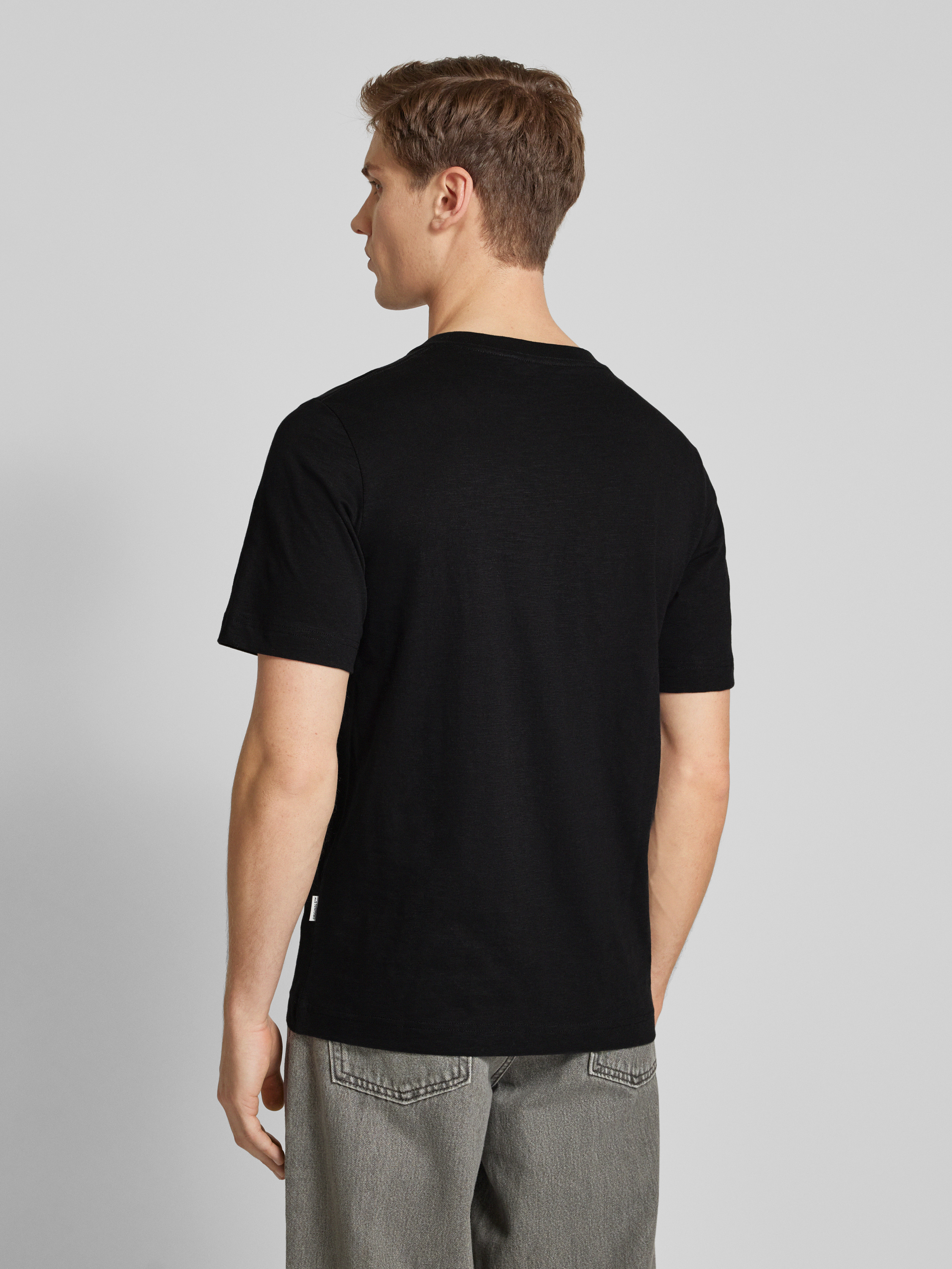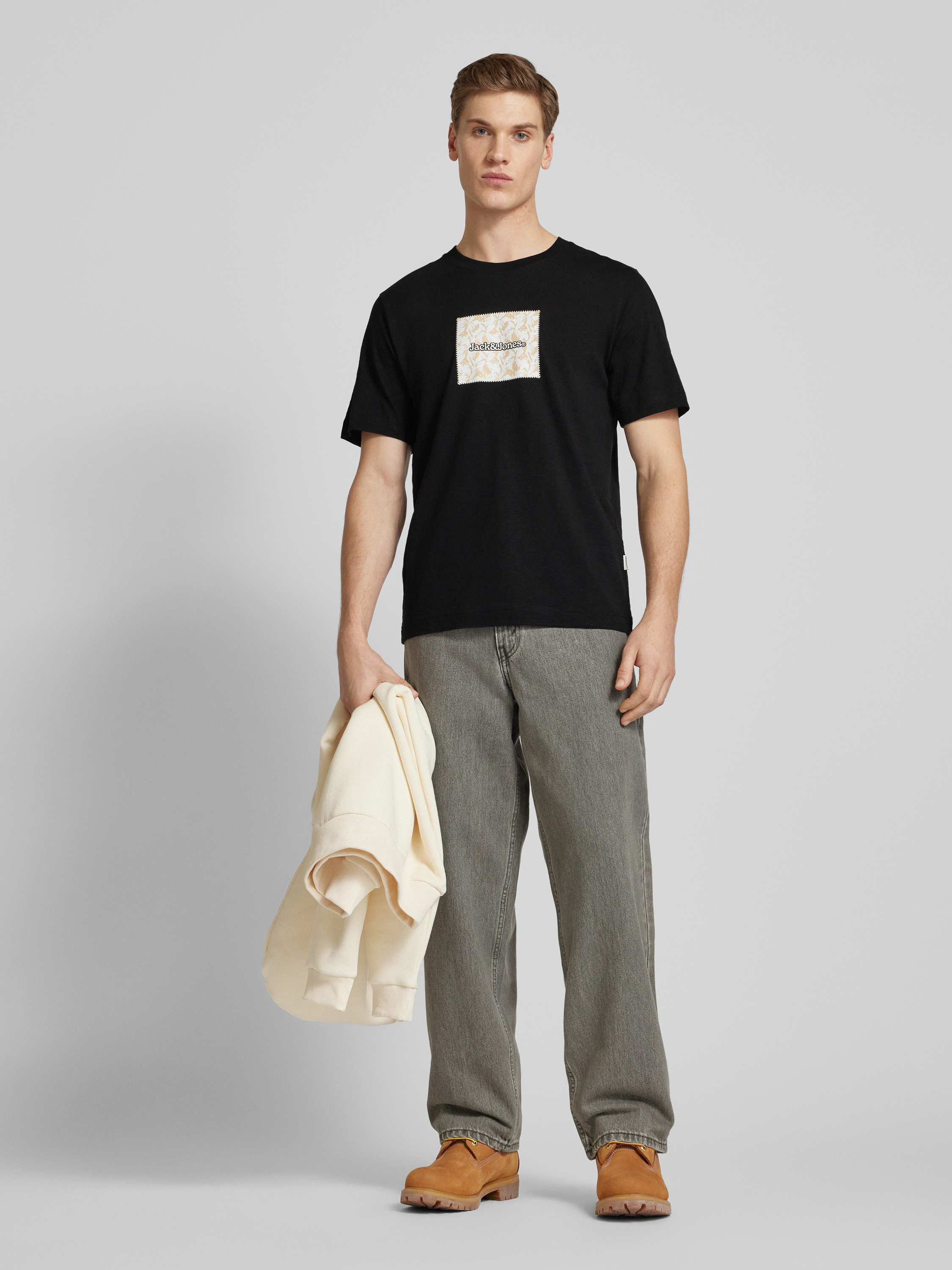 Das T-Shirt mit Label-Print Modell 'SPLIT' von JACK & JONES aus reiner Baumwolle kombiniert Langlebigkeit mit hohem Tragekomfort. Der gerade Schnitt und der klassische Rundhalsausschnitt machen es zu einem vielseitigen Kleidungsstück, das sich für verschiedene Anlässe eignet. Der auffällige Label-Print verleiht einen modernen Touch.