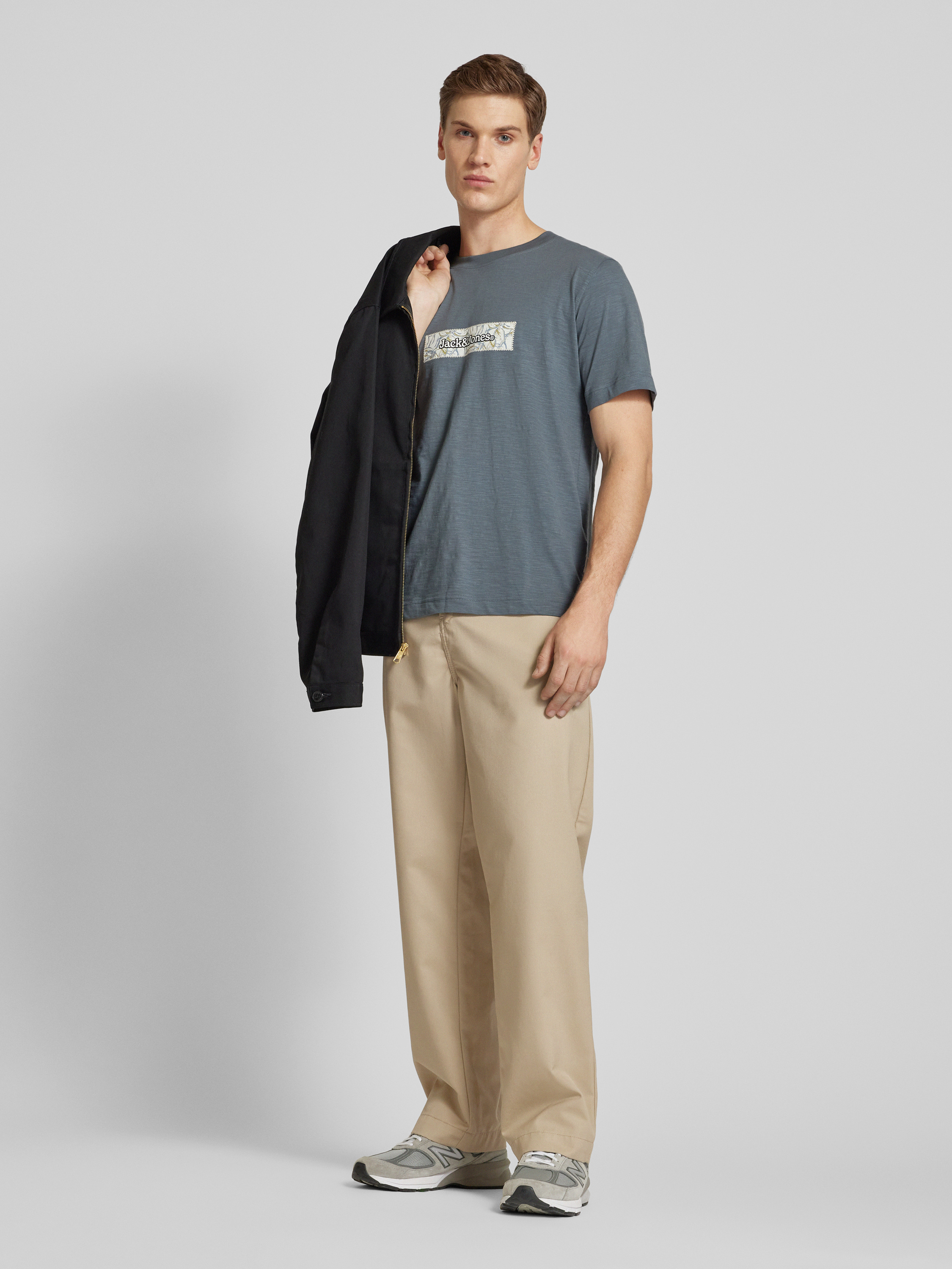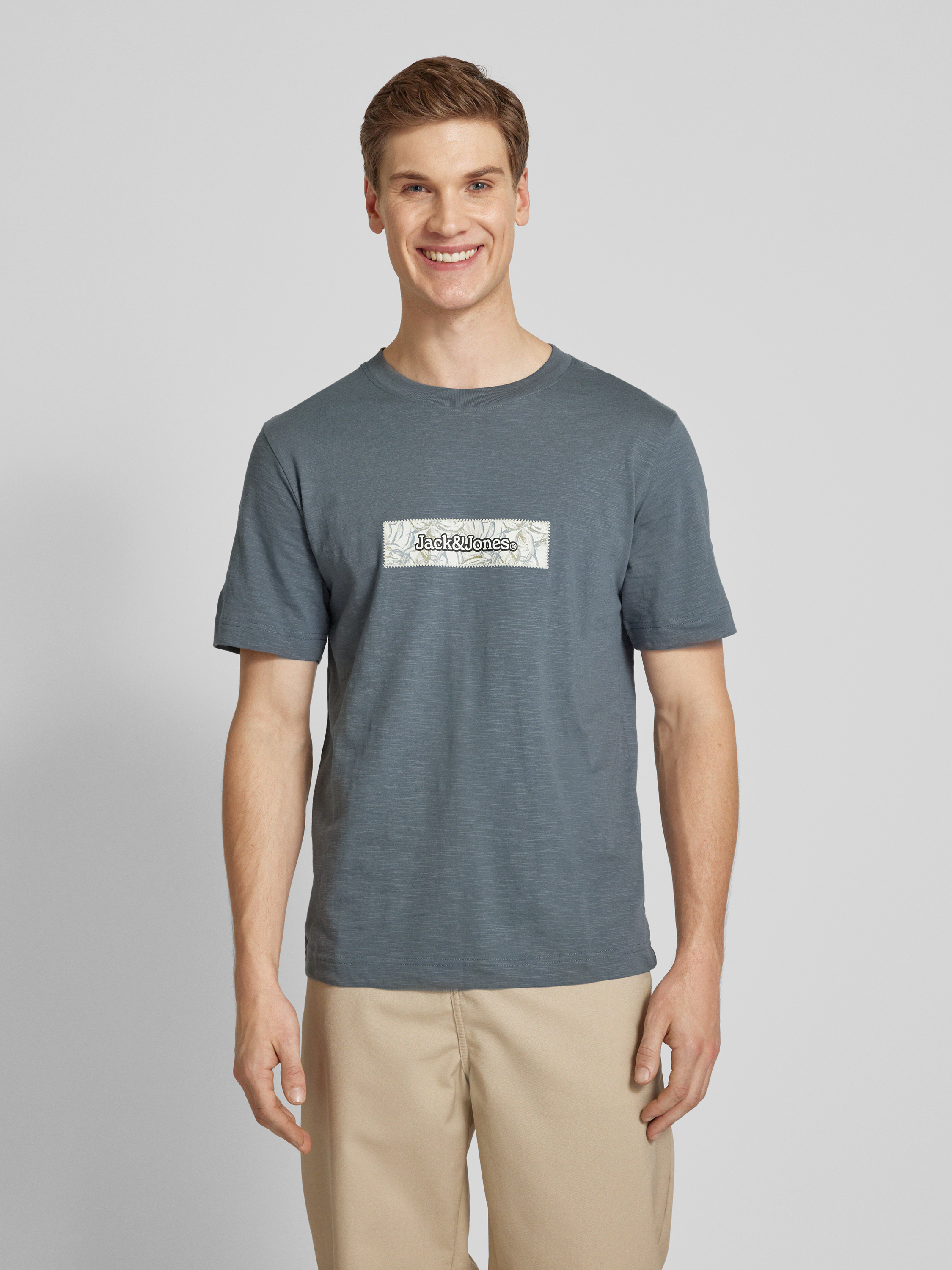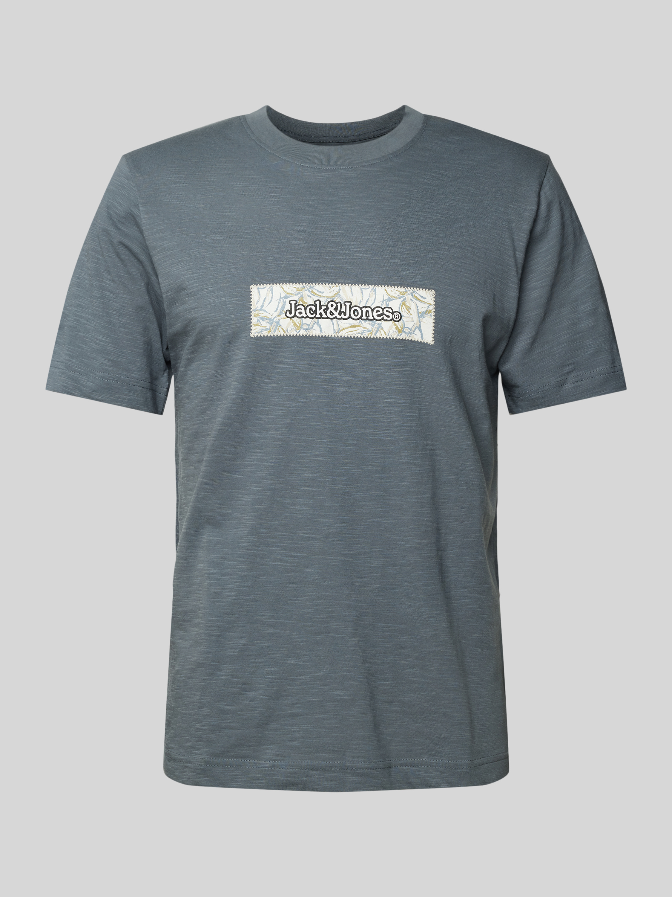 Das T-Shirt mit Label-Print Modell 'SPLIT' von JACK & JONES aus reiner Baumwolle kombiniert Langlebigkeit mit hohem Tragekomfort. Der gerade Schnitt und der klassische Rundhalsausschnitt machen es zu einem vielseitigen Kleidungsstück, das sich für verschiedene Anlässe eignet. Der auffällige Label-Print verleiht einen modernen Touch.