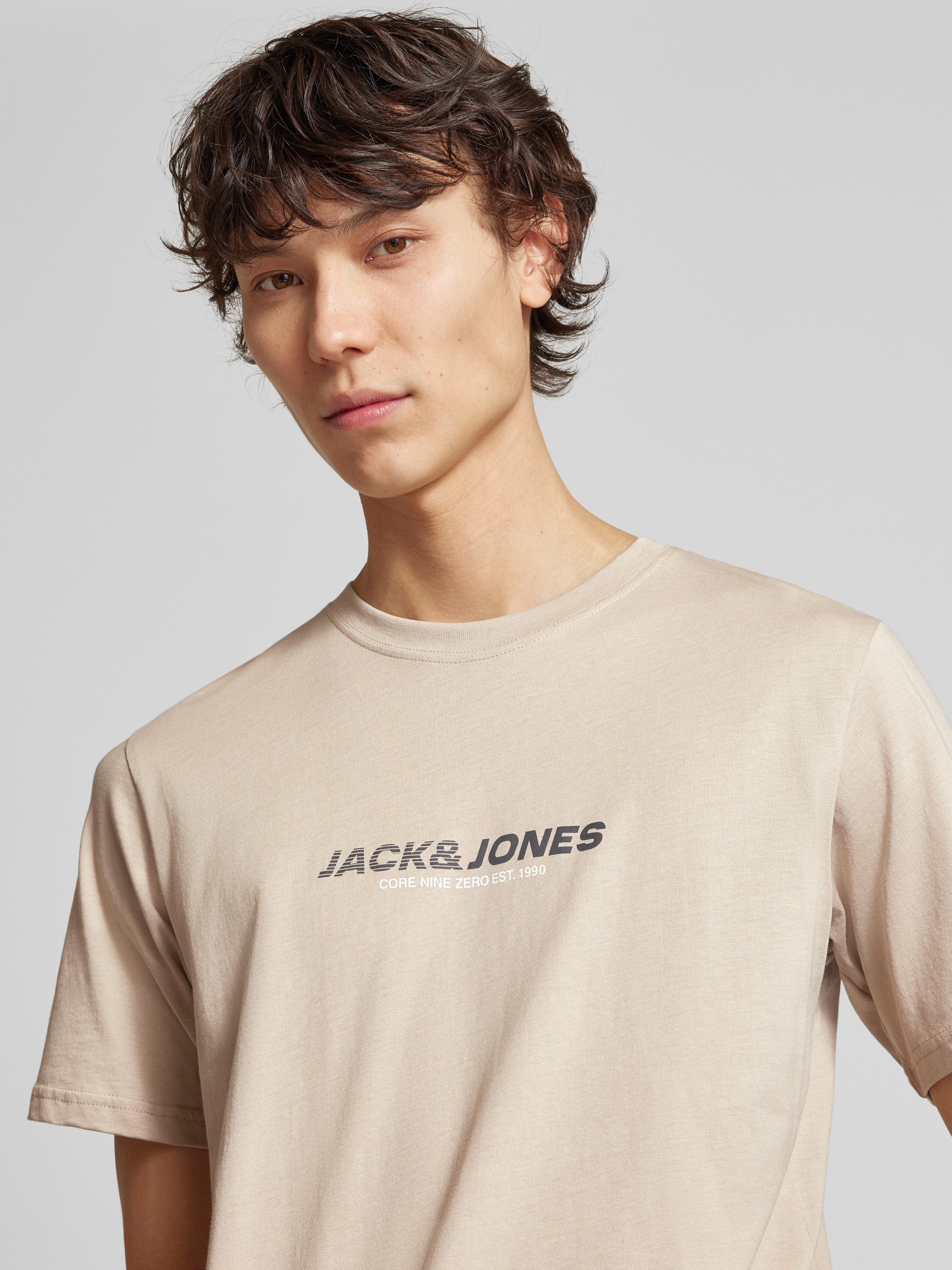 Jack & JonesT-Shirt mit Label-Print Modell 'TARMAC' in beige