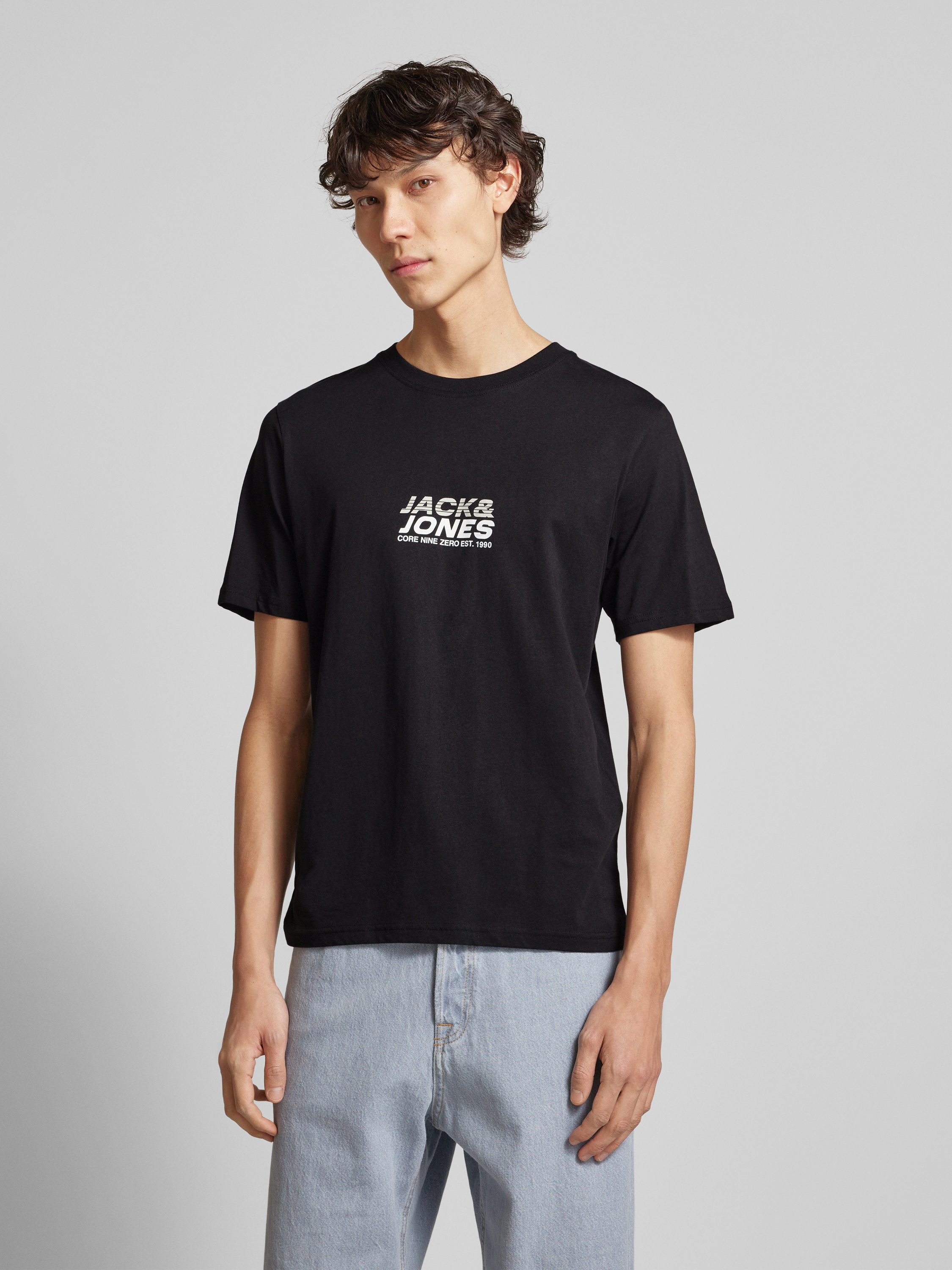 Das T-Shirt mit Label-Print Modell 'TARMAC' von JACK & JONES punktet mit reiner Baumwolle, die für ein angenehmes Tragegefühl sorgt. Der gerade Schnitt und der Rundhalsausschnitt verleihen ihm eine zeitlose Note, während der auffällige Print modische Akzente setzt. Ideal für entspannte Alltagslooks.