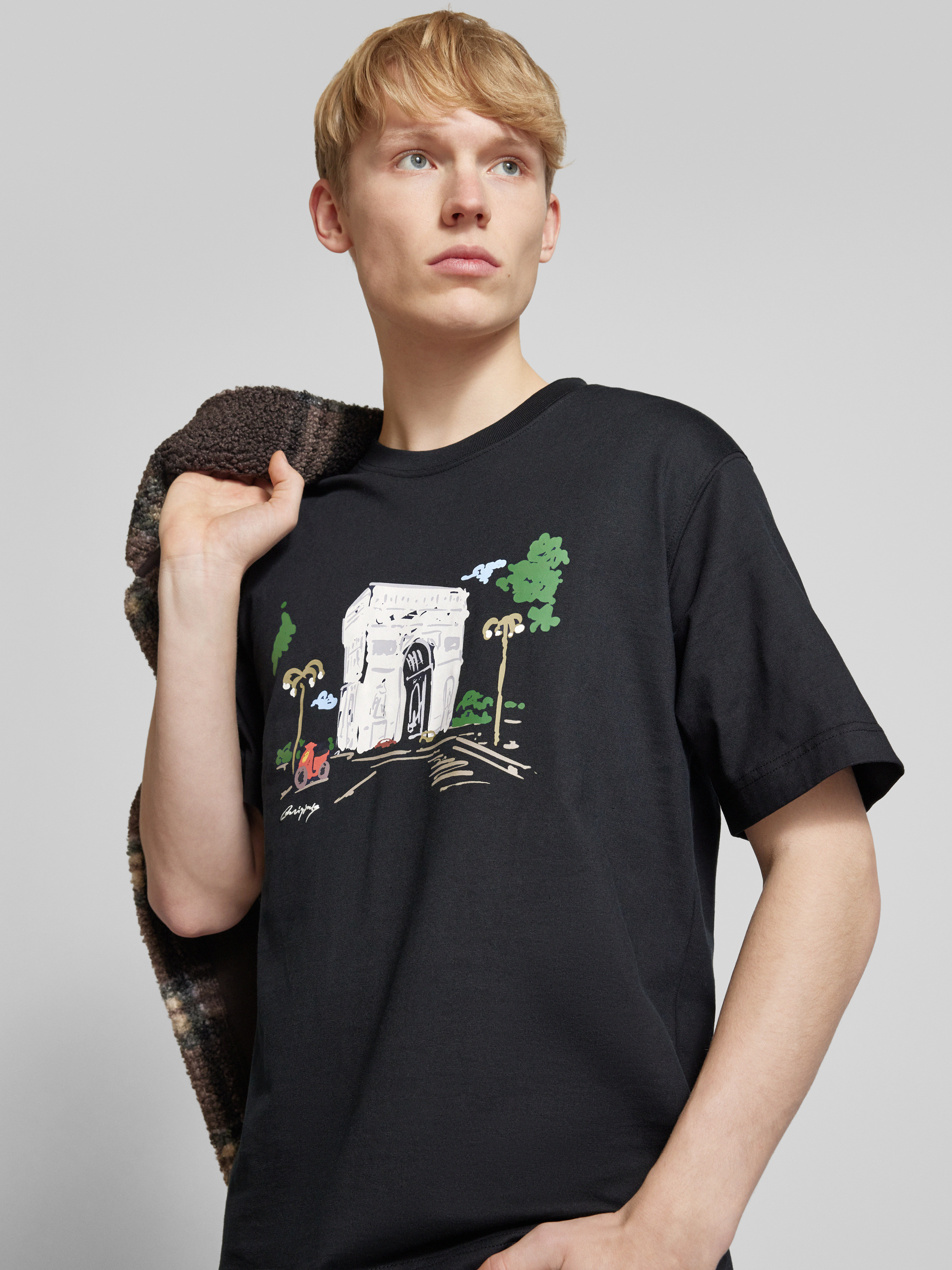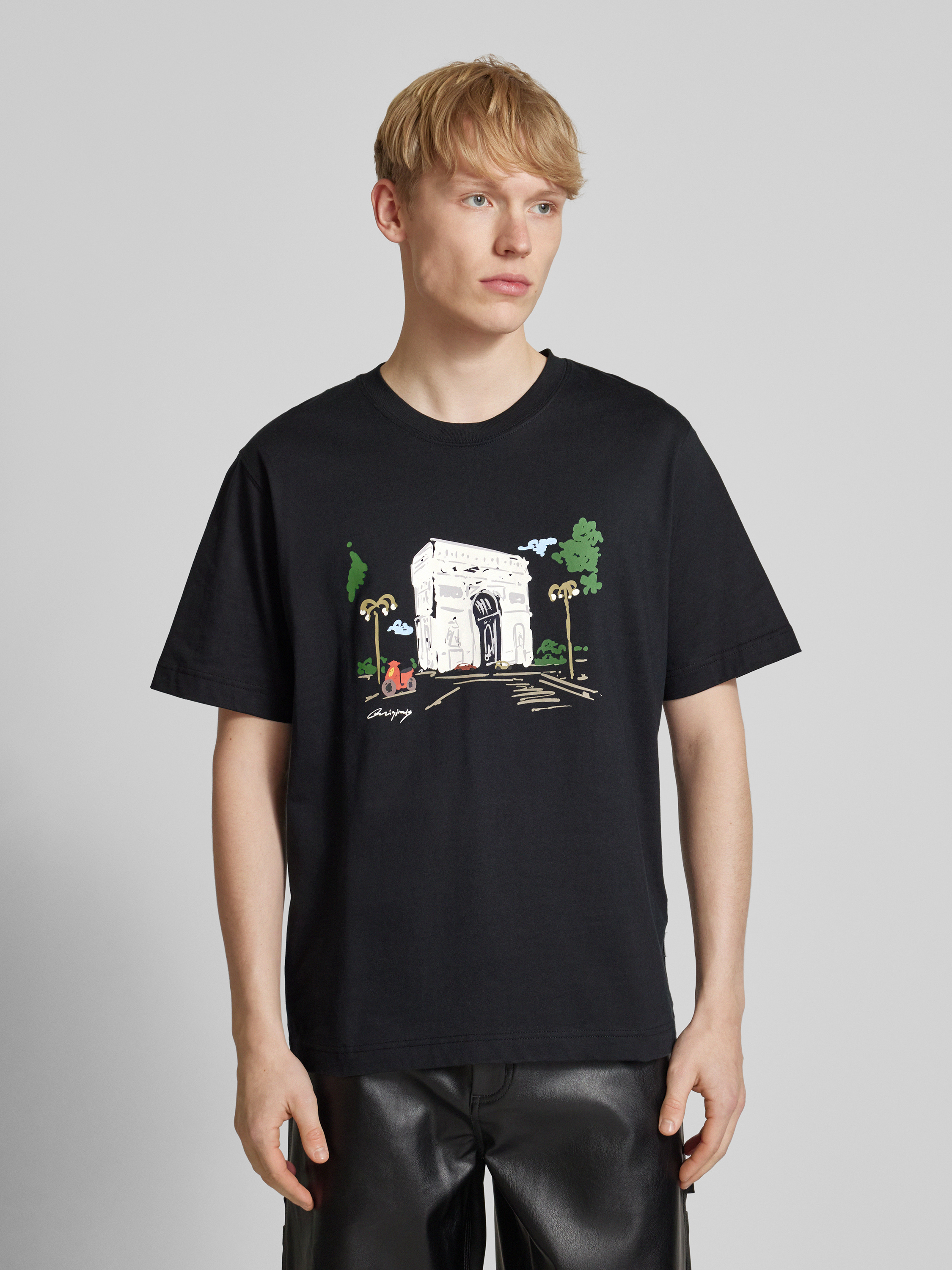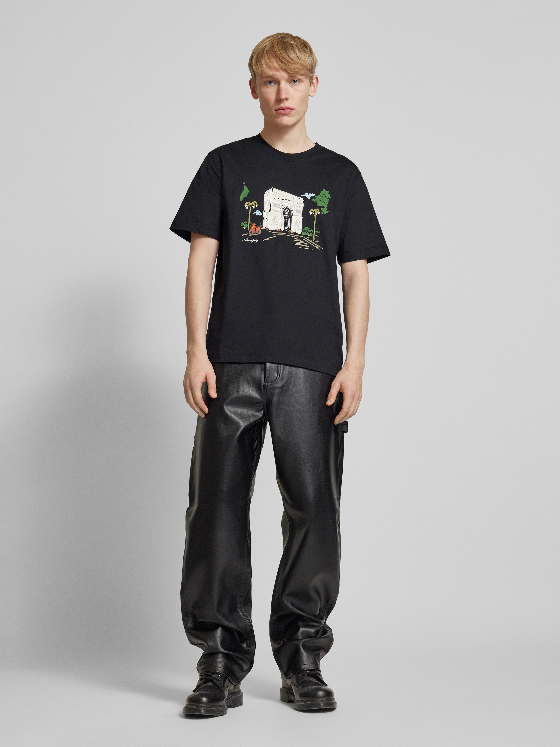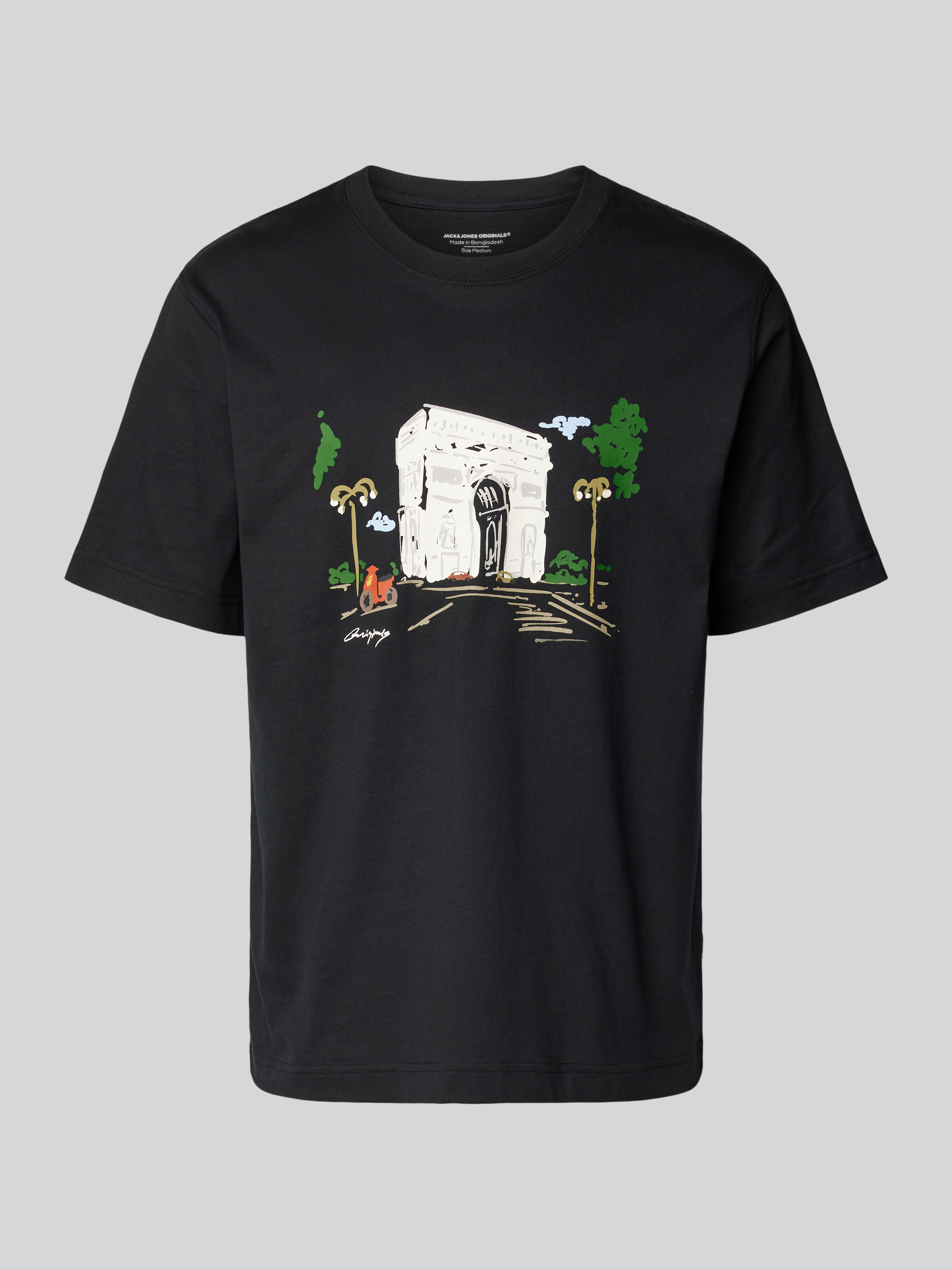 Das T-Shirt von JACK & JONES besteht aus reiner Baumwolle und bietet mit seinem Regular Fit eine angenehme Passform. Der gerippte Rundhalsausschnitt sorgt für zusätzlichen Komfort, während der auffällige Motiv-Print dem Outfit eine individuelle Note verleiht. Ideal für entspannte Alltagslooks.