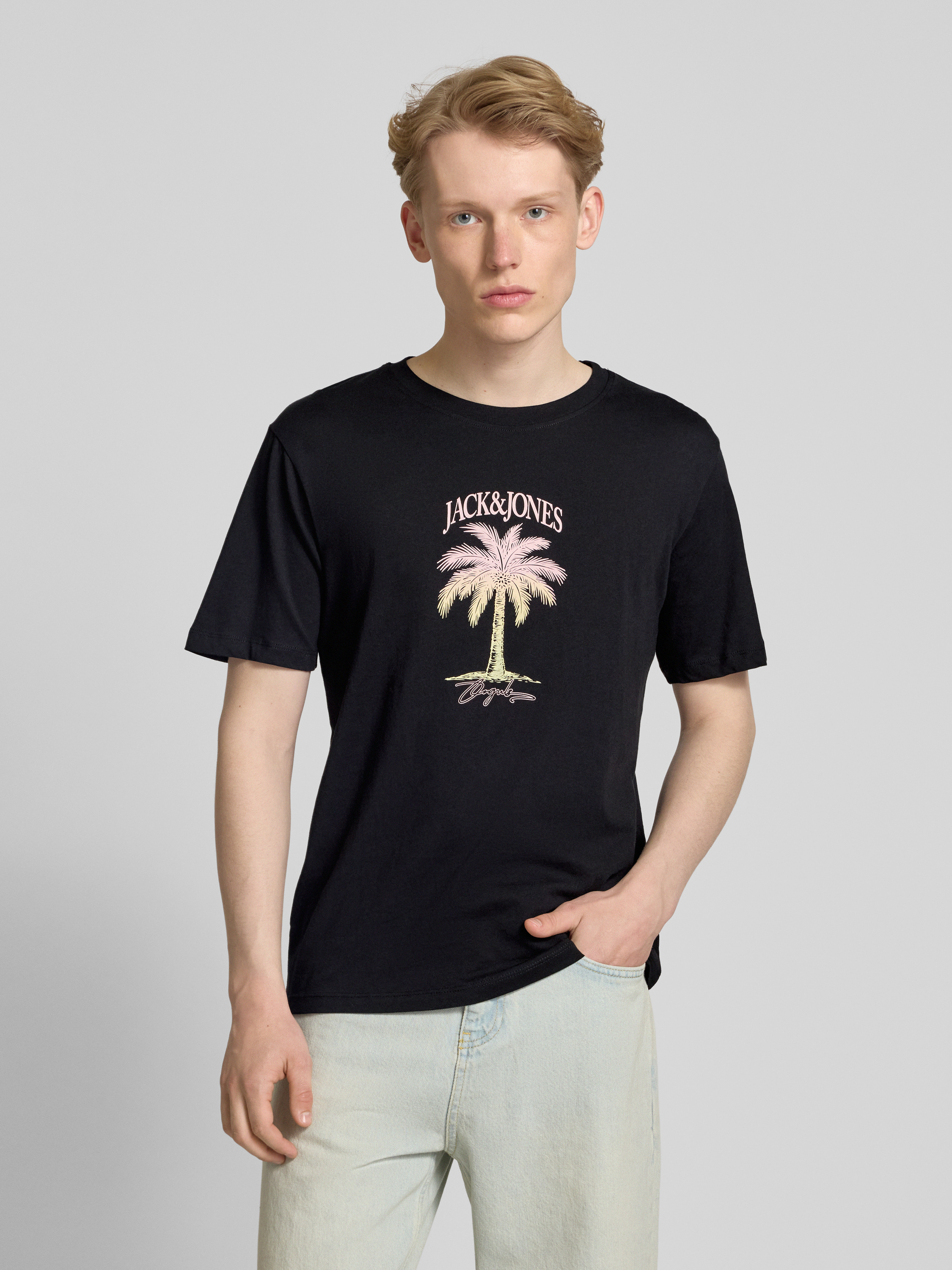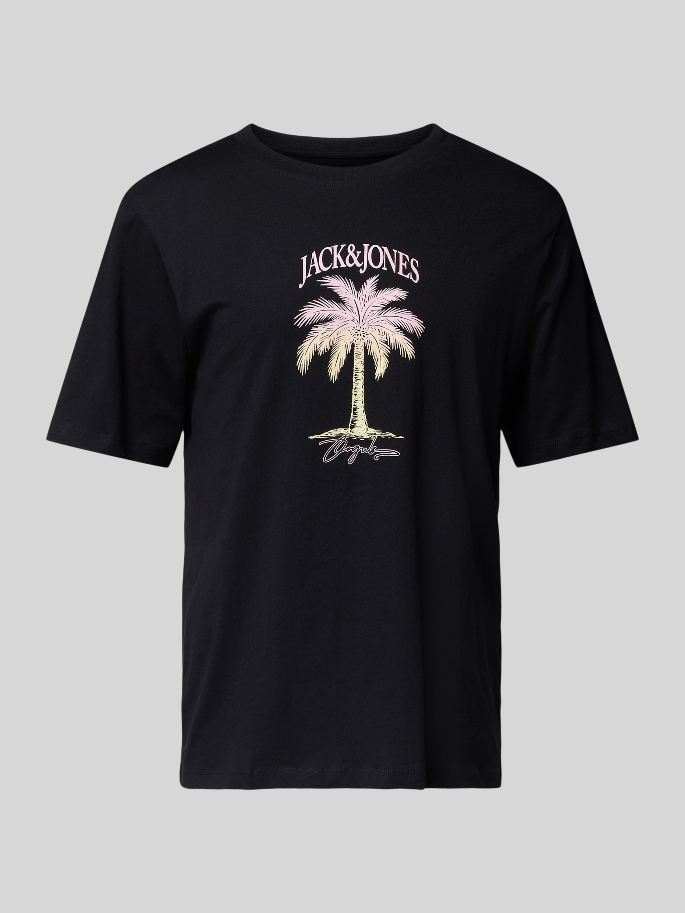 Das T-Shirt 'ALMERIA' von Jack & Jones verbindet lässigen Stil mit hohem Tragekomfort. Gefertigt aus reiner Baumwolle, bietet es dank Regular Fit eine bequeme Passform. Der auffällige Motiv-Print und der gerippte Rundhalsausschnitt verleihen dem Design eine moderne Note.