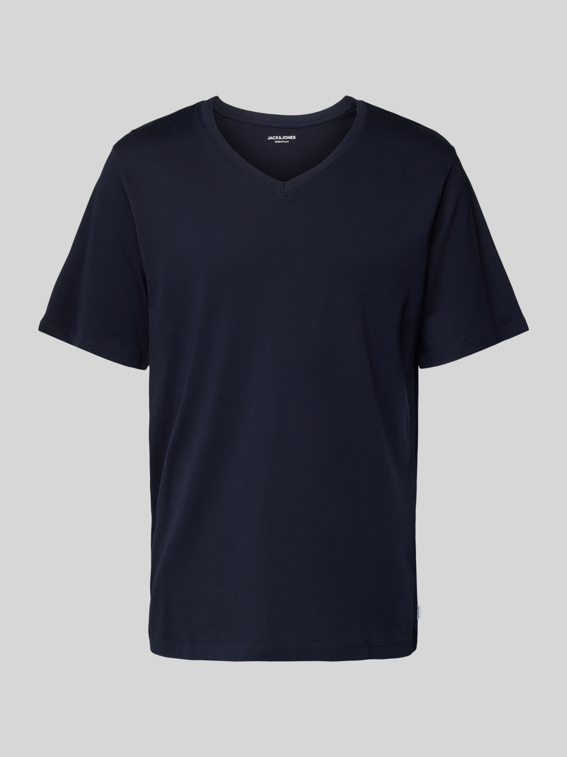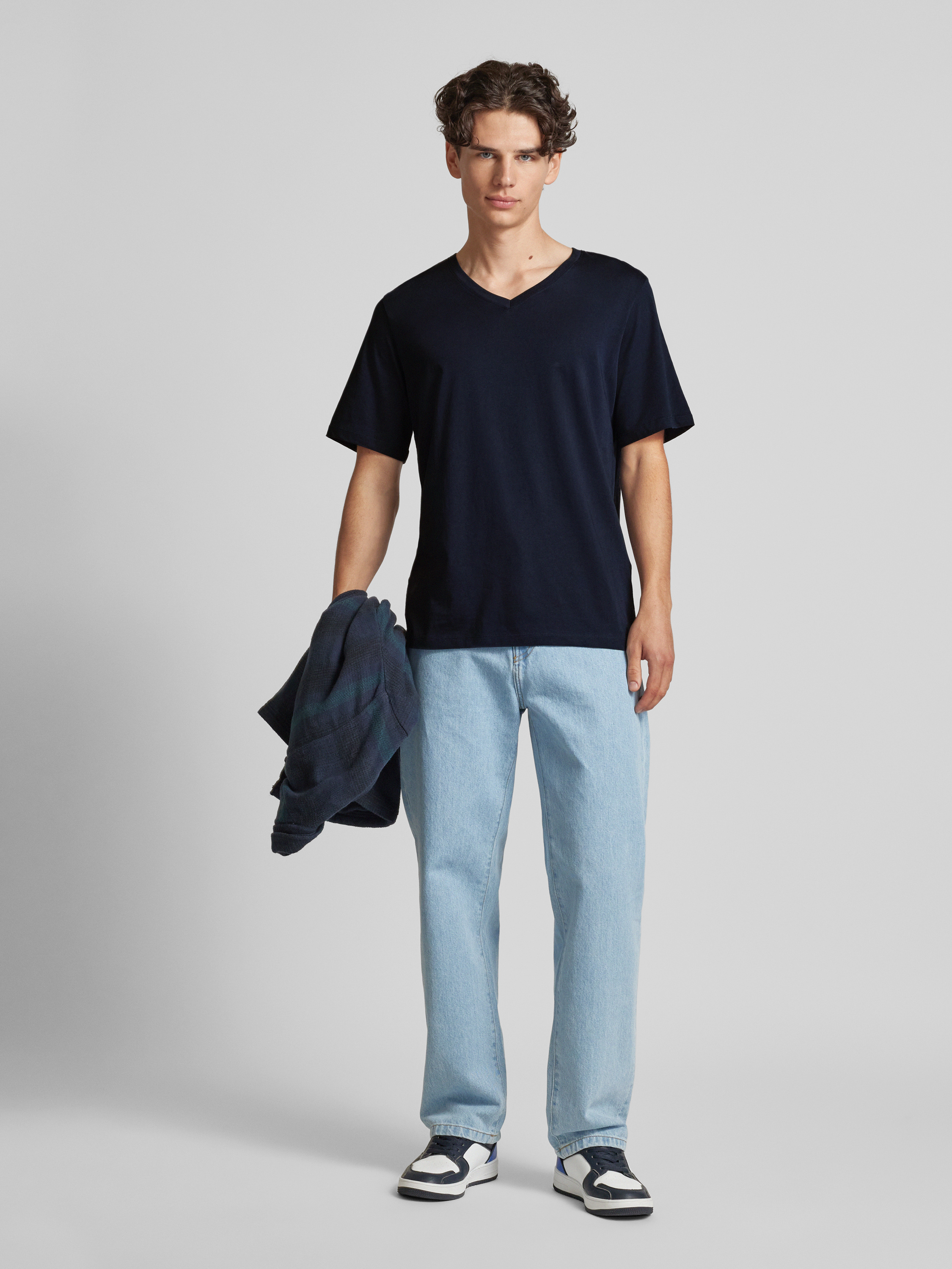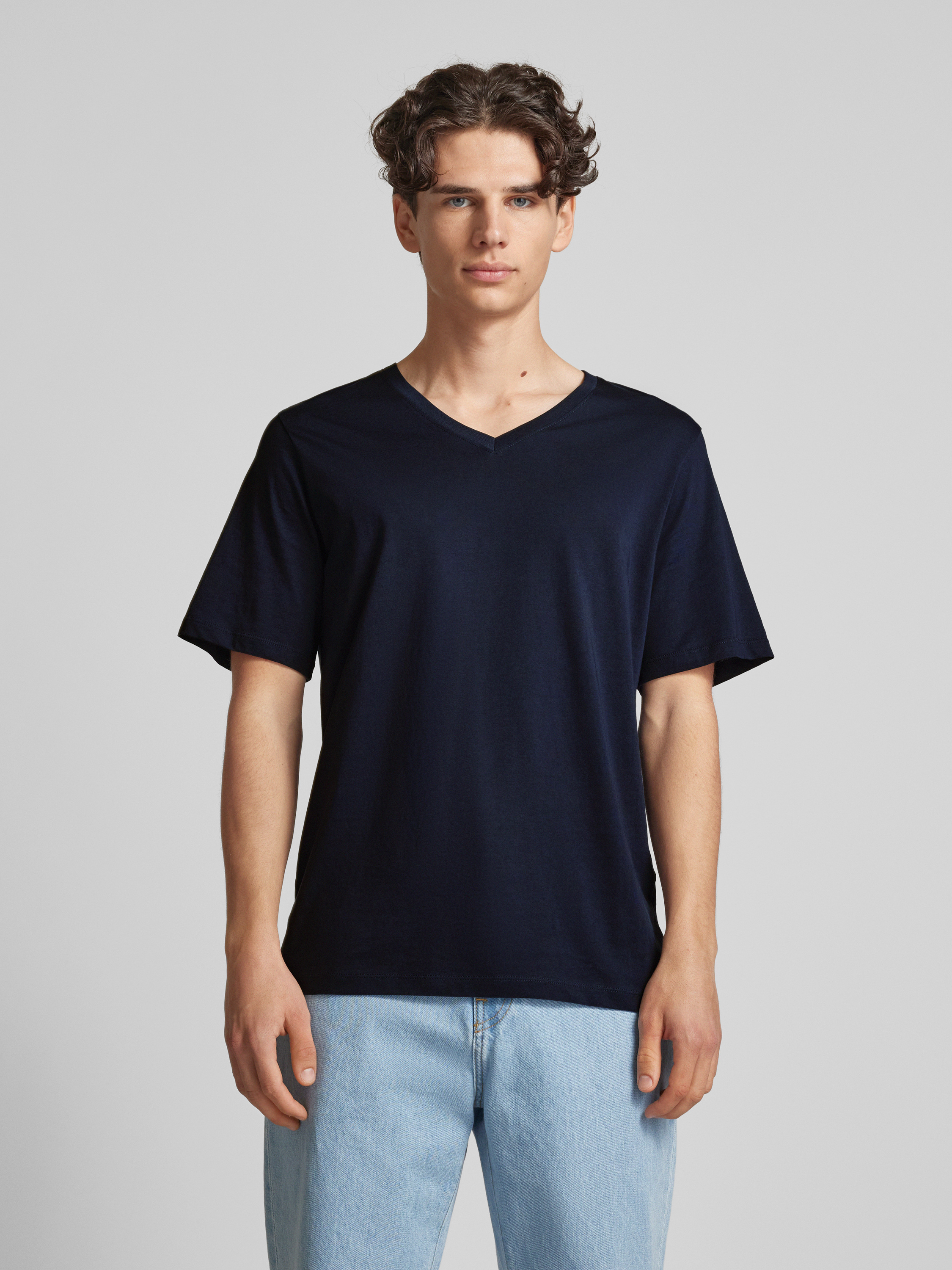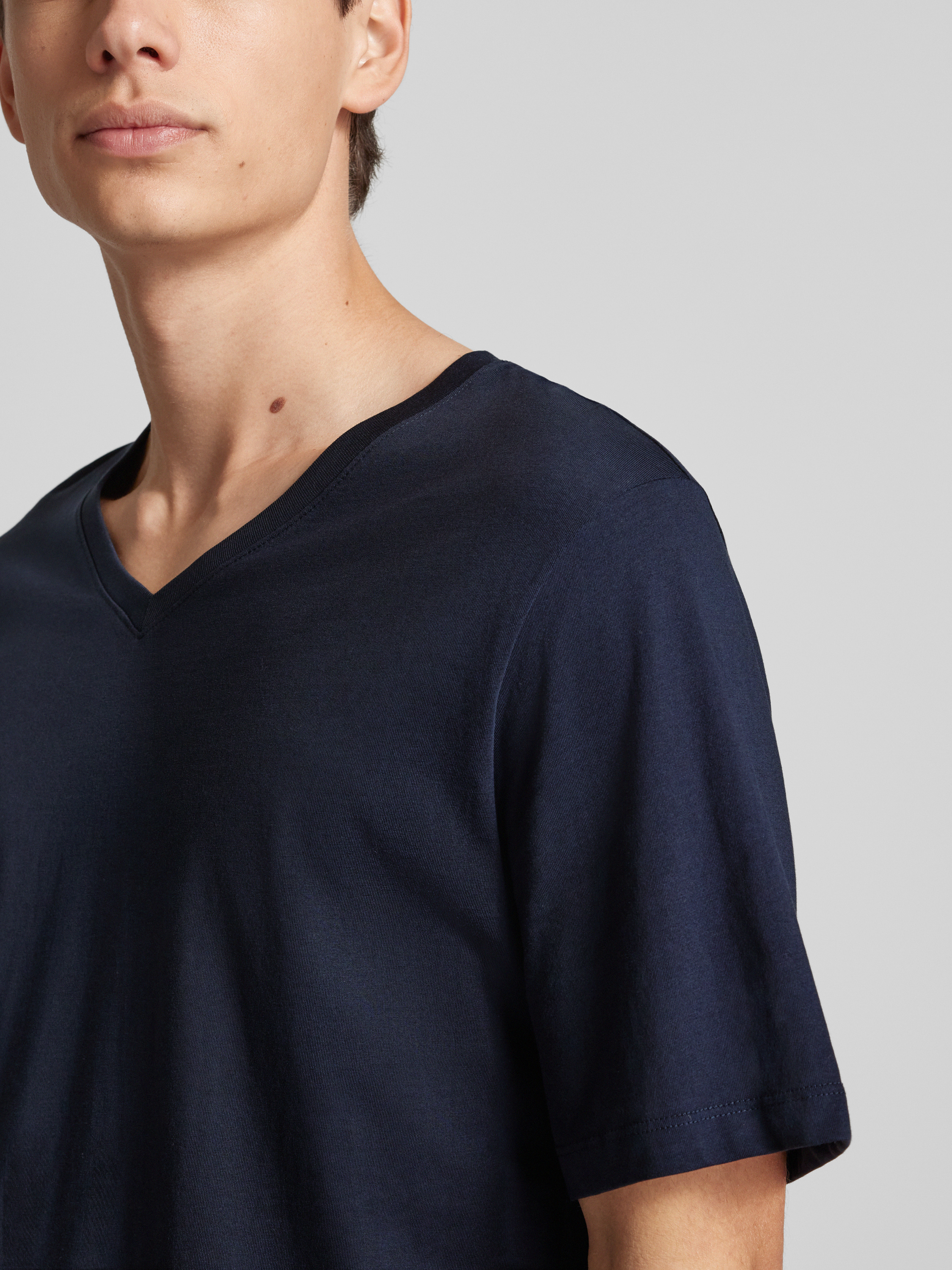 T-Shirt mit V-Ausschnitt Modell 'ORGANIC BASIC' in dunkelblau