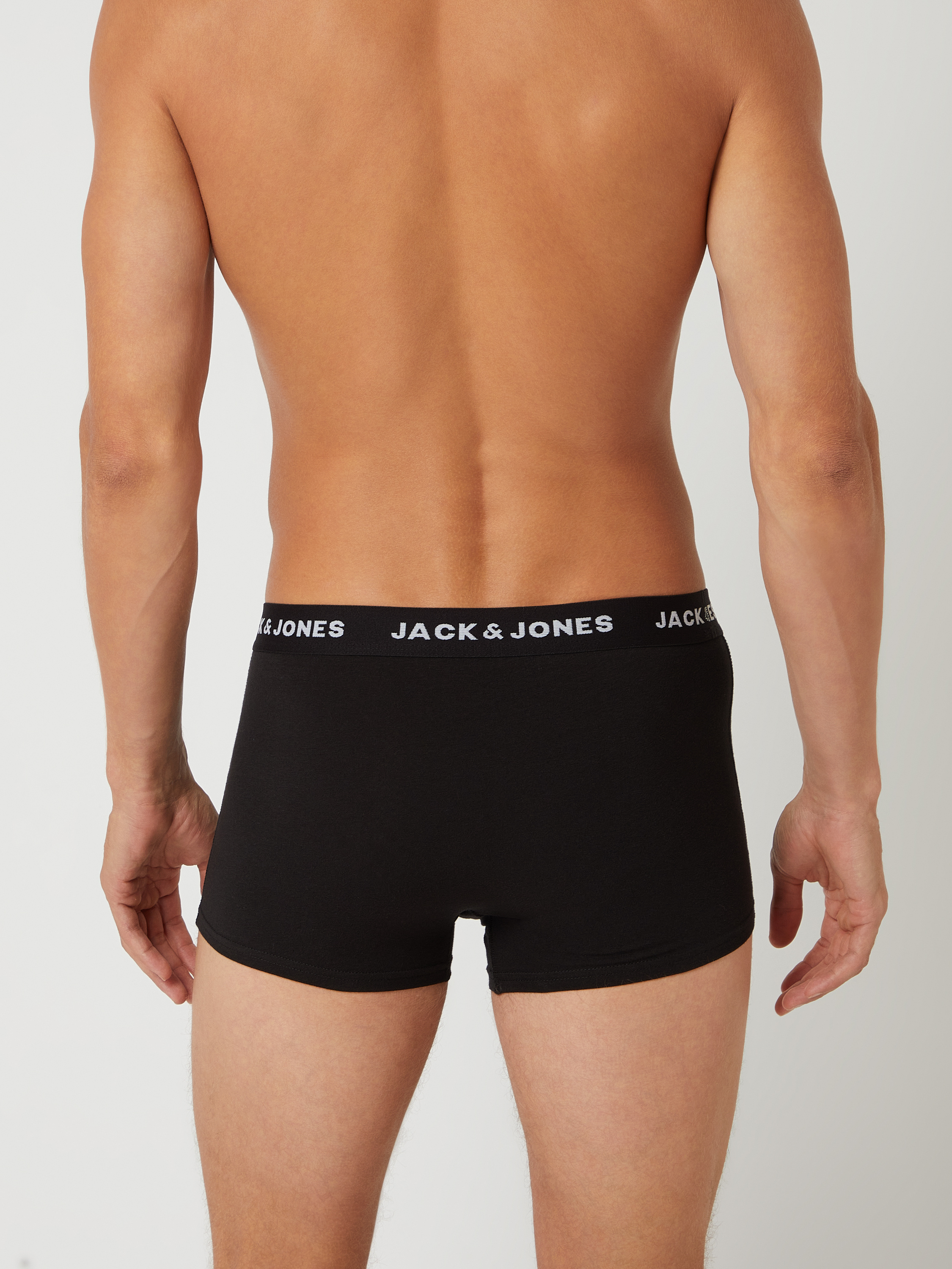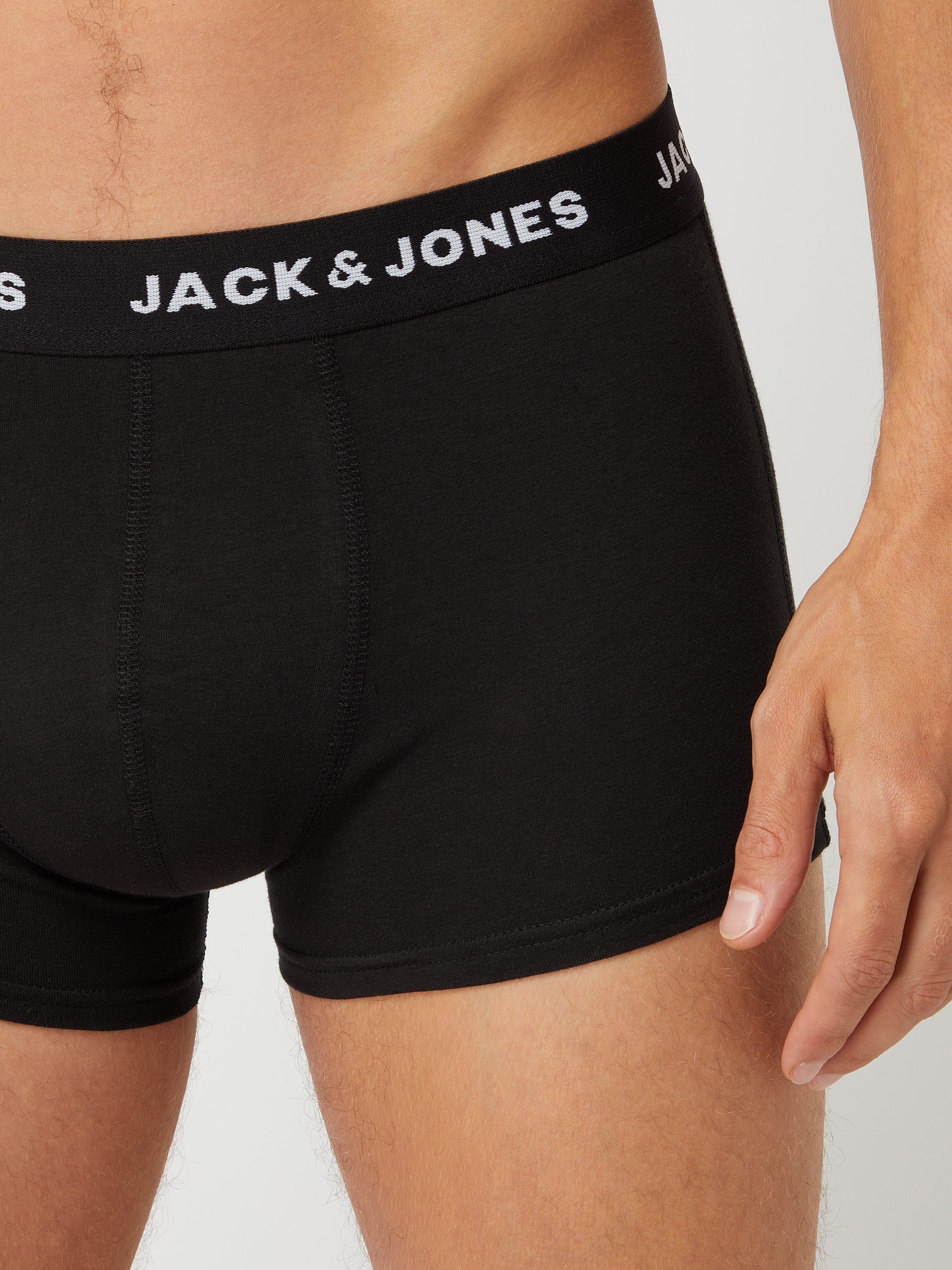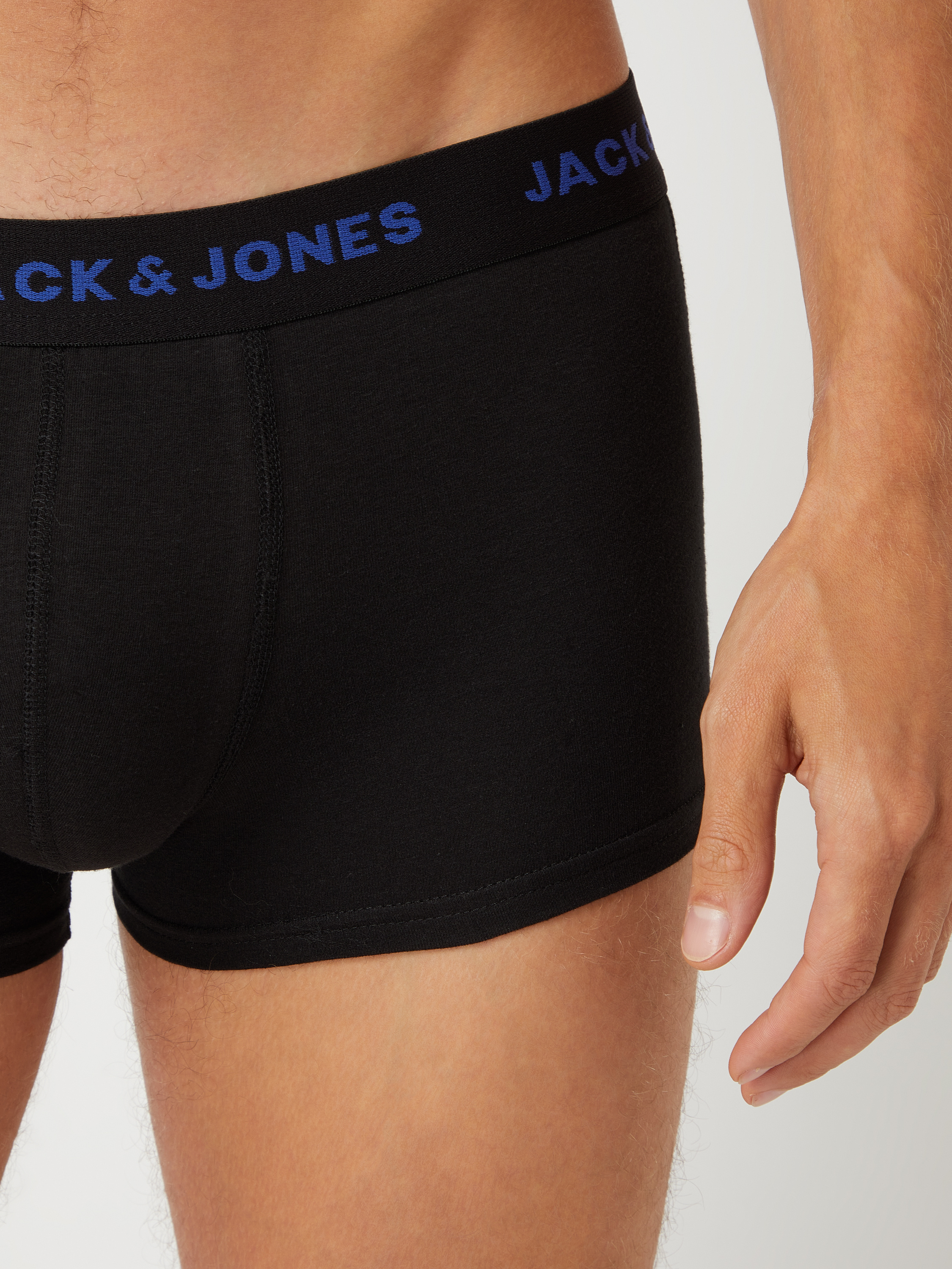 Der Trunks-Satz von JACK & JONES überzeugt mit einem Baumwoll-Elasthan-Mix, der für eine angenehme Passform sorgt. Der schmale Schnitt und der elastische Logo-Bund bieten Komfort für den Alltag. Praktisch im 7er-Pack erhältlich, eignet er sich ideal für eine Woche voller Bewegungsfreiheit.