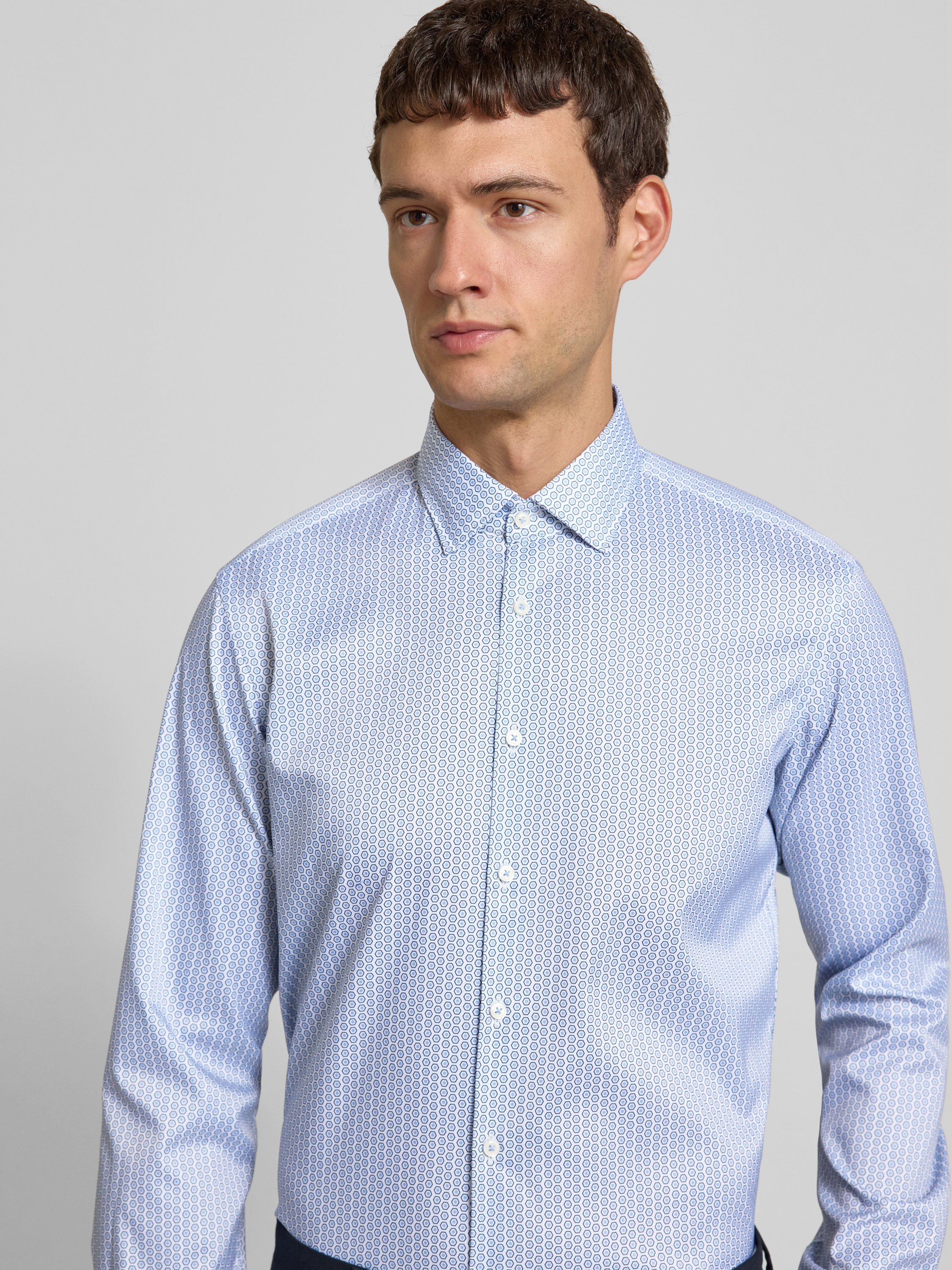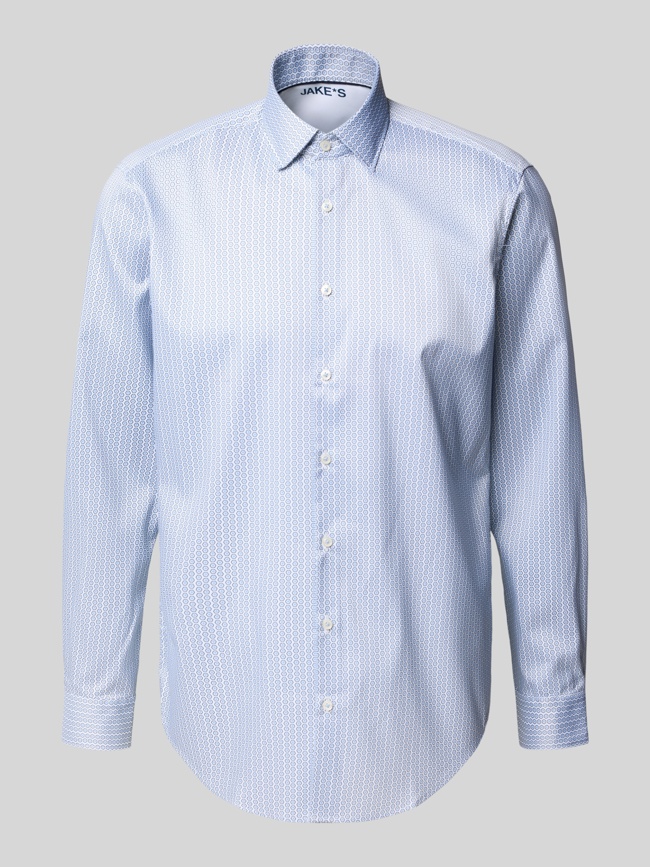 Das Herrenhemd von Jake*s im Regular Fit schmiegt sich dank seines Material-Mixes mit Stretch-Anteil angenehm an den Körper und bleibt dabei formtreu. Durch den Kentkragen erhält das Regular Fit Business-Hemd mit Kentkragen einen klassischen Akzent, der vielseitig kombinierbar wirkt. Sportmanschetten sorgen für einen gepflegten Abschluss.