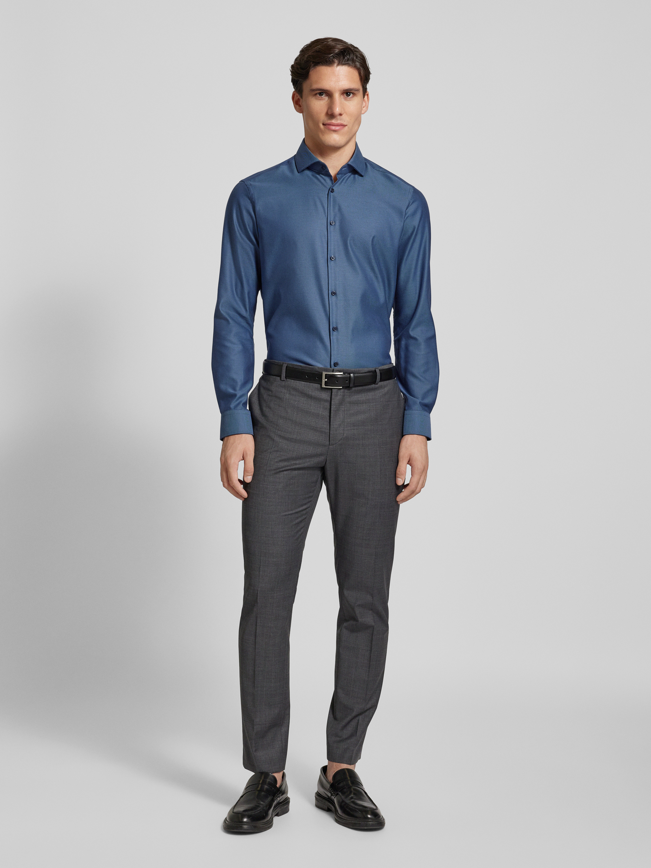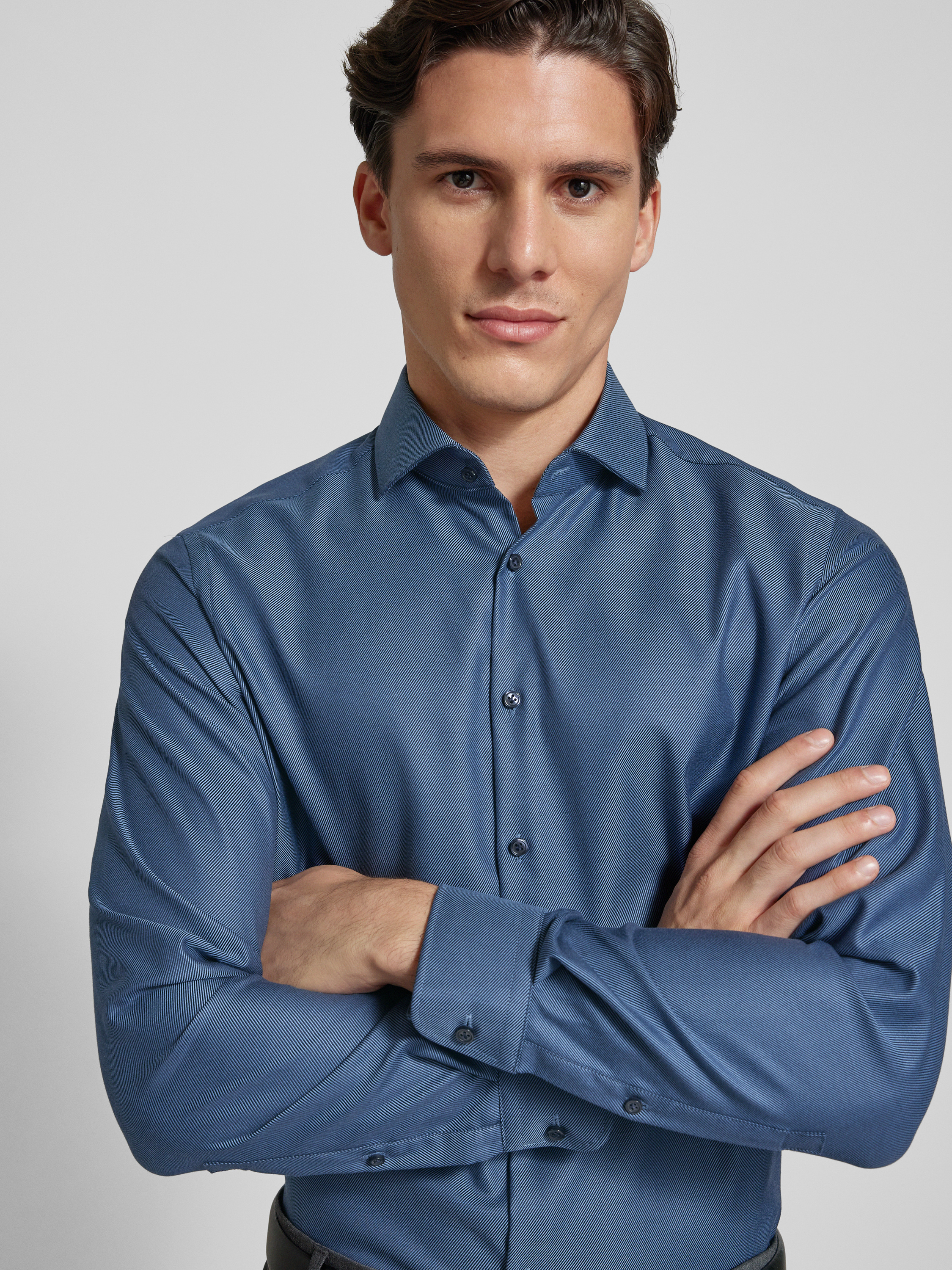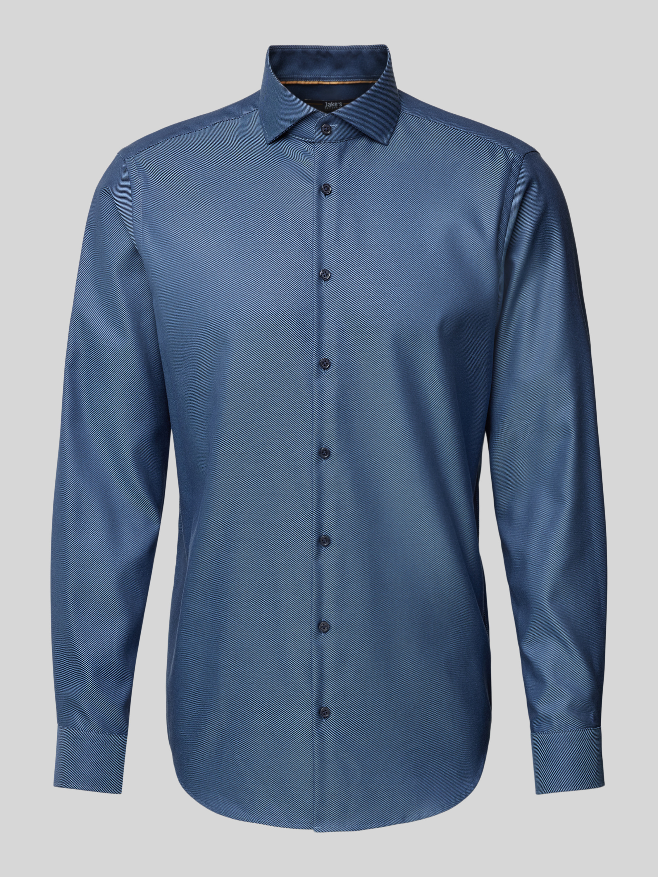 Das Regular Fit Businesshemd von Jake*s zeichnet sich durch seine erstklassige Verarbeitung und das edel veredelte Two Ply aus, das aus reiner Baumwolle besteht. Mit seinem eleganten Haifischkragen und der durchgehenden Knopfleiste bietet es eine ideale Mischung aus Komfort und Stil. Dank der Easycare-Eigenschaft bleibt es den ganzen Tag über frisch und gepflegt.