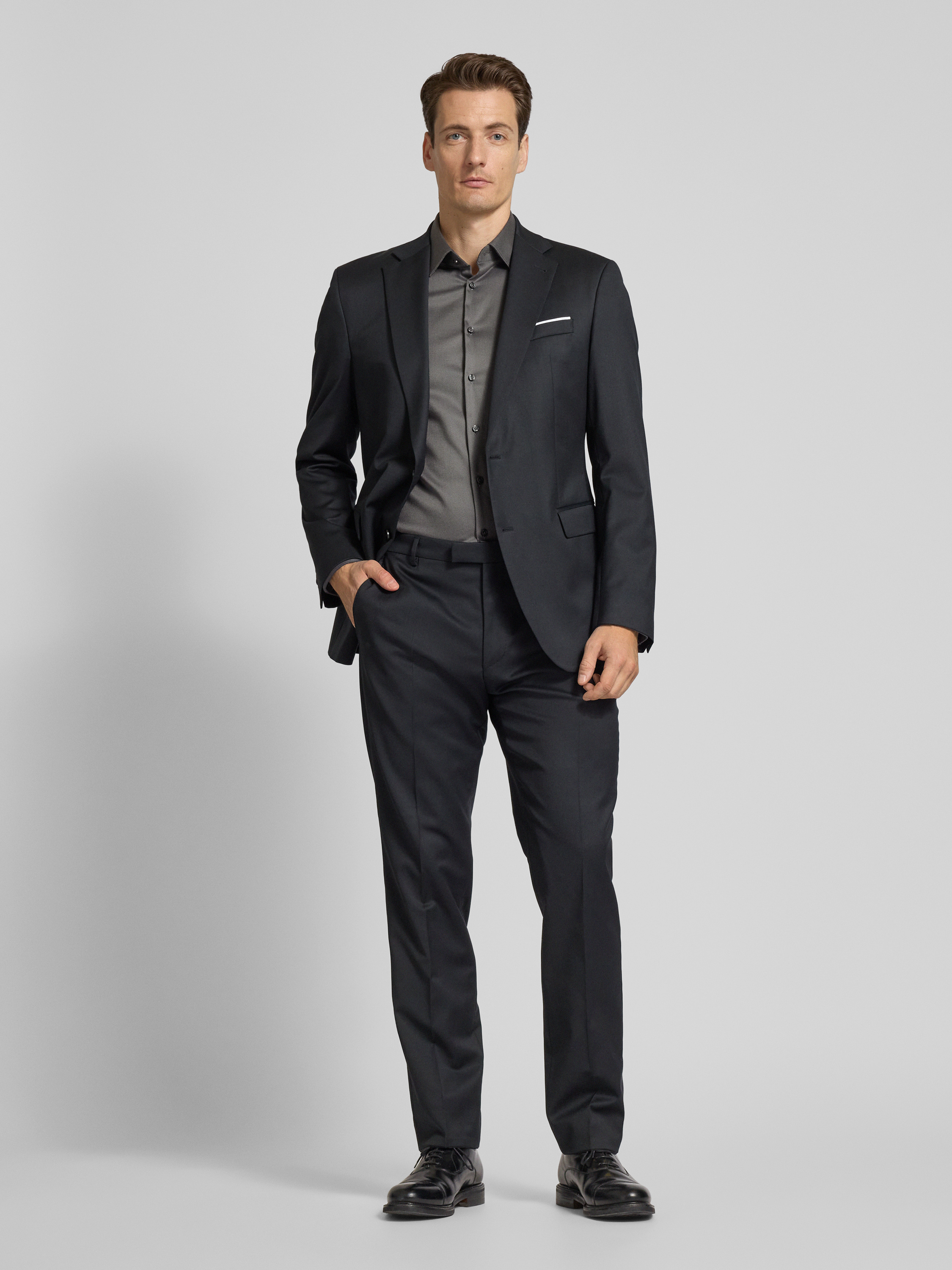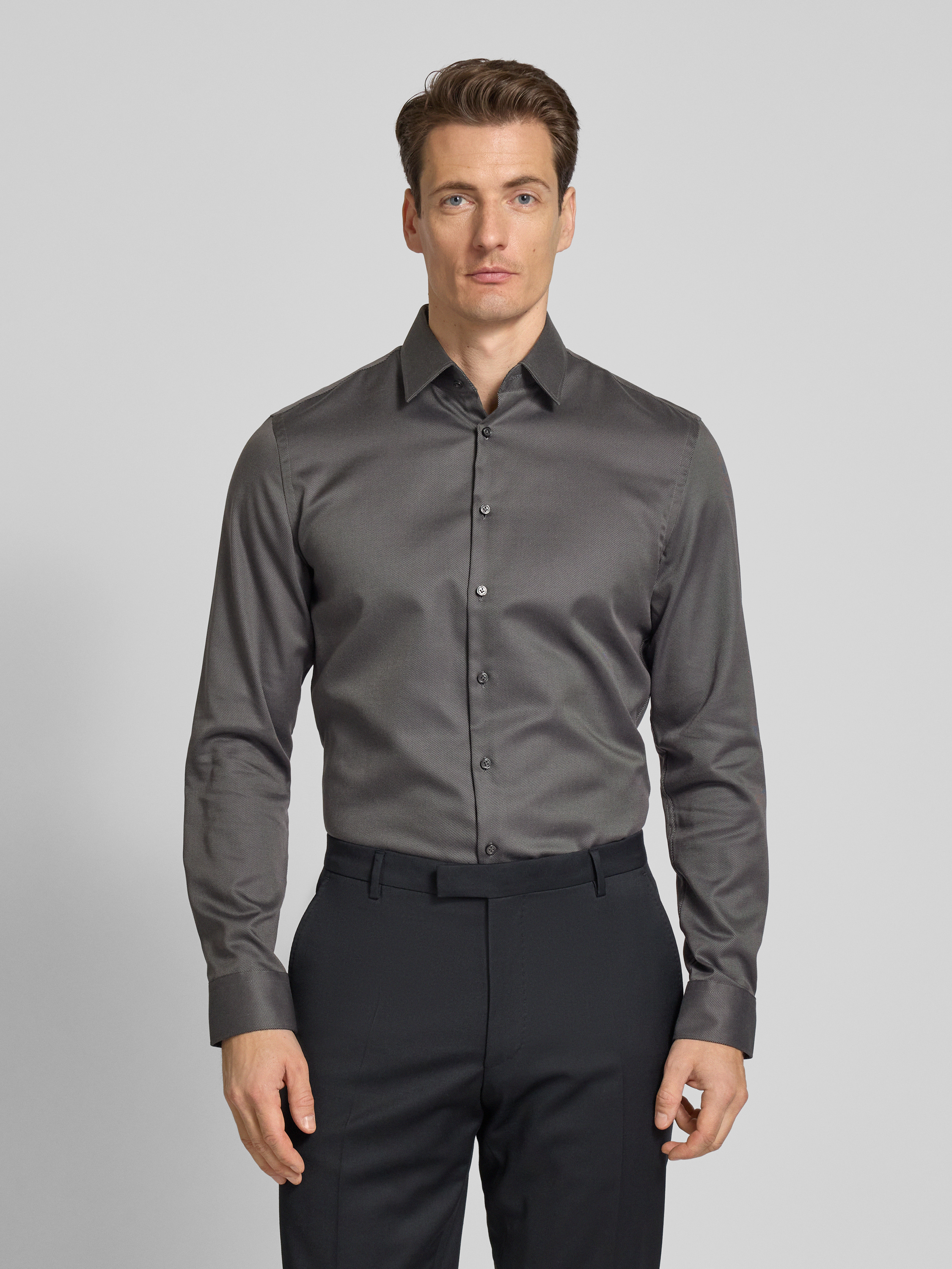 Jake*sRegular Fit Business-Hemd aus Viskose mit Kentkragen in anthrazit
