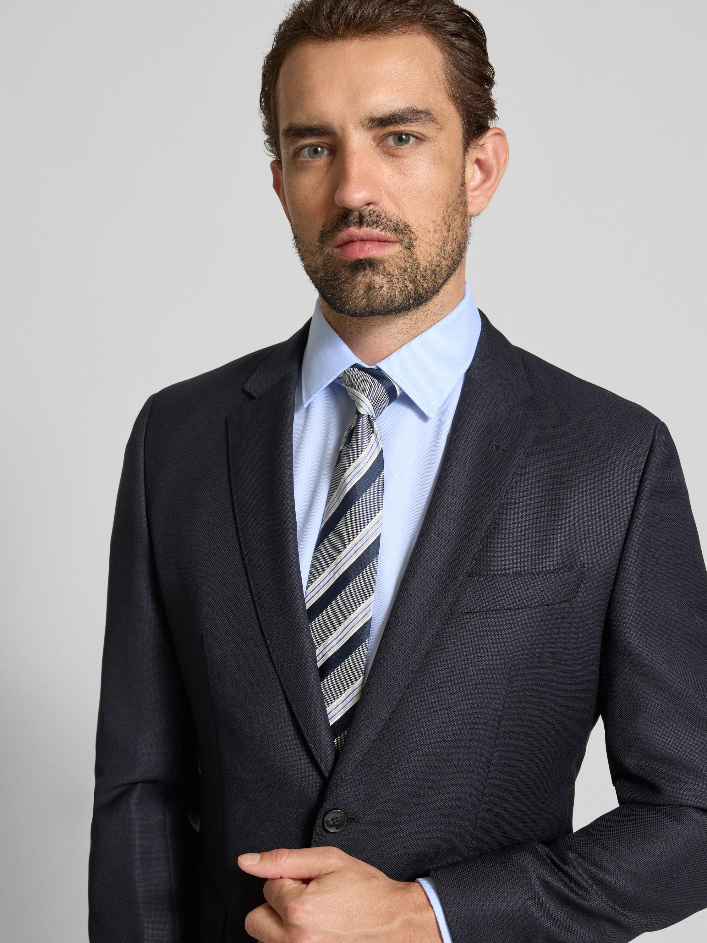 Jake*sSlim Fit Business-Hemd aus reiner Baumwolle mit Kentkragen in bleu