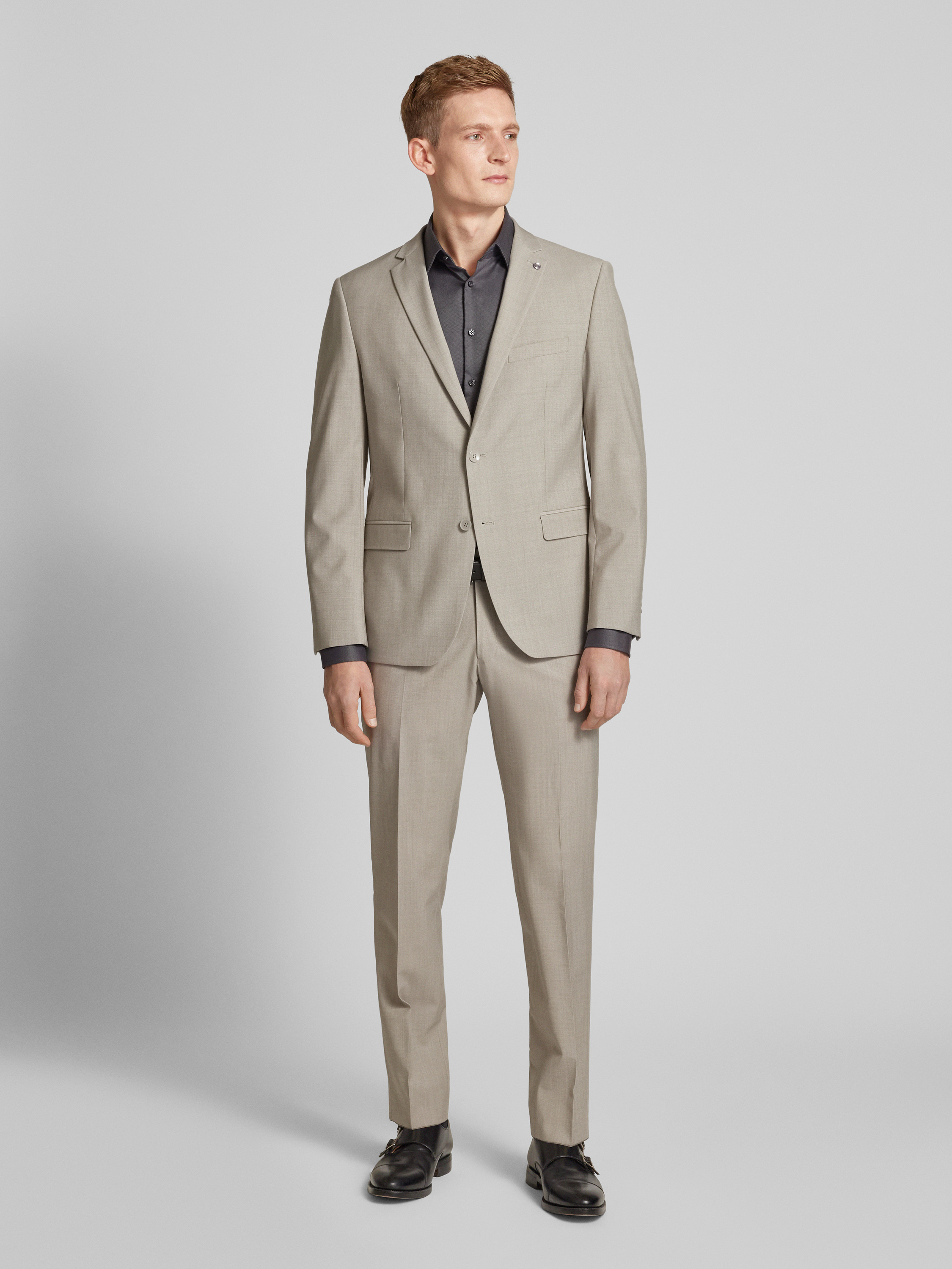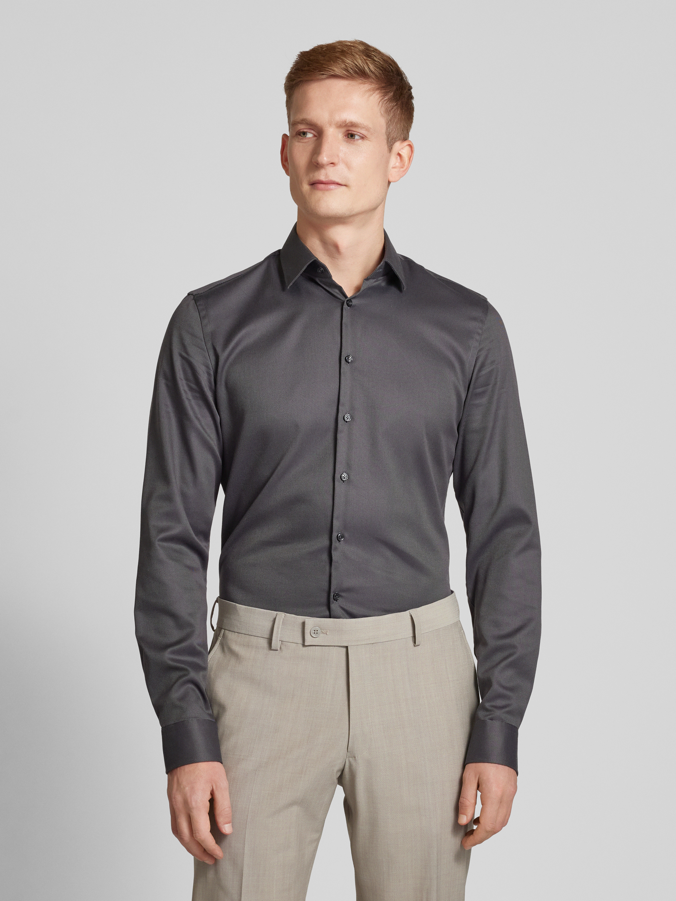 Jake*sSlim Fit Business-Hemd mit extra langem Arm und Kentkragen in anthrazit
