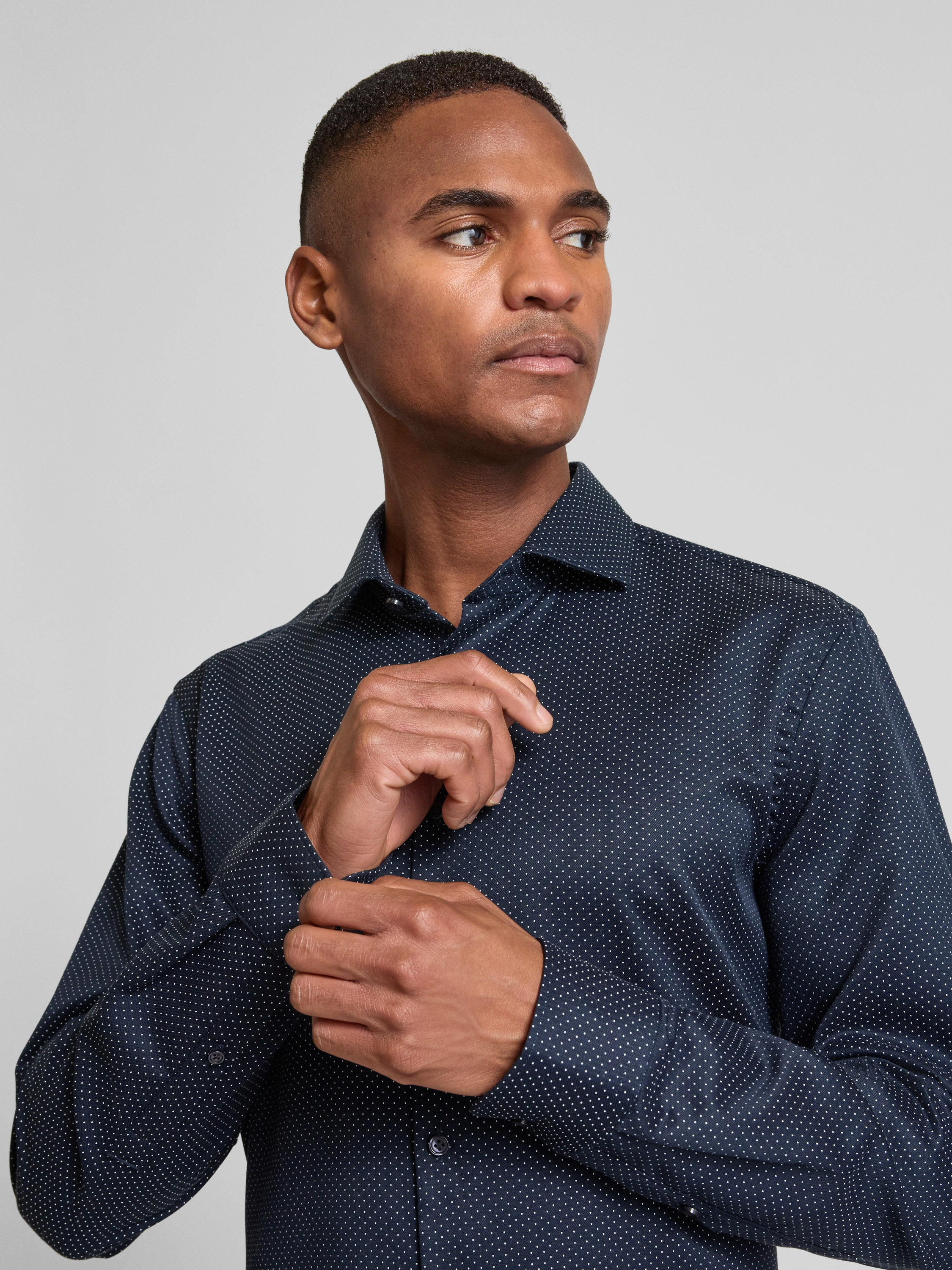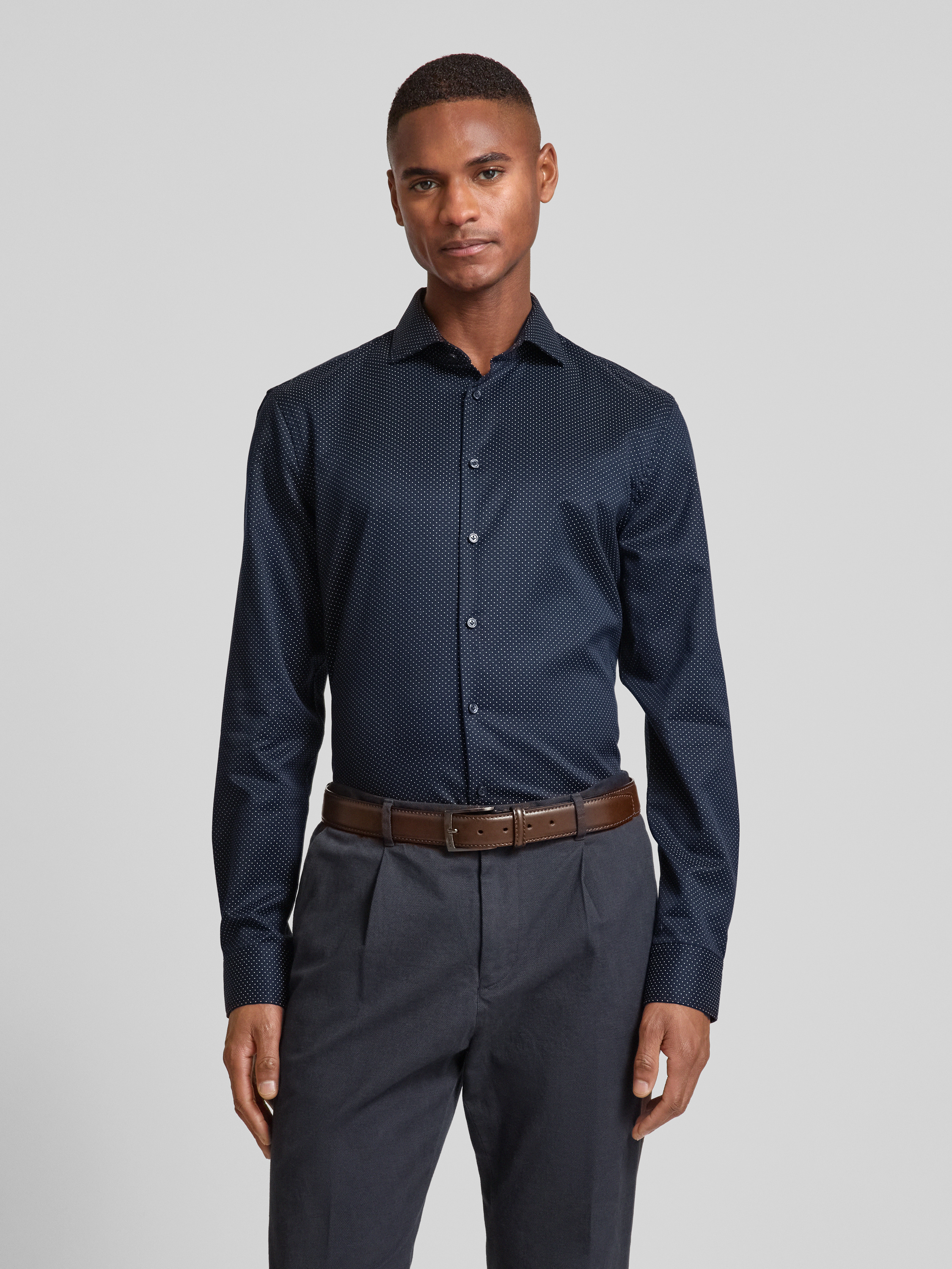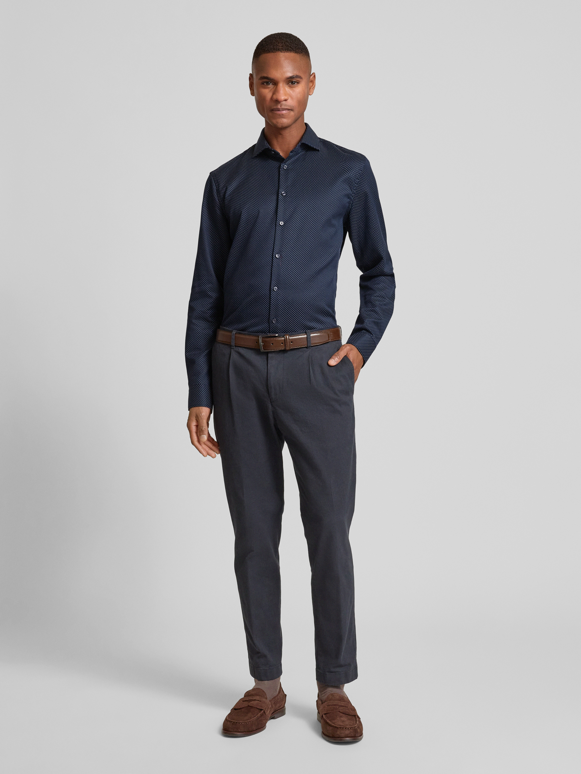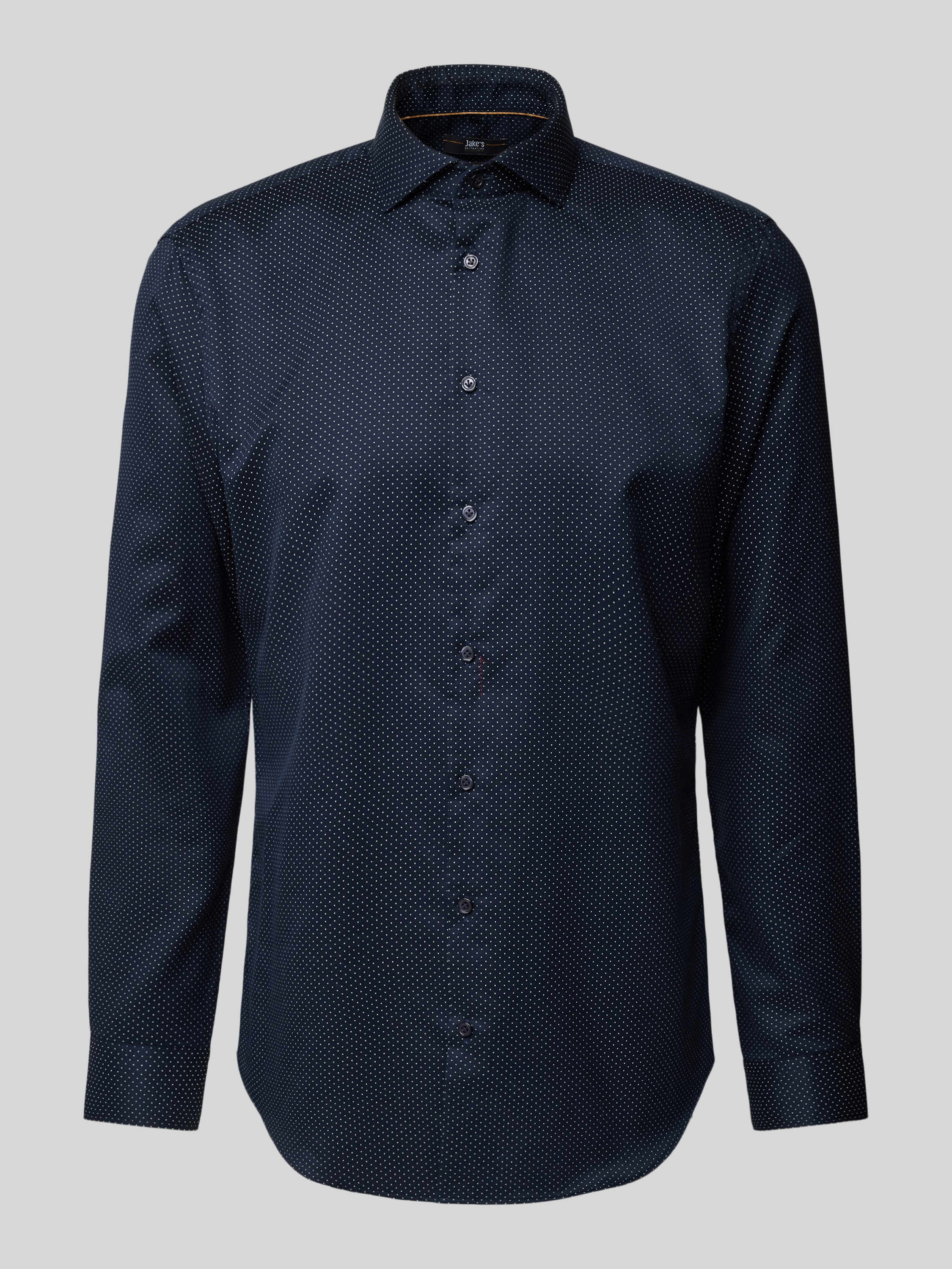 Das Herrenhemd von Jake*s zeichnet sich durch seinen schmalen Schnitt aus, wodurch es sich unter einem Sakko angenehm tragen lässt. Reine Baumwolle sorgt dabei für ein angenehmes Hautgefühl. Mit Kentkragen und Sportmanschetten wirkt das Slim Fit Business-Hemd mit Kentkragen stets gepflegt.