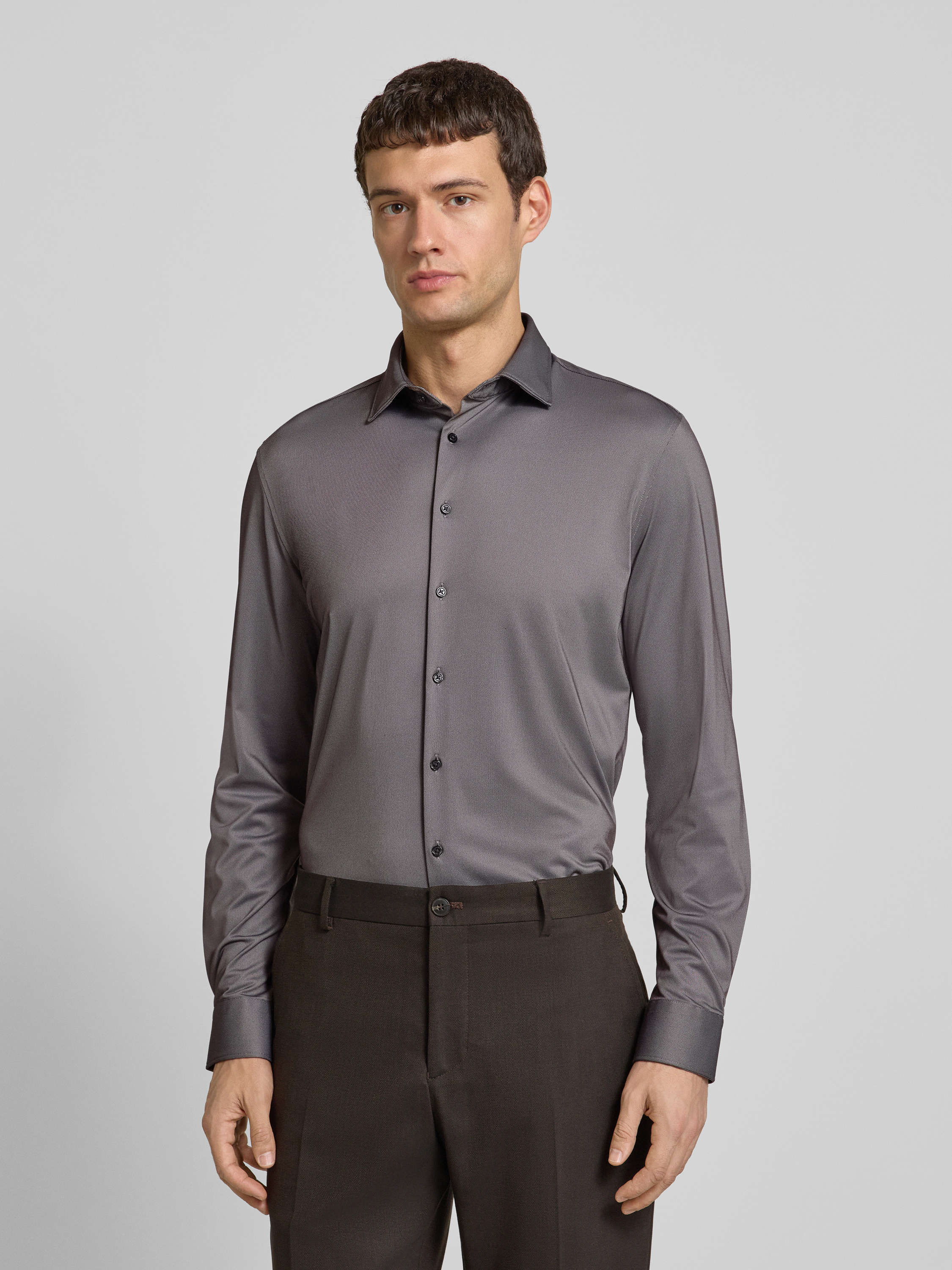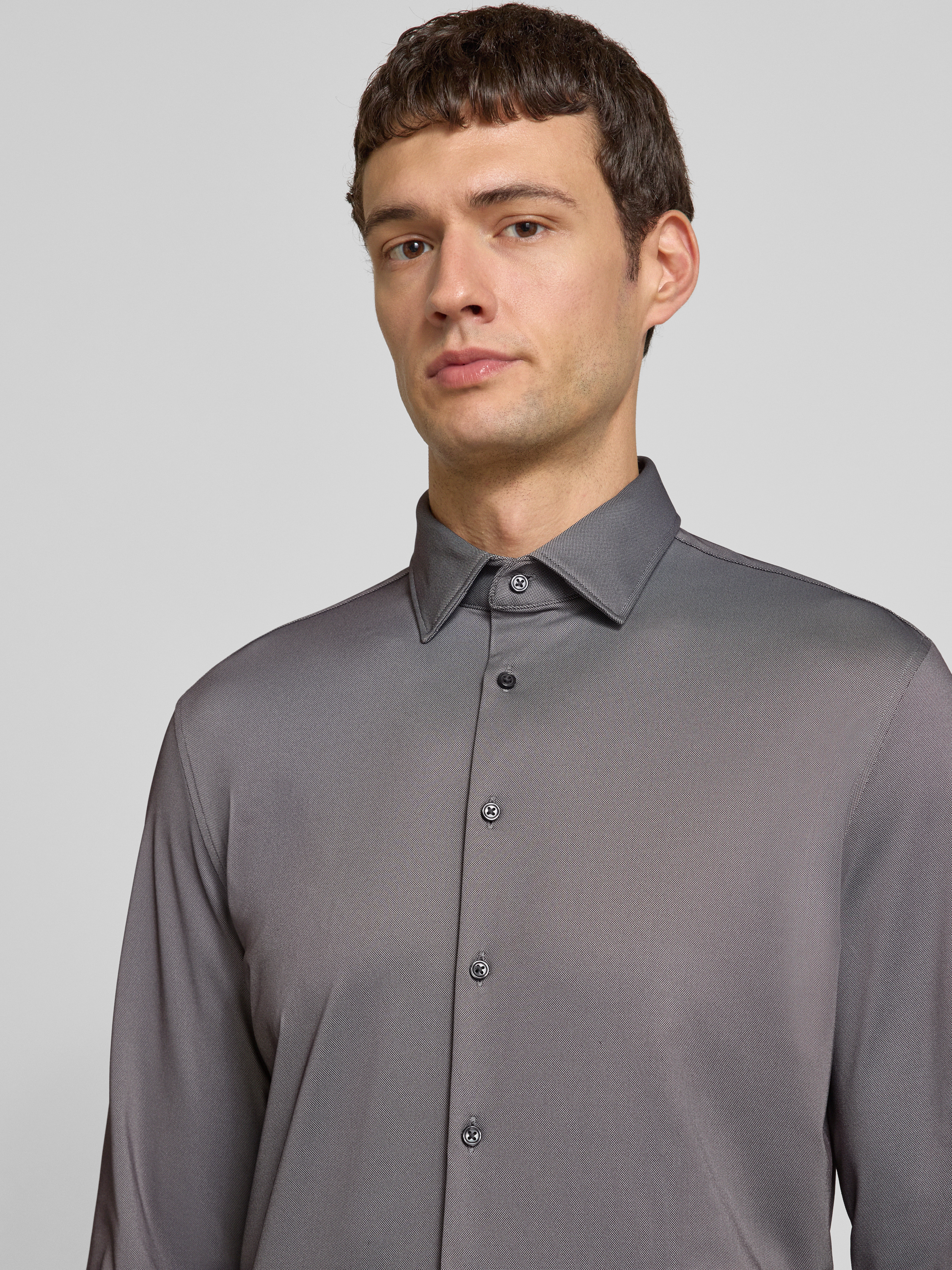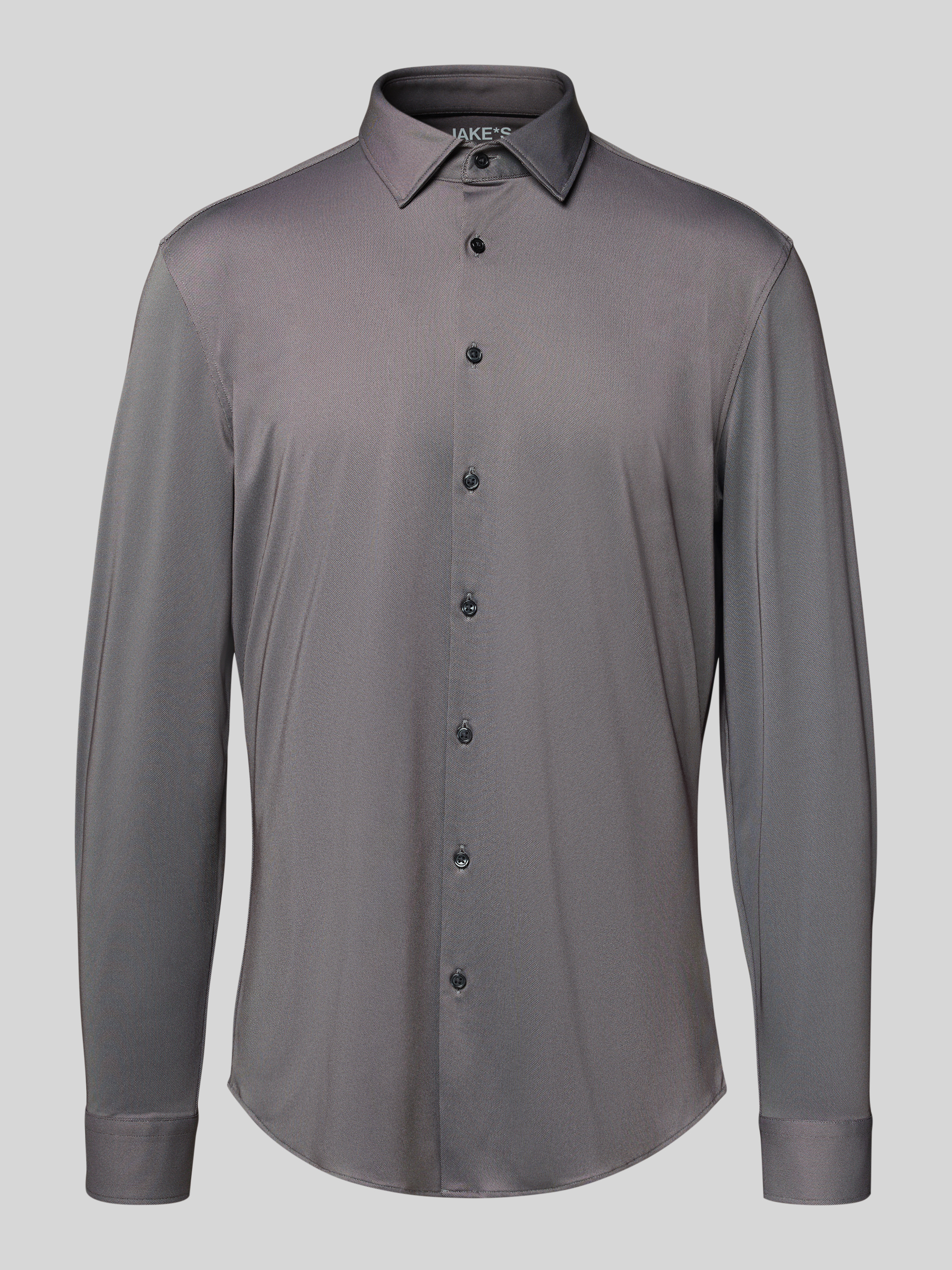 Das Herrenhemd von Jake*s liegt durch seinen schmalen Schnitt angenehm am Körper an und eignet sich ideal für gepflegte Business-Outfits. Der Kentkragen sorgt für eine klassische Note, während der Material-Mix mit Stretch-Anteil Bewegungsfreiheit im Alltag ermöglicht. So bleibt man den ganzen Tag flexibel.