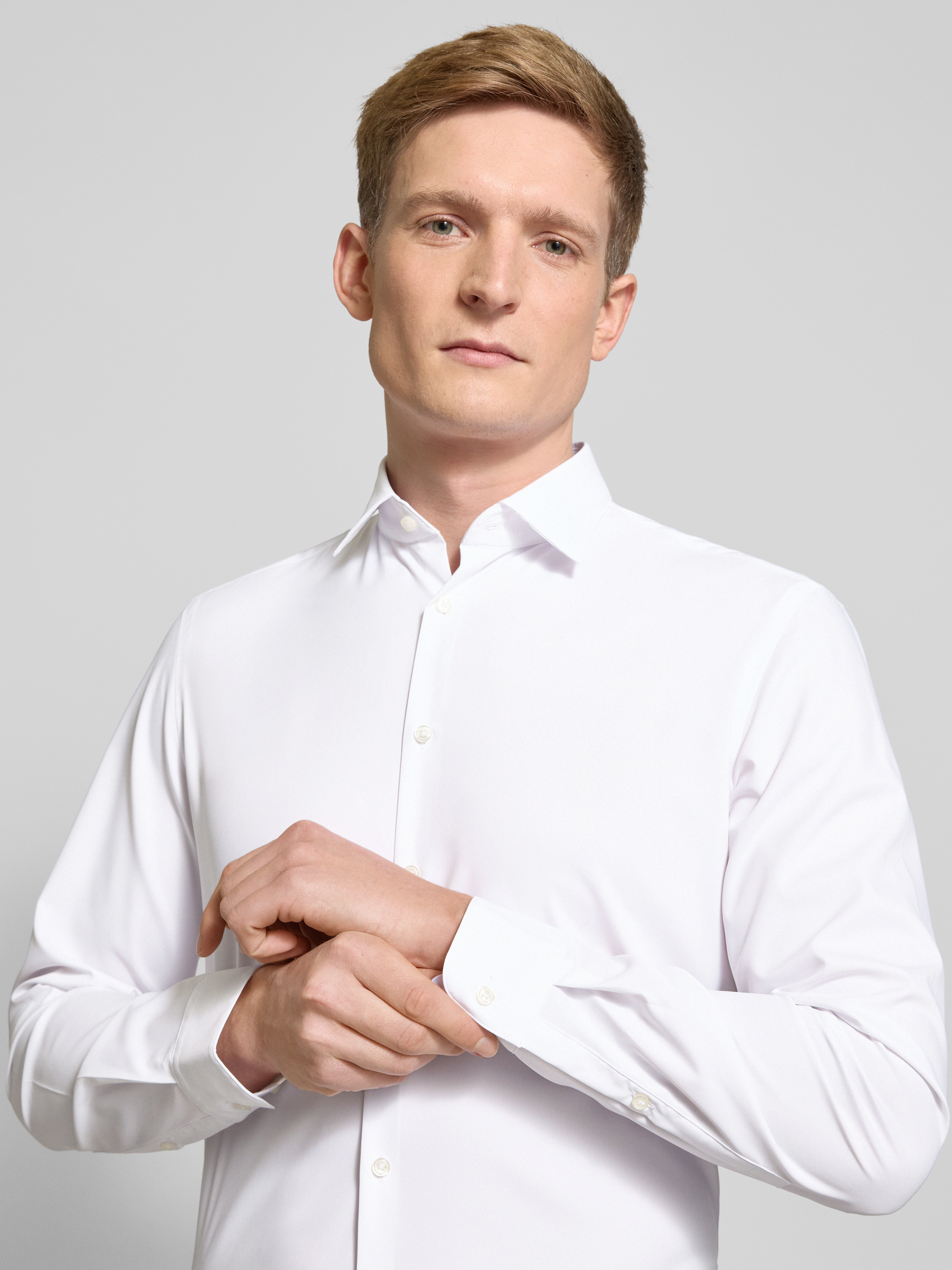 Das Slim Fit Business-Hemd von Jake*s kombiniert einen eleganten Kentkragen mit einem schmalen Schnitt, der für eine moderne Silhouette sorgt. Der Material-Mix mit Stretch-Anteil ermöglicht Bewegungsfreiheit und Komfort im Alltag. Langärmlig und stilvoll, eignet es sich ideal für formelle Anlässe.