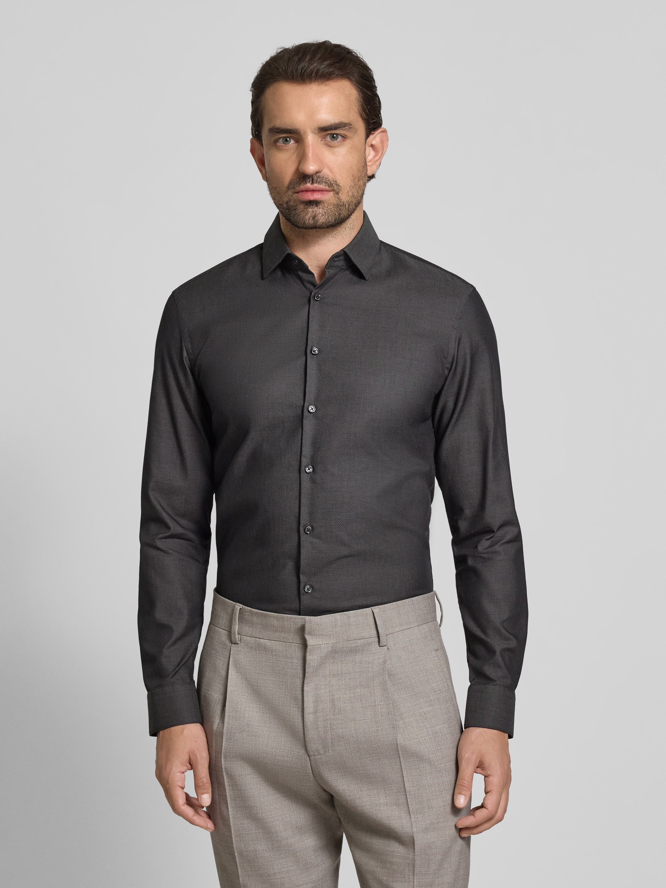 Jake*sSlim Fit Business-Hemd mit Knopfleiste in anthrazit
