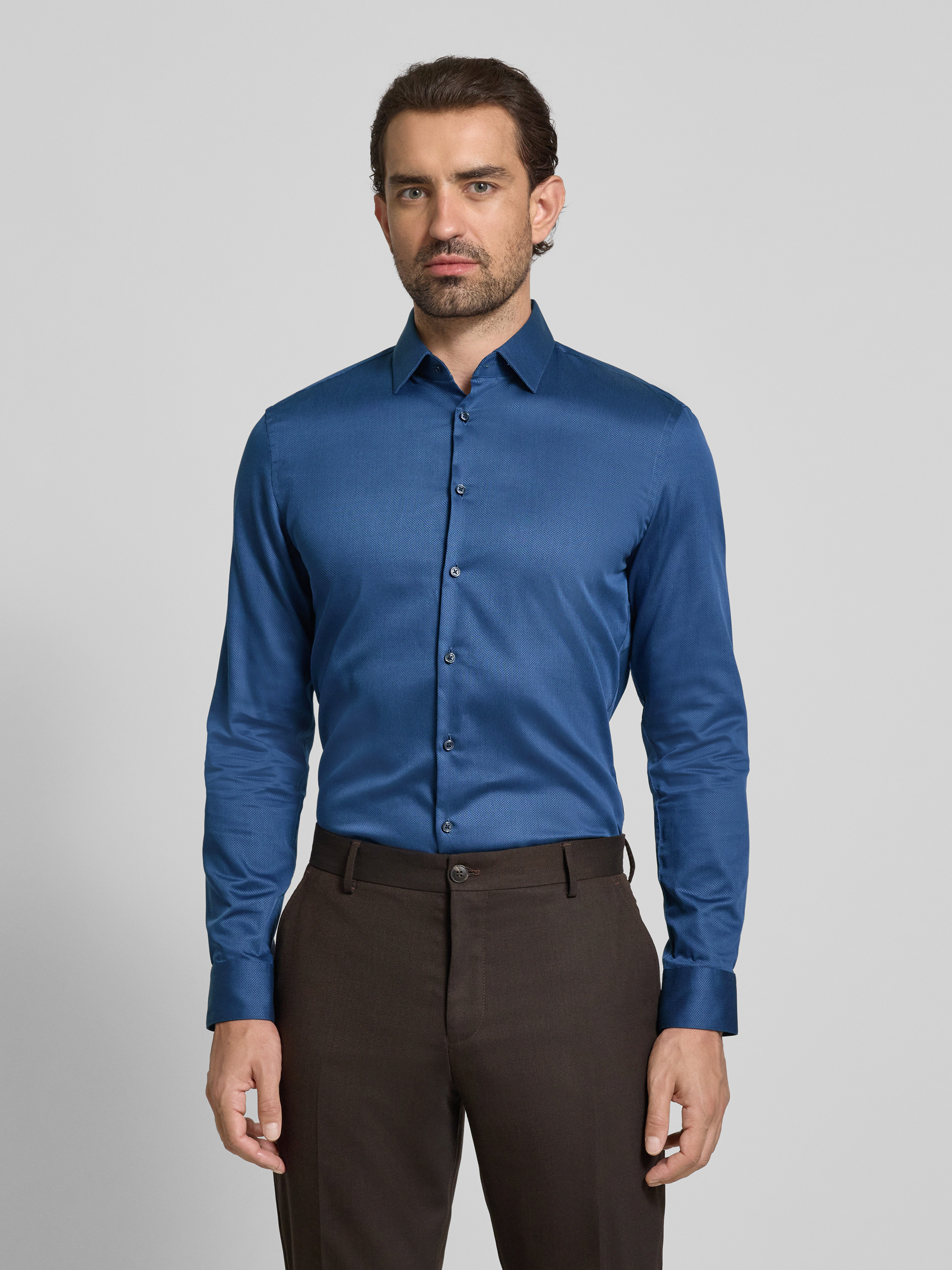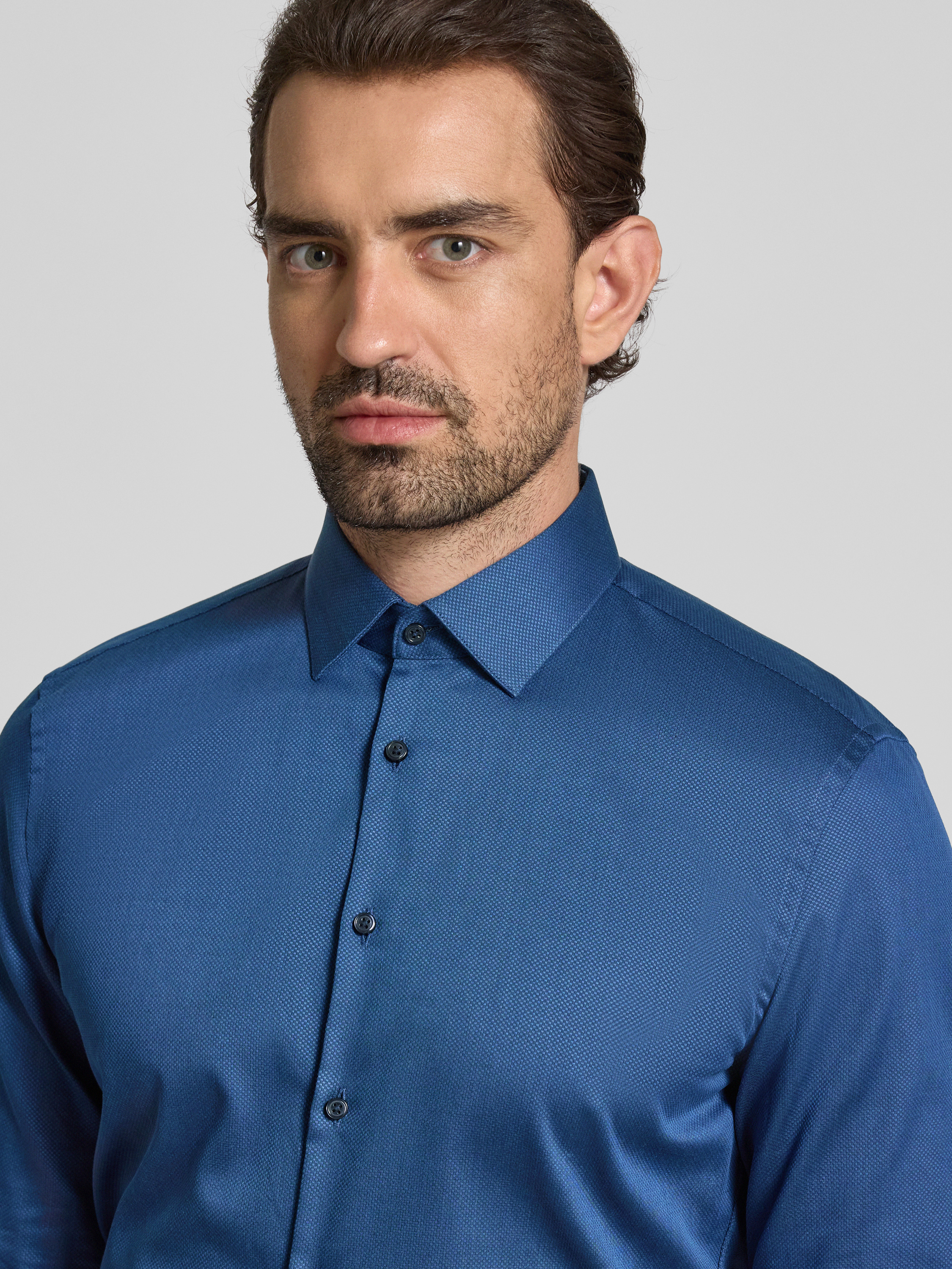 Jake*sSlim Fit Business-Hemd mit Knopfleiste in jeansblau