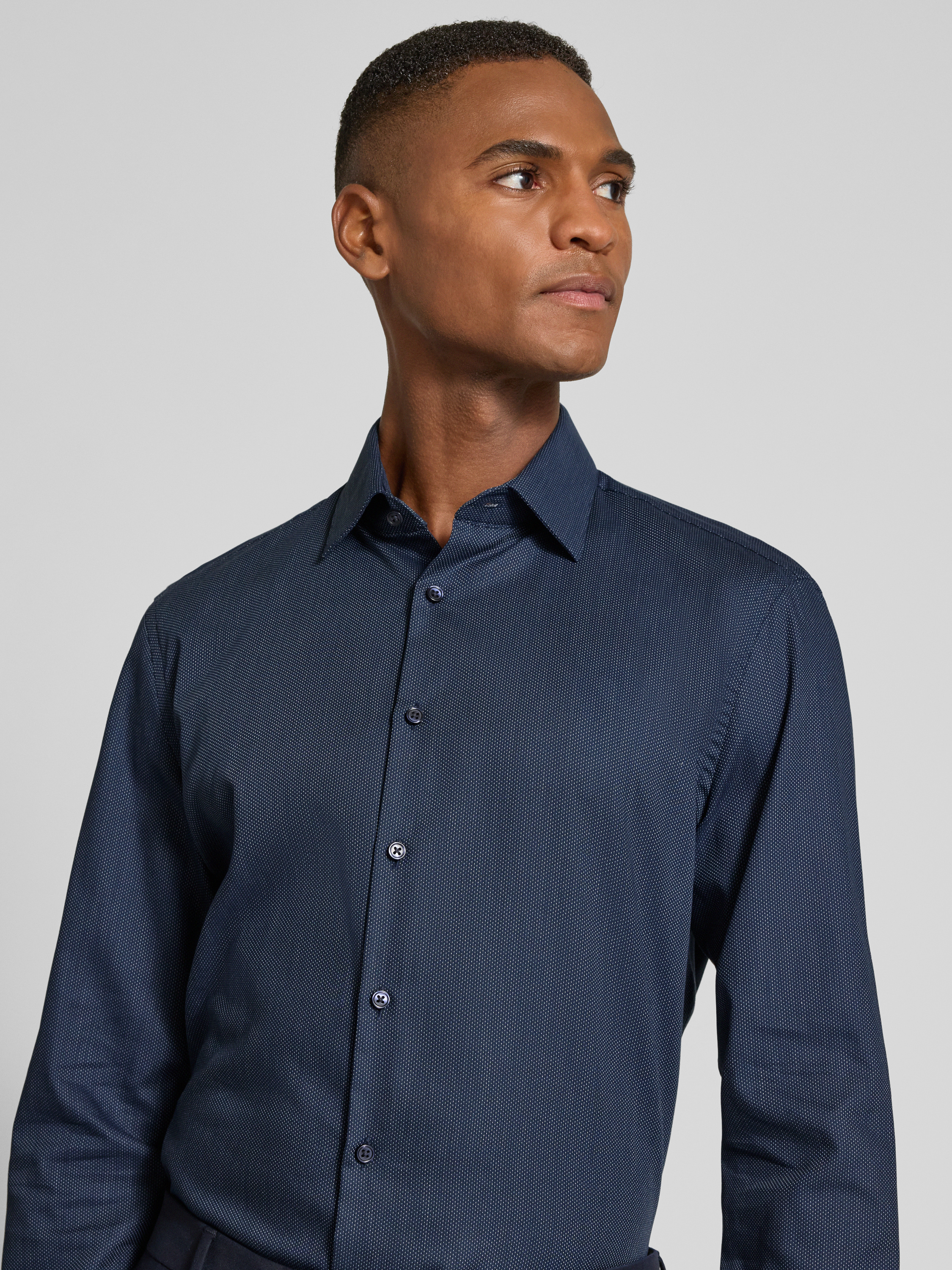 Das Herren Business-Hemd von Jake*s aus reiner Baumwolle liegt angenehm auf der Haut und sorgt durch seinen Slim Fit für eine moderne, körpernahe Silhouette. Mit Kentkragen und Knopfleiste passt das Slim Fit Business-Hemd sowohl zu formellen als auch legeren Outfits. Durch die durchdachte Passform eignet es sich für lange Tage im Büro ebenso wie für besondere Anlässe.