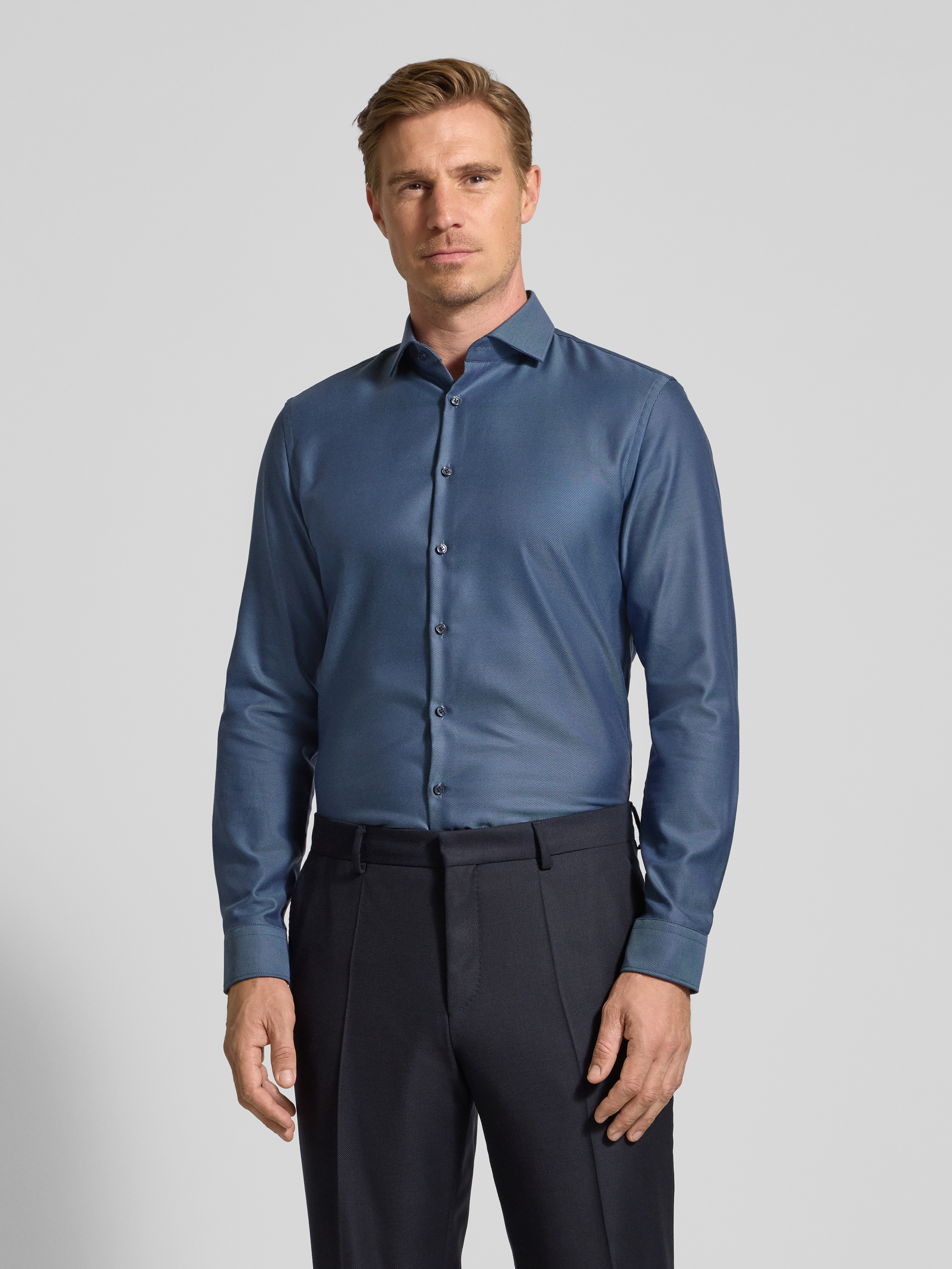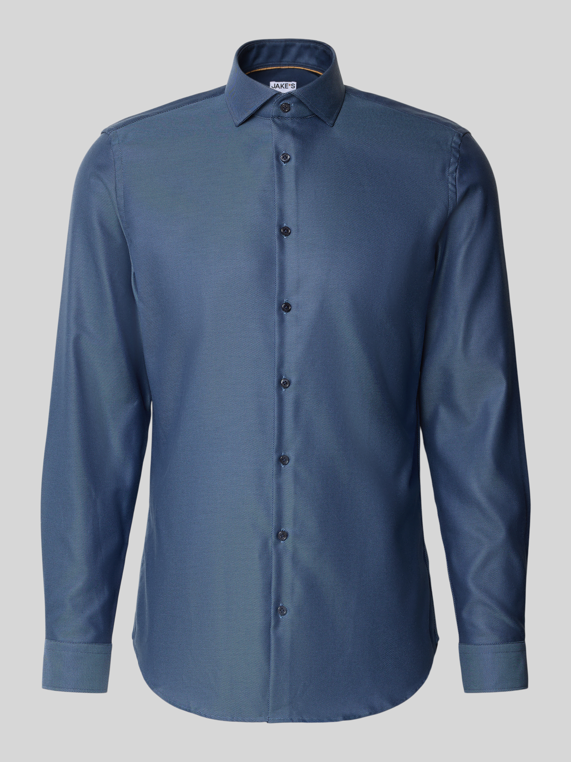 Das Slim Fit Businesshemd von Jake*s präsentiert sich in fein strukturierter Optik und besticht durch seine aufwendig veredelte Twill-Baumwolle. Mit Kentkragen und weitenverstellbaren Manschetten eignet es sich hervorragend für feierliche Anlässe und bietet einen eleganten, schlanken Sitz.