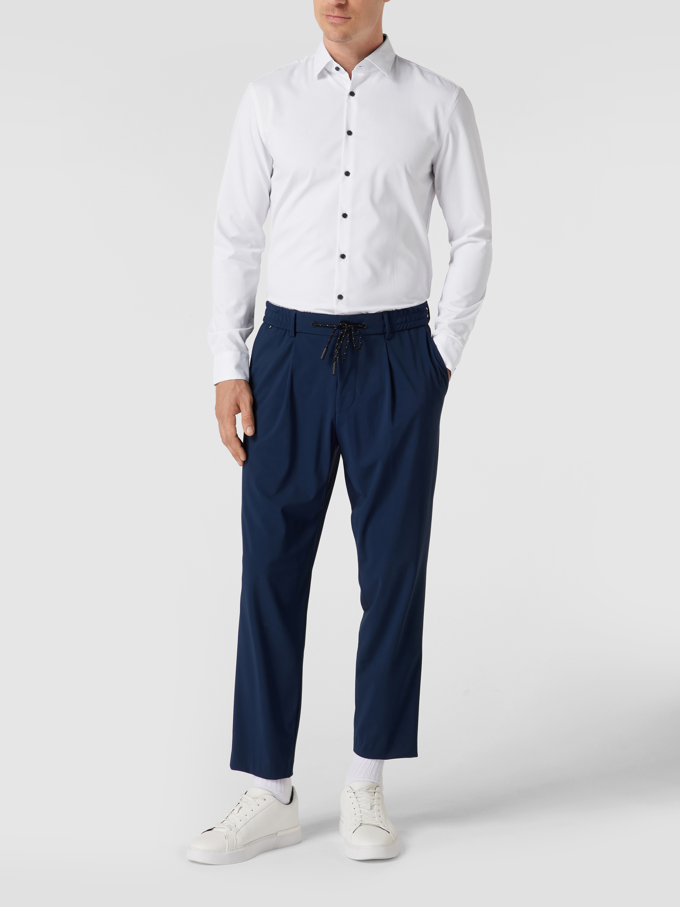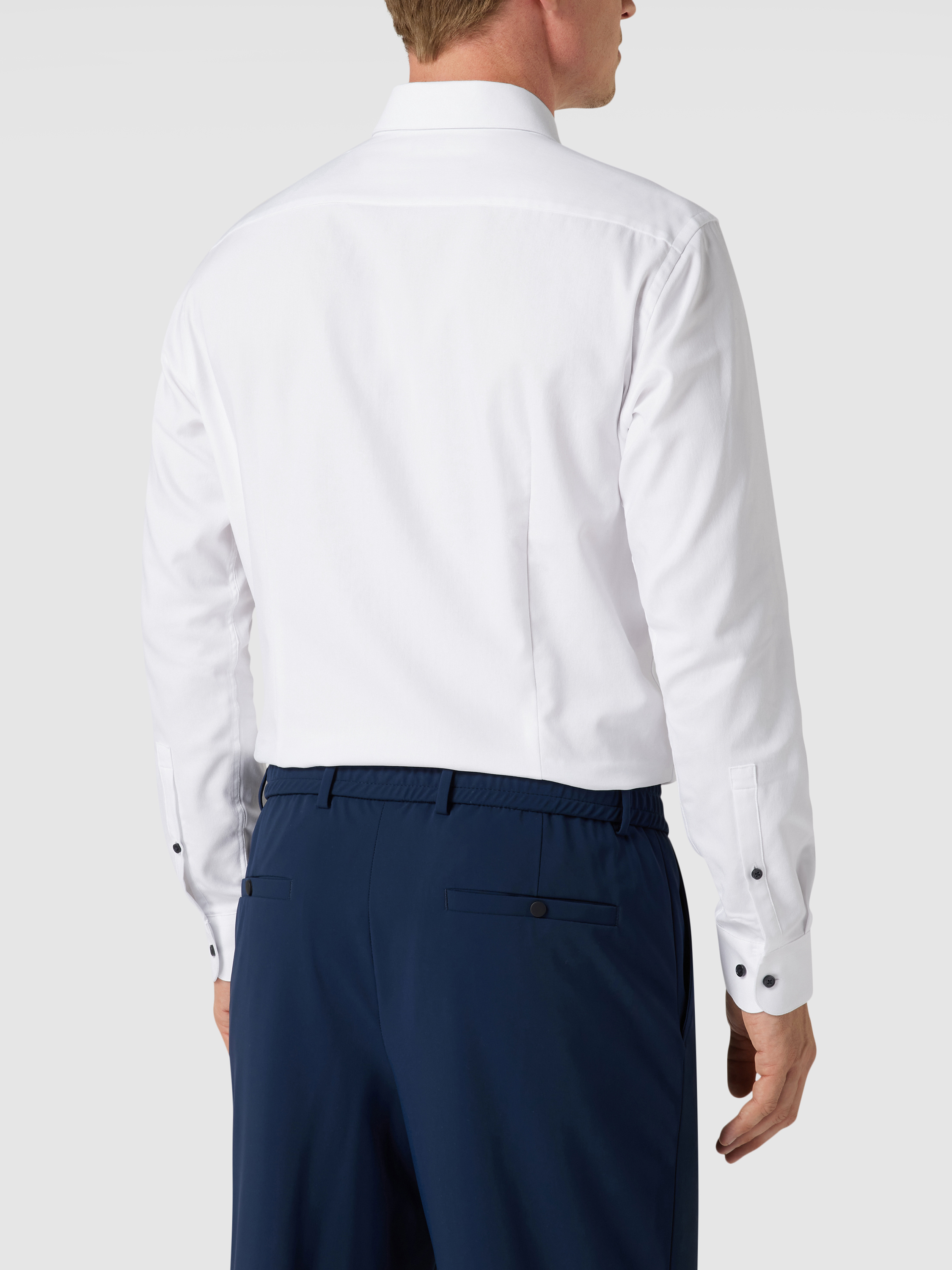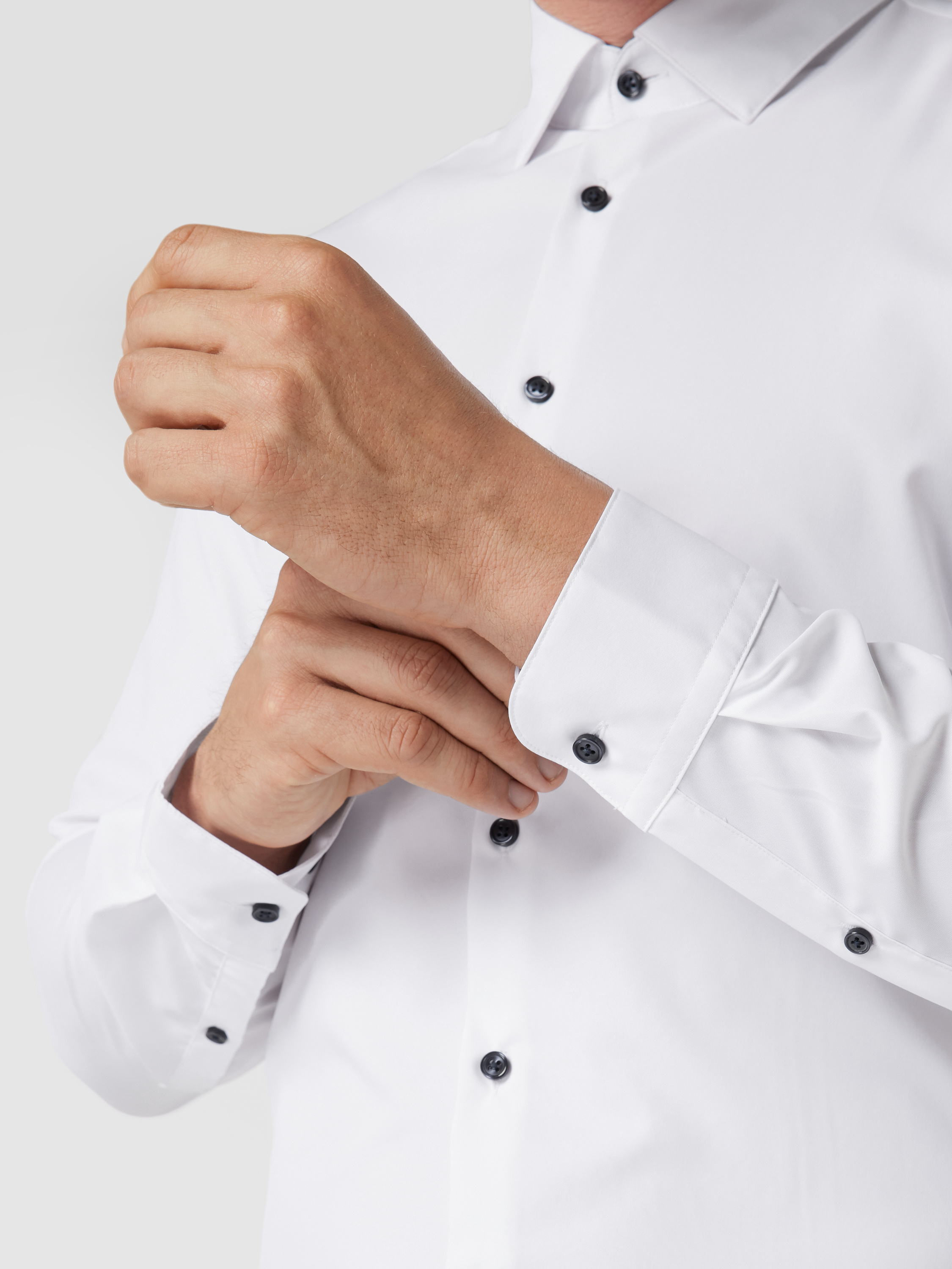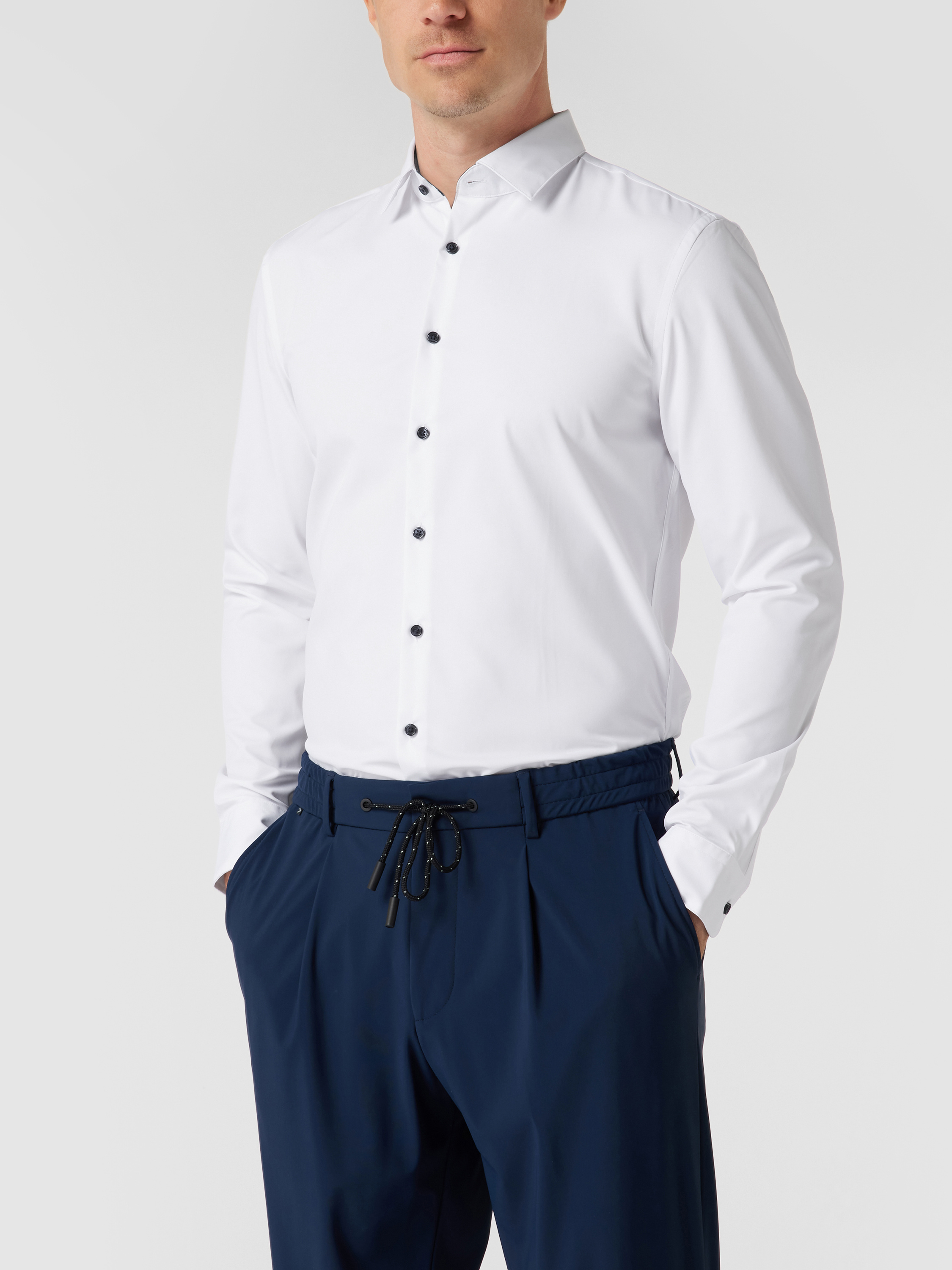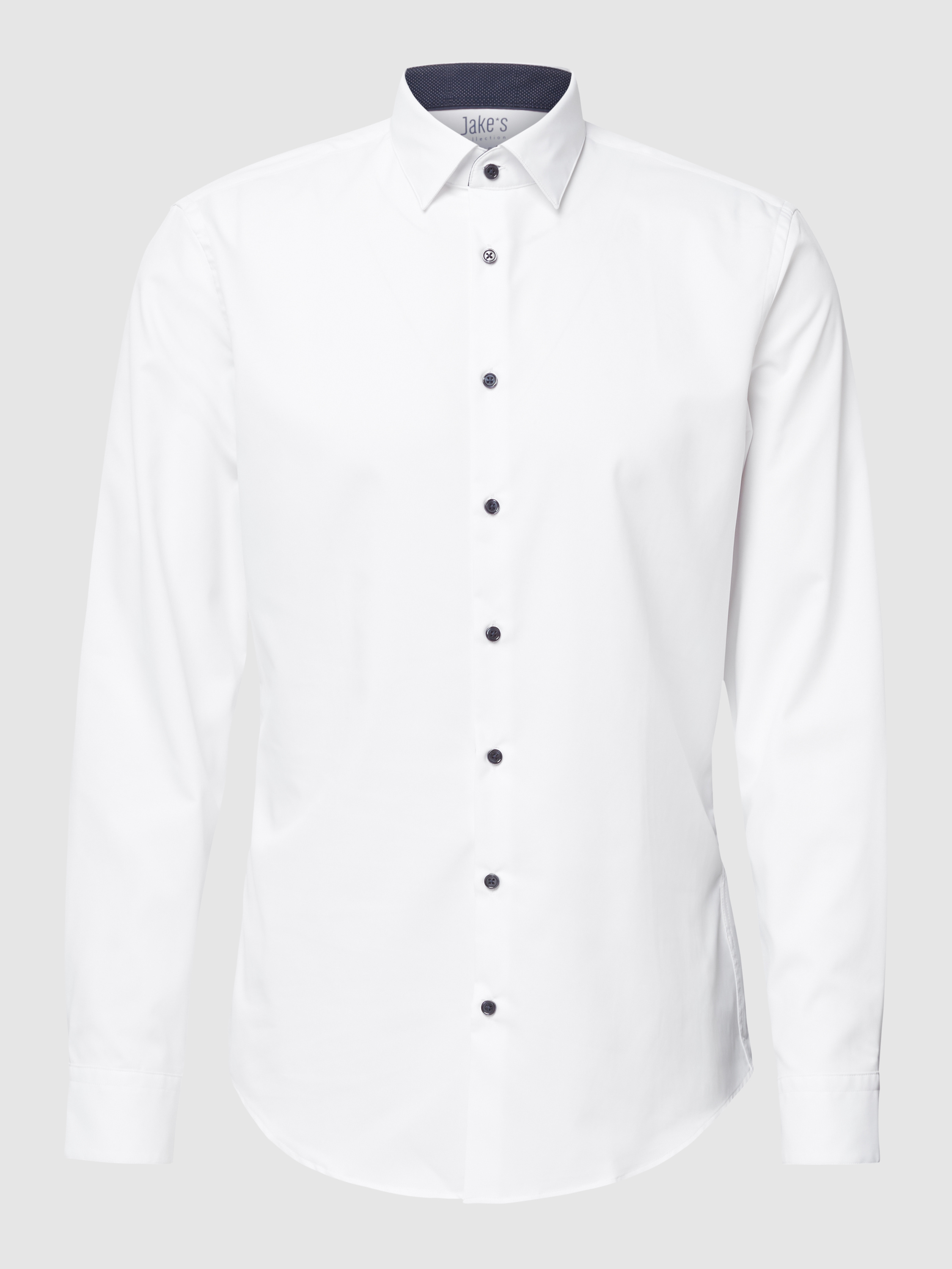 Das Slim Fit Businesshemd von Jake*s verbindet eine körpernahe Passform mit einem angenehmen Tragegefühl durch den dezenten Stretch-Anteil. Der klassische Kentkragen ergänzt den eleganten Look und macht es ideal für formelle Anlässe oder den Büroalltag. Der atmungsaktive Material-Mix sorgt für Komfort und Bewegungsfreiheit.